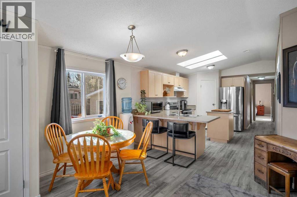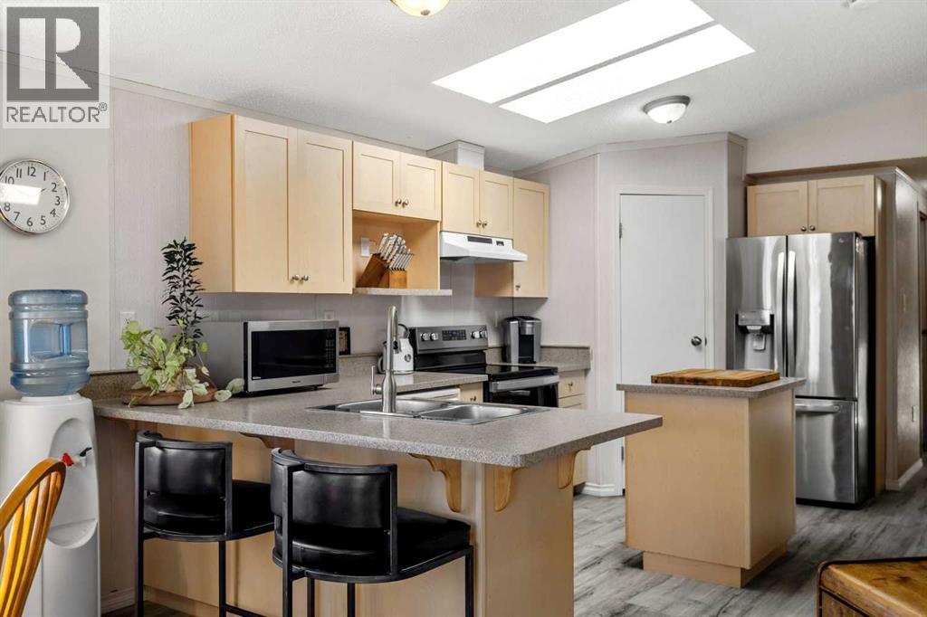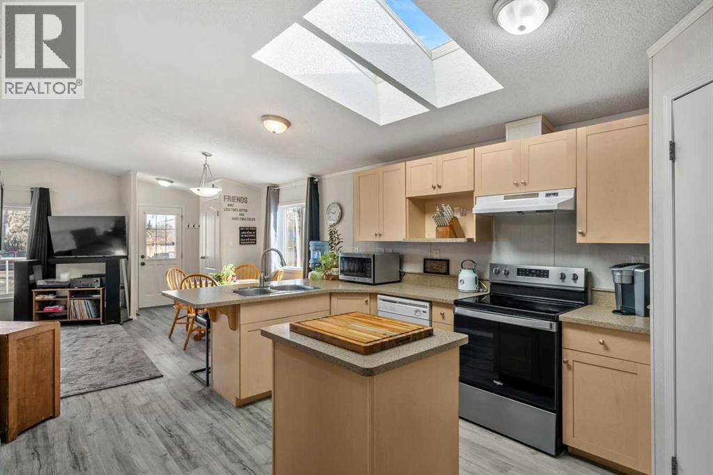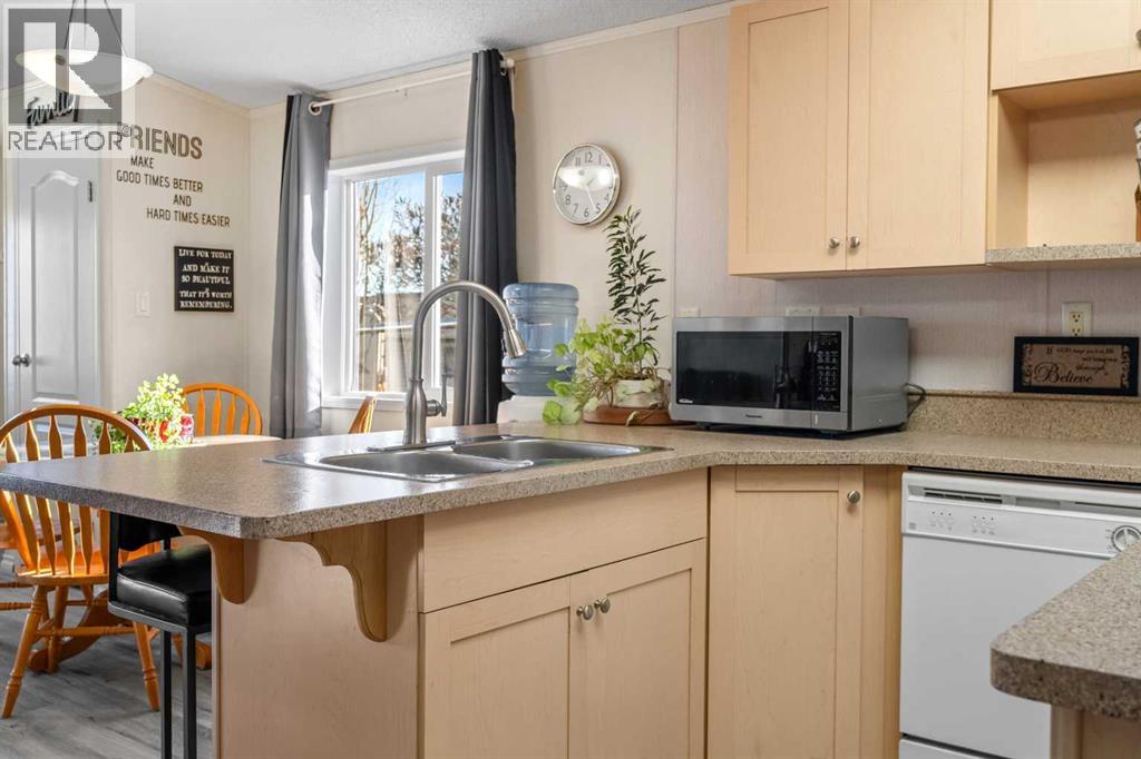 *** NEW PRICE *** Why purchase an apartment or a townhome when you can own a detached home for less without any condo fees and still own the land. This well-maintained 2005 manufactured home sits on a spacious pie-shaped lot and includes anchored tie-downs—ideal for mortgage approval and insurance requirements. The property features an oversize 22x20 double detached garage with a new heater (2022), 220V power, and a sub-panel. Including the extra long driveway, this property can accommodate a total parking of at least 7 vehicles. Enjoy a fully fenced, private backyard—perfect for pets—along with a sunny front porch and a relaxing back deck, all located on a quiet cul-de-sac. The best part? You own the land outright with no added fees. Inside, this bright, sun-filled home offers approximately 1,000 sq. ft. of comfortable living space, showcasing pride of ownership throughout. Major updates include a new house roof (2021), garage roof (2023), hot water tank (2014), high-efficiency furnace (2005), a Costco storage shed (2023), and new asphalt (2023). Flooring, carpet, and interior paint have also been refreshed. The thoughtfully designed layout features 3 bedrooms and 2 full 4-pc bathrooms. The primary suite includes a generous walk-in closet and a private ensuite. The open-concept kitchen and living area is enhanced by vaulted ceilings, two skylights, a large pantry, centre island, breakfast bar, --perfect for everyday living and entertaining. Located within walking distance of Superstore, Tim Hortons, parks, schools, Bert Church Theatre, Big Springs Athletic Club, Genesis Place, and close to the city’s pathway system. Quick access to major routes makes commuting easy. This bright, clean, move-in-ready, low-maintenance property offers exceptional value—whether you're a first-time buyer, downsizing, or seeking a smart investment opportunity. (31565413)