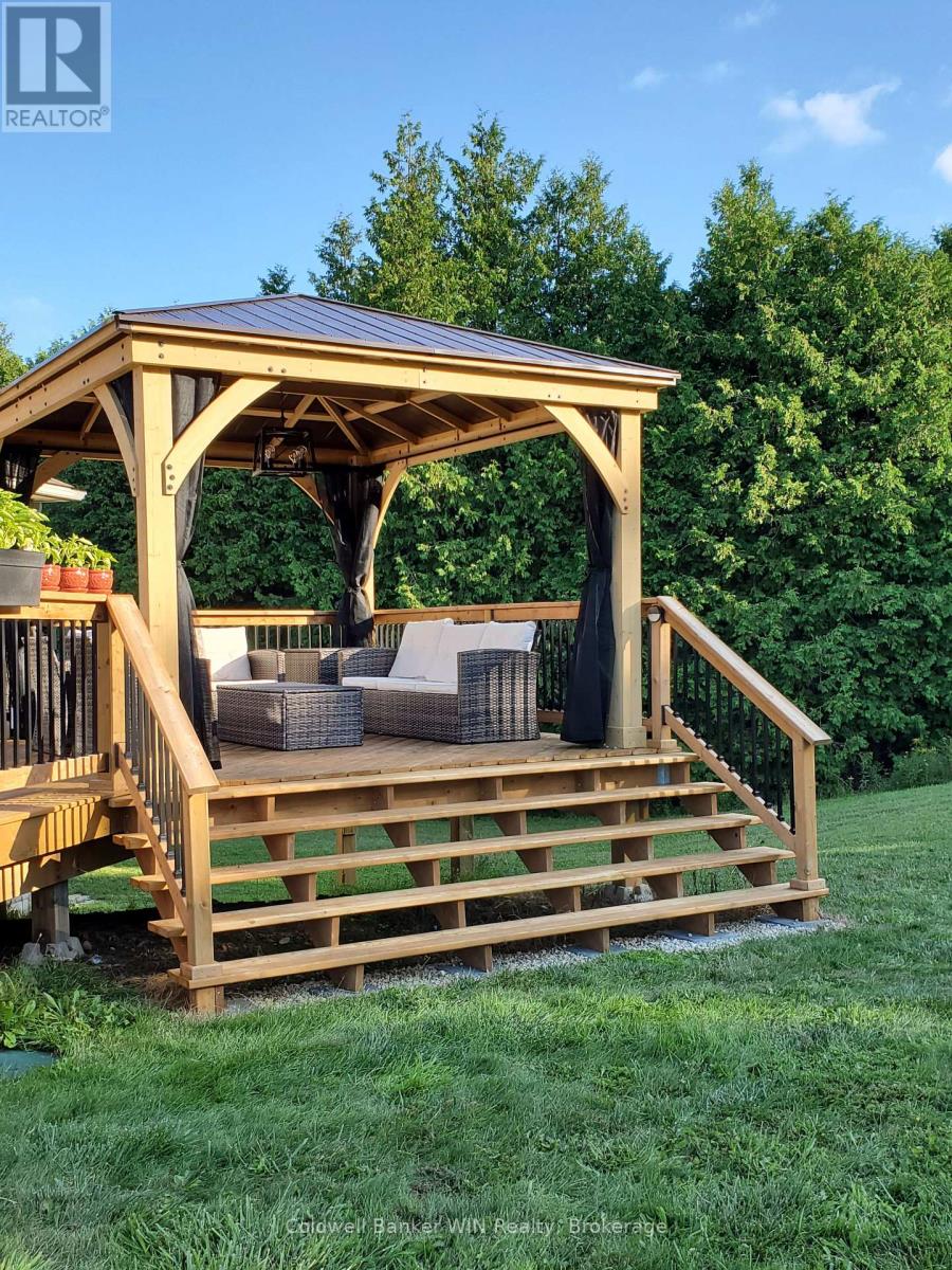 Enjoy space and privacy on this picturesque 1.5-acre lot, offering a versatile layout with two kitchens and two living areas-ideal for multigenerational living. Located in a quiet country subdivision in West Grey, this home is on a paved road in between Hanover and Durham. As you pull into the driveway, you'll immediately notice the landscaped exterior, stone accents, and welcoming walkway leading to the front entrance. The bright and inviting foyer with a tiled floor sets the tone for the home. The main living room and kitchen feature engineered hardwood flooring and an open-concept layout, ideal for everyday living and entertaining. The kitchen offers an abundance of cabinetry, a large island, ceramic tile backsplash, and sliding doors that lead to a spacious wooden deck-perfect for enjoying the peaceful country setting.The main floor continues to impress with a spacious primary bedroom complete with a walk-in closet and a 3-piece ensuite featuring a tiled shower. Two additional bedrooms provide ample space for family or guests, complemented by a 4-piece bathroom and a convenient main-floor laundry room.The fully finished walk-out lower level expands the living space and is ideally suited for an in-law suite or extended family living. This level features a second, oversized kitchen with built-in appliances, a massive family room warmed by a natural gas fireplace, and sliding doors to the stamped concrete patio and salt water hot tub. Two additional bedrooms and a 3-piece bathroom complete this level. Additional features include an attached two-car garage that is insulated and heated, complete with an additional 60-amp electrical panel. The home is heated with natural gas, adding efficiency and year-round comfort. This property blends peaceful country living with easy access to nearby amenities-a rare opportunity to own a spacious, well-appointed home designed for today's multigenerational lifestyle. (42009670)