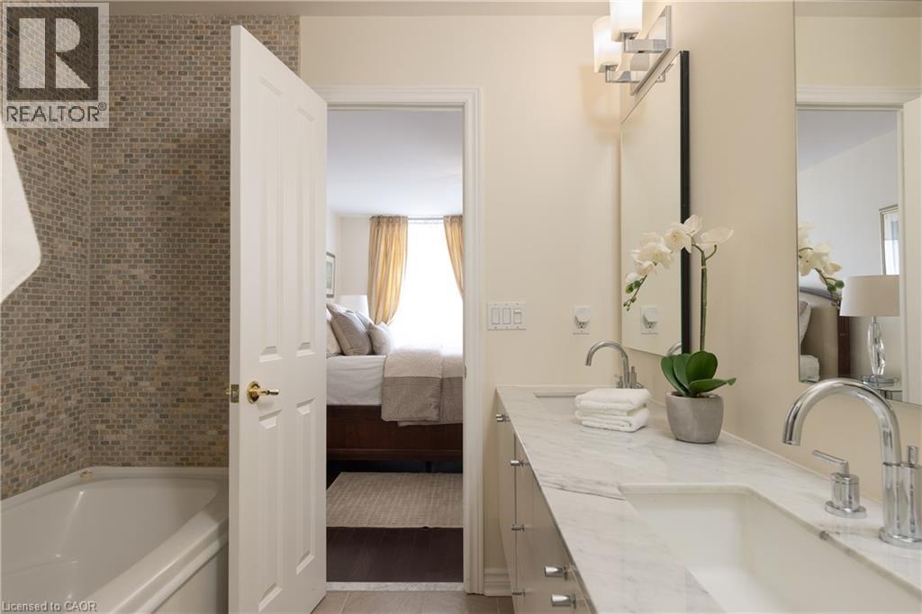 Wake up to tranquil water views in this refined penthouse,where comfort, craftsmanship, and location come together seamlessly.Overlooking the serene waters of Sixteen Mile Creek and views of Lake Ontario,this renovated residence has been thoughtfully redesigned to create a warm and inviting home with timeless finishes and a smooth flow. Inside,elegant engineered hardwood flooring runs throughout the space along with travertine marble in the foyer and kitchen.The updated kitchen is both beautiful and functional,featuring custom cabinetry with under-cabinet lighting,a new updated backsplash,and high end SS appliances.The Great Room and Dining Area boast soaring 9-ft ceilings and a cozy gas fireplace,creating an atmosphere that truly feels like home.With access to two balconies, you can step outside to enjoy uninterrupted views of Sixteen Mile Creek,an ideal setting for morning coffee or quiet evenings.Just off the living area, a versatile den offers flexibility for a home office, gym,or playroom w/ doors for privacy.This thoughtfully designed unit includes a two bedroom split floor plan.The spacious primary suite features a generous walk-in closet and a five-piece ensuite bathroom.The second bedroom also offers a walk-in closet, 4 pc ensuite bathroom, and a walkout to the balcony—perfect for unwinding before bed while enjoying peaceful views. A 2 pc powder room, laundry closet with stackable Bosch W/D & plenty of storage complete the Suite. Offering over 1,400 sq ft of living space,this penthouse includes two premium parking spaces, a locker, and access to outstanding building amenities,incl. an indoor pool, gym, hobby room, & party space—completing this exceptional lifestyle. Ideally positioned in Old Oakville, it's just steps from the Go Train and a 30-minute commute to downtown Toronto and easy access to the highway. Plus, you're just a short stroll away from Whole Foods and downtown Oakville's shops and restaurants. Move in and enjoy! (70085341)