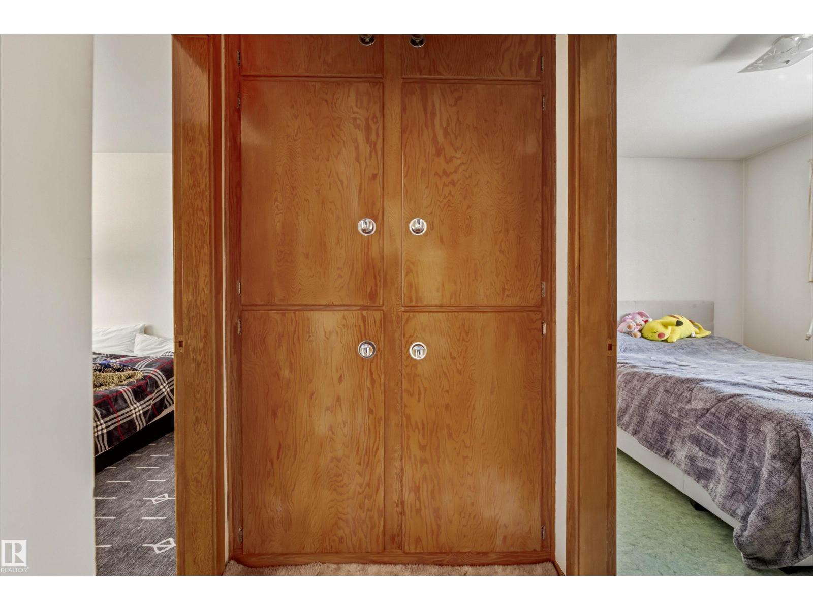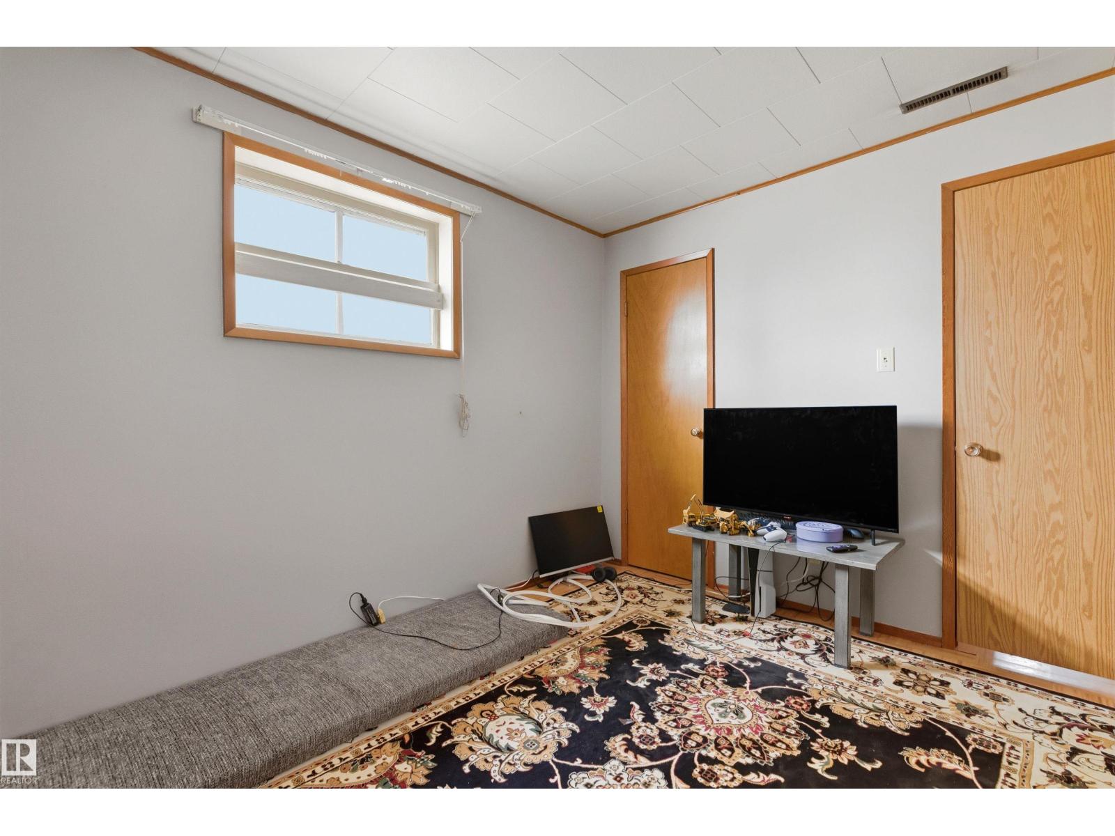 Welcome to this timeless 5 bedroom bungalow! Tucked away on a quiet street, this gem features hardwood floors hidden beneath the shag carpet. Bright and spacious eat in kitchen overlooking the large, fenced yard with mature apple trees. This home radiates good energy and solid bones, the perfect opportunity to create your family dream home or a great investment for flippers or landlords. The high ceiling basement offers excellent potential for a secondary suite with a separate entrance. Outside, enjoy the oversized double heated garage. Extra parking for 2 vehicles and and a cement pad ready for a boat or RV. Unbeatable location across from park with off leash dog area, near grand trunk arena, pool and leisure center. Minutes from shops on 97st, schools, transit and restaurants. 15 min drive to downtown. Dont miss out on this charming gem!! (33756070)