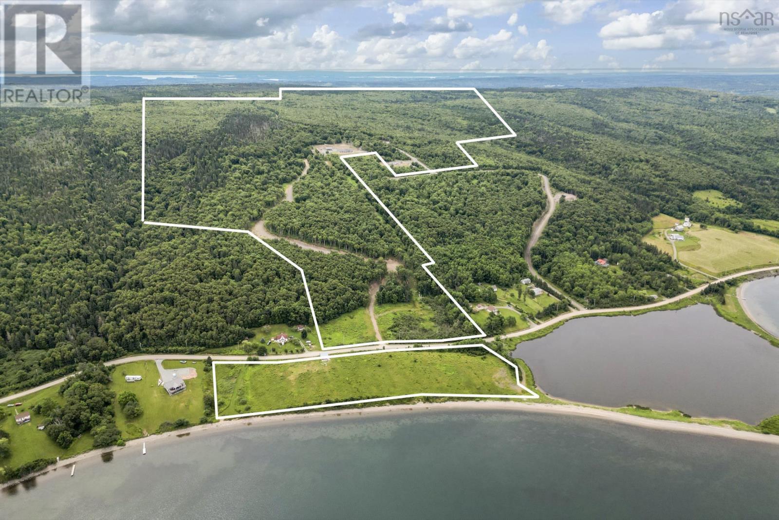 Welcome to Golden View Dr. in Cape Breton, where you will find a large, secluded family estate spanning over 337 acres or 137 hectares. This property offers endless opportunities for development or simply enjoying your own privacy. Unique property with breathtaking views of the UNESCO-designated Bras dOr Lake. The main attraction is a newly constructed, high quality, single story modern home with a fully self sufficient guest wing. Entering the main house, you are greeted with unobstructed lake views through floor to ceiling windows in the living room with an open cathedral ceiling, which has the dining room and kitchen attached to one side. Huge sunroom. The main section of the house comprises a master bedroom with a luxurious spa like bathroom, two additional large rooms, a guest bathroom, a spacious pantry, and a laundry room. The guest wing offers an open concept kitchen living area, two bedrooms, and a full bathroom. Next to the main house is an oversized, insulated five car garage with a toilet and workspace designed to complement the aesthetics of the property. The guest house 1152 sq.feet just a two minute walk away. Outdoor amenities include a barbecue gazebo with stunning views, animal dog houses with fenced areas, a wooden chicken coop, a cleared plateau, and numerous hiking trails. Additional to the main 337 acres (three parcels), a 6-acre waterfront with one of the best Bras dOr Lake beachlines is available for purchase. This property is a blank canvas, offering limitless possibilities limited only by your imagination and creativity. Such unique properties are rarely found! Do not just dream, live your dream! (231887140)