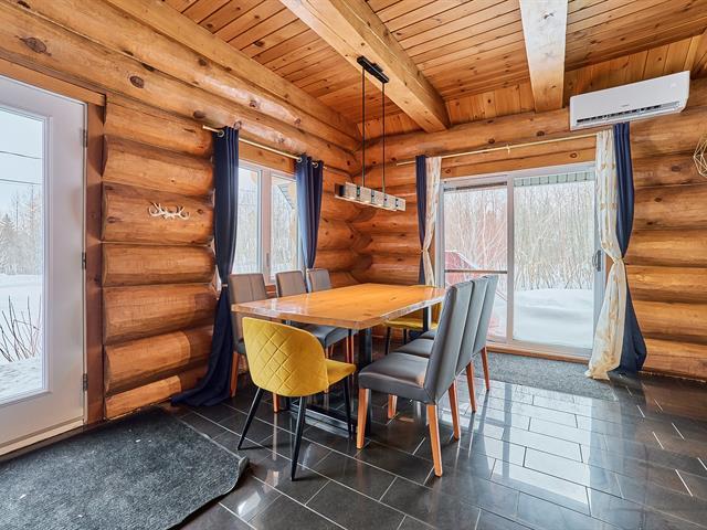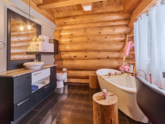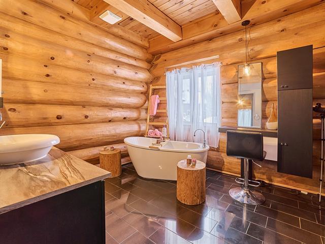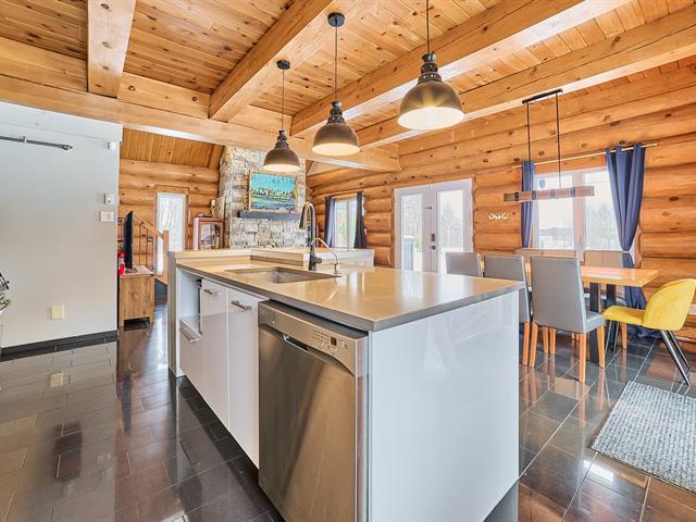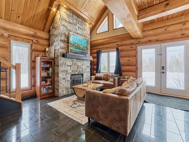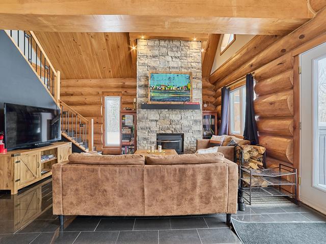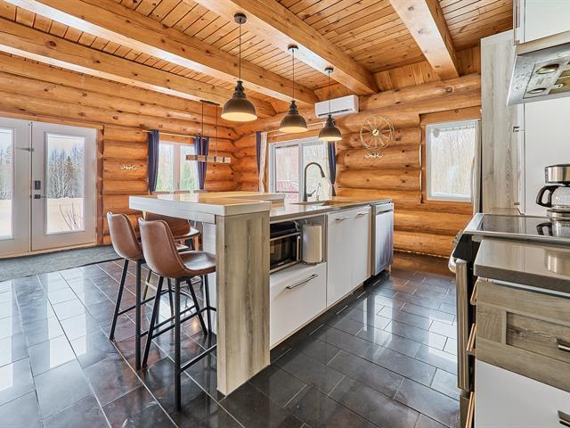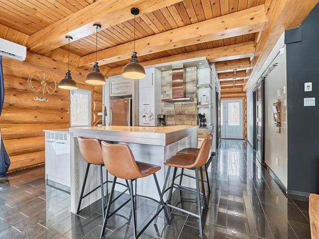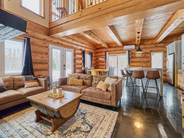 Magnificent log home offering a water view and a truly unique character. Meticulously maintained over the years, with invoices available to support the care given. Its authentic rustic style, enhanced by a well-balanced touch of modernity, creates a warm and distinctive atmosphere. The kitchen features a central island, the bathroom showcases quality materials, and the stunning mezzanine is sure to impress. Short-term rental opportunities such as Airbnb are permitted. A rare property, impeccably maintained and one of a kind. GST/QST must be added to the asking price (56290063)