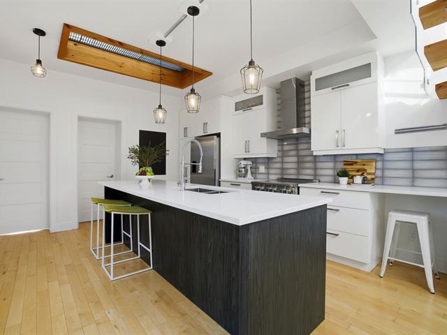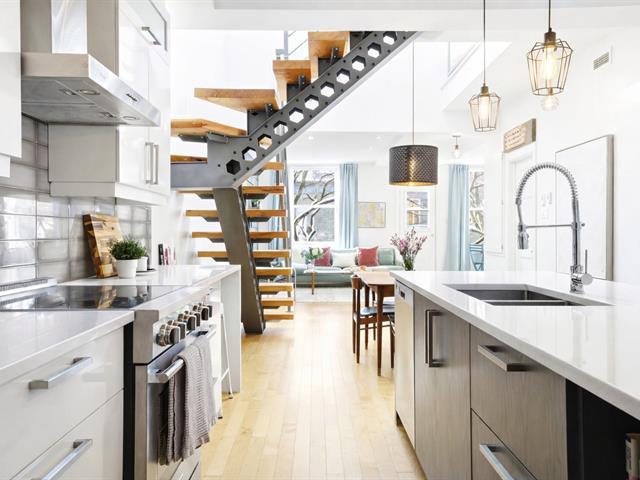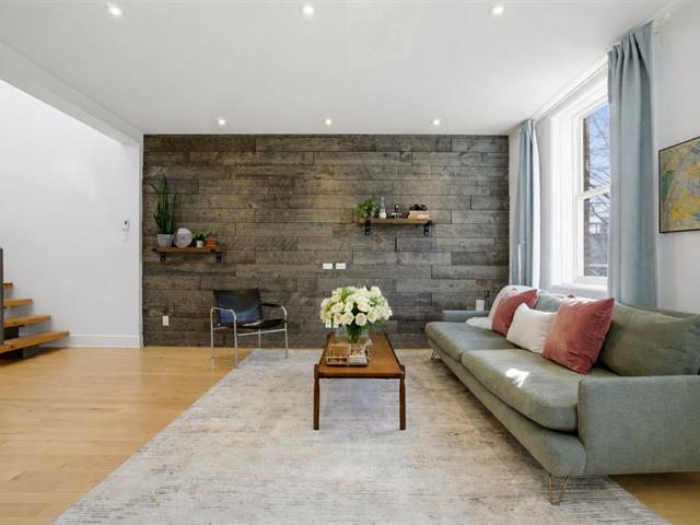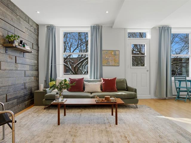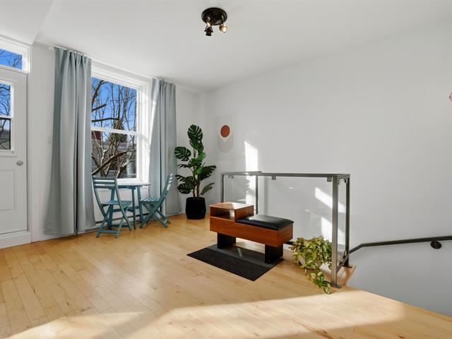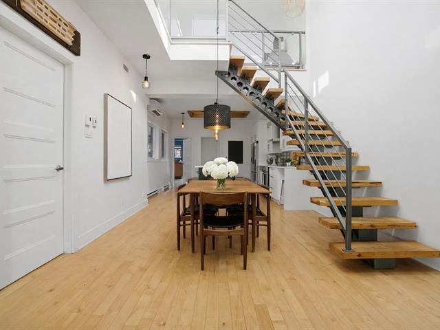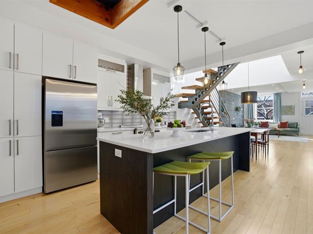 Bright, 1463 sq ft condo on two levels in Plateau Mont-Royal, fully renovated in 2016. Offers 2 bedrooms plus optional mezzanine bedroom, 1 full bath + powder room, soaring ceilings, and abundant windows. Spacious open-concept living area, generous kitchen, superior soundproofing/insulation, two rooftop terraces, and private parking. The location is paradise for both walkers and bikers. (40174749)