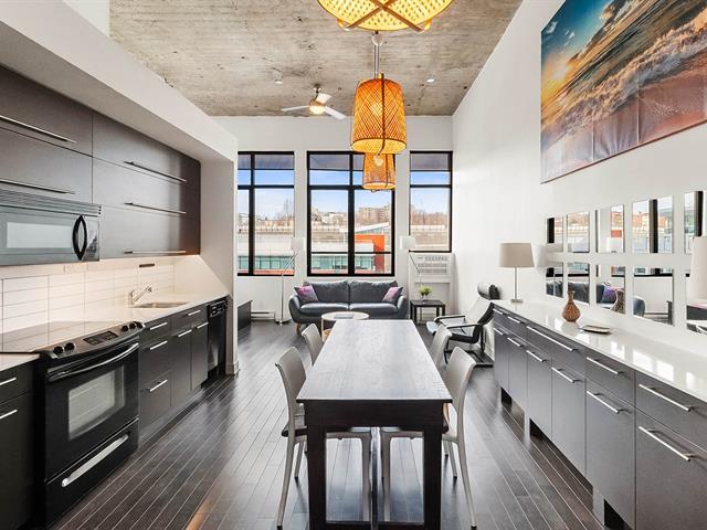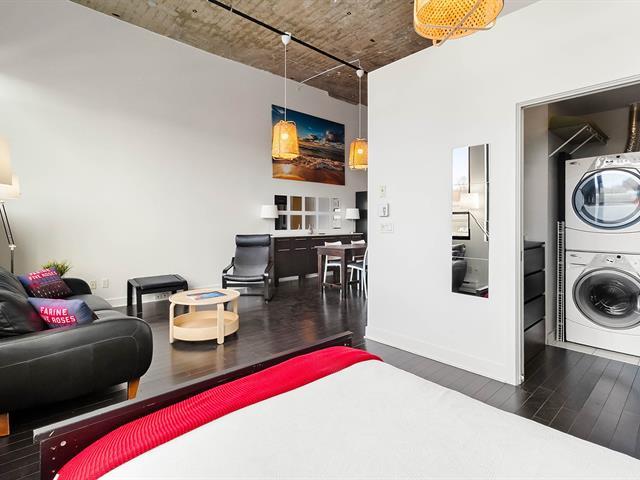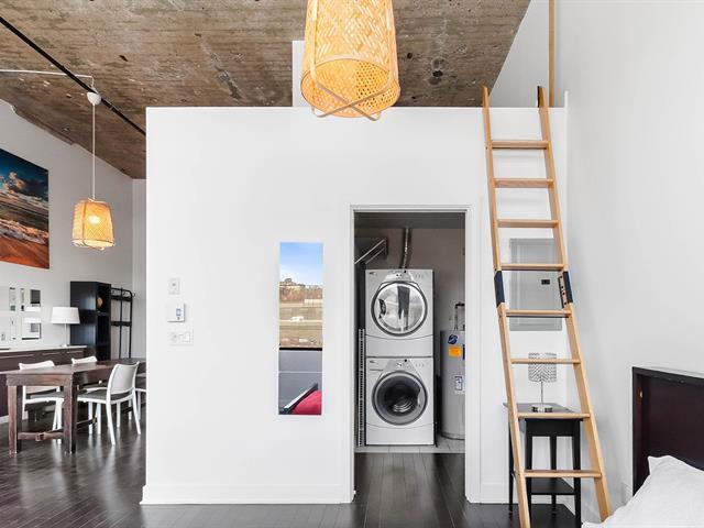 Bright and spacious apartment located in the heart of the Saint-Henri neighborhood. This beautiful property offers one bedroom, a functional bathroom, a kitchen with ample storage, and a sun-filled living room highlighted by ceilings over 13 feet high. The unit also features a versatile mezzanine of approximately 130 square feet, ideal for additional living space or storage. You will also enjoy an indoor parking space, a storage locker, as well as access to amenities such as a swimming pool, fitness room, and more. Ideally located close to schools, shops, markets, and public transportation. Immediate occupancy available! (57450290)