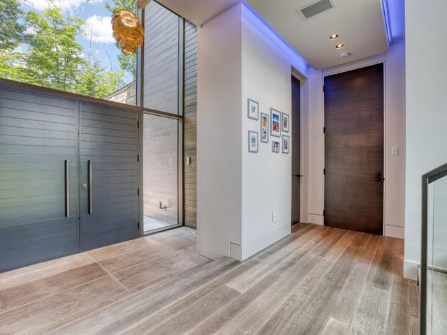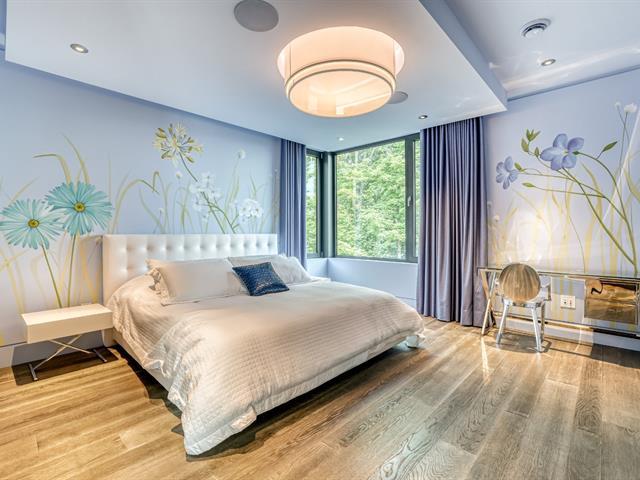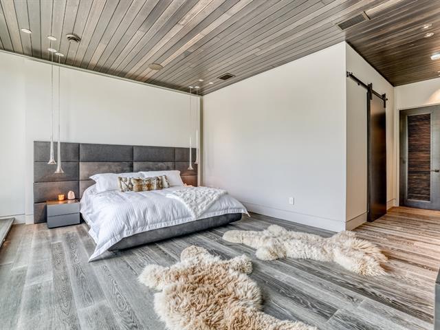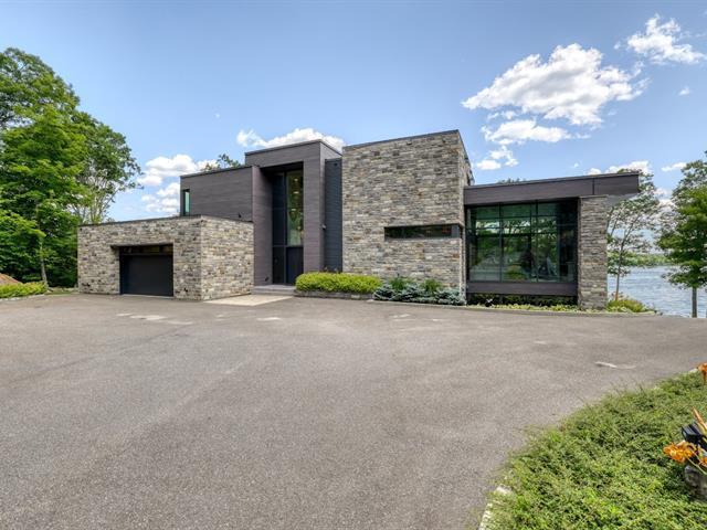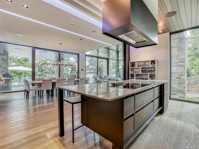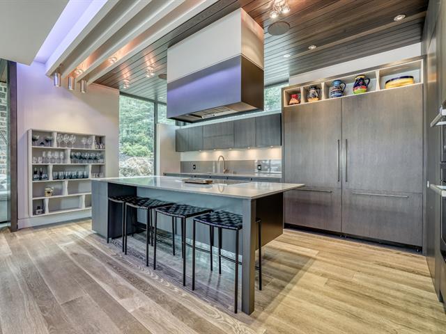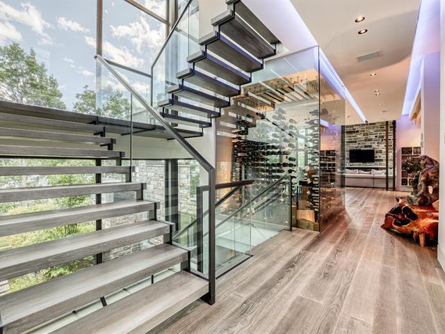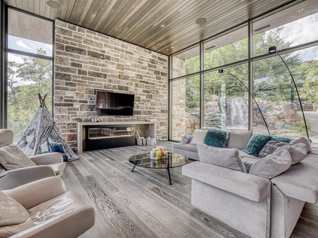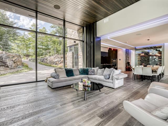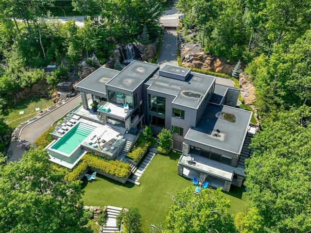 PRESTIGE LAKE SIMON HOME WITH PARENTAL SUITE! Situated on a superbly landscaped wooded lot of over an acre, with no rear neighbors, this property offers you an enchanting living environment, guaranteed privacy and undeniable quality of life. In summer, you'll be enveloped in lush greenery overlooking the lake, and in winter, you'll enjoy panoramic mountain views. Intelligent home, fully equipped for your comfort and safety! Heated floors (geothermal), 20' ceilings, wood cabinets, quartz countertops, 400-amp electric entry, in-ground heated pool, resort-style waterfall. (47938279)