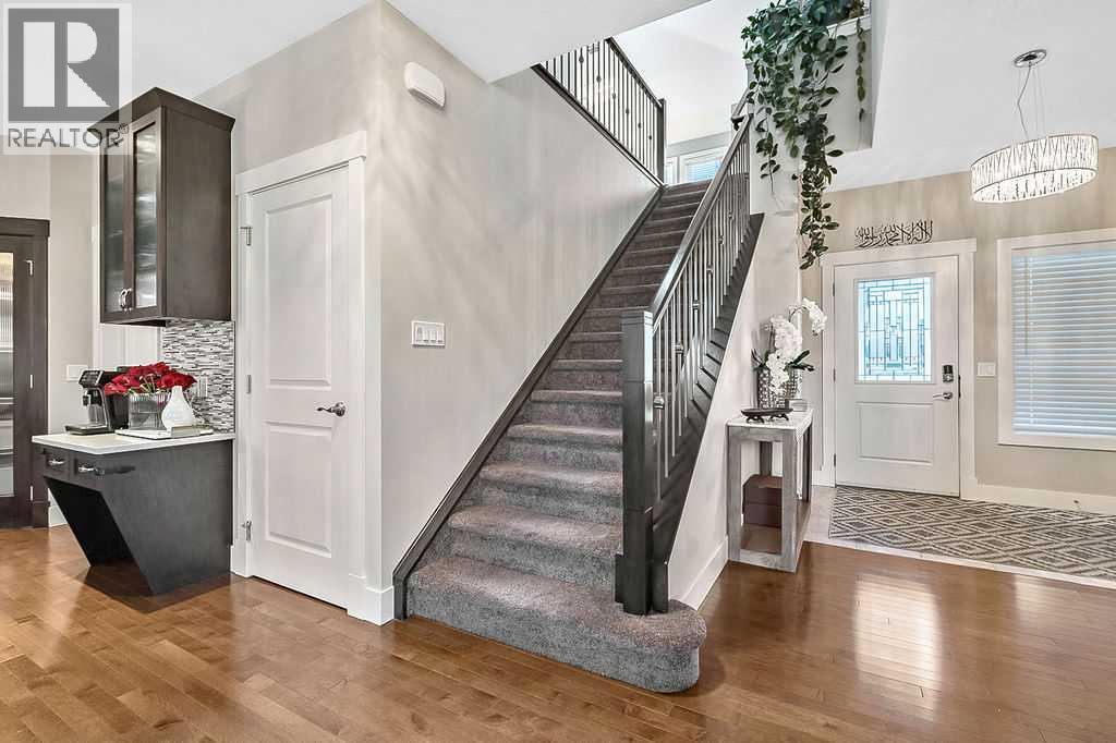 Beautiful family home on a QUIET CHILD FRIENDLY STREET. This four bedroom, two storey home offers over 3,100 sq. ft. of developed living space on a large pie shaped lot. The open concept main floor features a spacious kitchen with upgraded appliances, abundant cabinetry, pantry and hardwood flooring throughout. The living room includes a gas fireplace and large windows overlooking the expansive backyard. A functional mudroom with built-in bench adds everyday convenience. Upstairs, enjoy a vaulted ceiling bonus room, a king sized primary bedroom with ensuite, generously sized secondary bedrooms and second floor laundry with built-in cabinetry. The FULLY FINISHED BASEMENT includes a bedroom, full bathroom, and kitchenette (no stove/oven), ideal for guests or extended family. The extra large backyard offers a pergola covered deck perfect for outdoor living and entertaining. Additional features include central air conditioning, outdoor storage shed and a programmable hot water recirculation system. WALKING DISTANCE TO EAST LAKE SCHOOL (K-9). An exceptional home for growing families. (31567933)