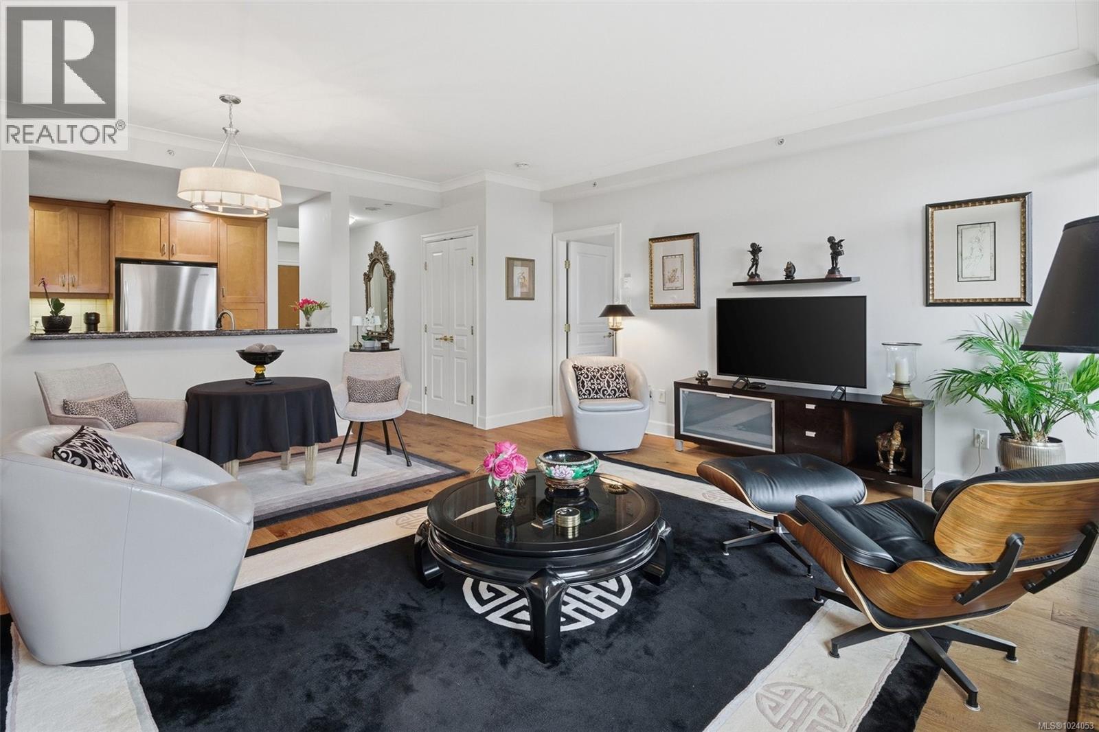 Live the lifestyle you deserve at prestigious Shoal Point! Enjoy the morning sun and the greenery of Fishermans Whaf Park and views of the Inner Harbour from thealcony. This immaculately kept, 1 bed + DEN, 2 bath home features wood flooring through the main living areas. The kitchen, with granite countertops and gas cooktop, is open to the spacious living/dining room with gas fireplace, and balcony access. The bedroom features double closets and a 5 piece ensuite, with heated floors. A two piece powder room and den/storage room complete this lovely home. Amenities include: 25m lap pool, gym, steam, sauna, whirlpool, concierge, Bocci ball green, bike & kayak storage, workshop, library & 2 guest suites. The common lounge has a full kitchen for your use and a large deck with inner harbour views. Get to know your neighbours with Friday night happy hours. Located near Dallas Road ocean walk, restaurants, shopping, library & downtown all within walking distance. Watch the video! (30310533)