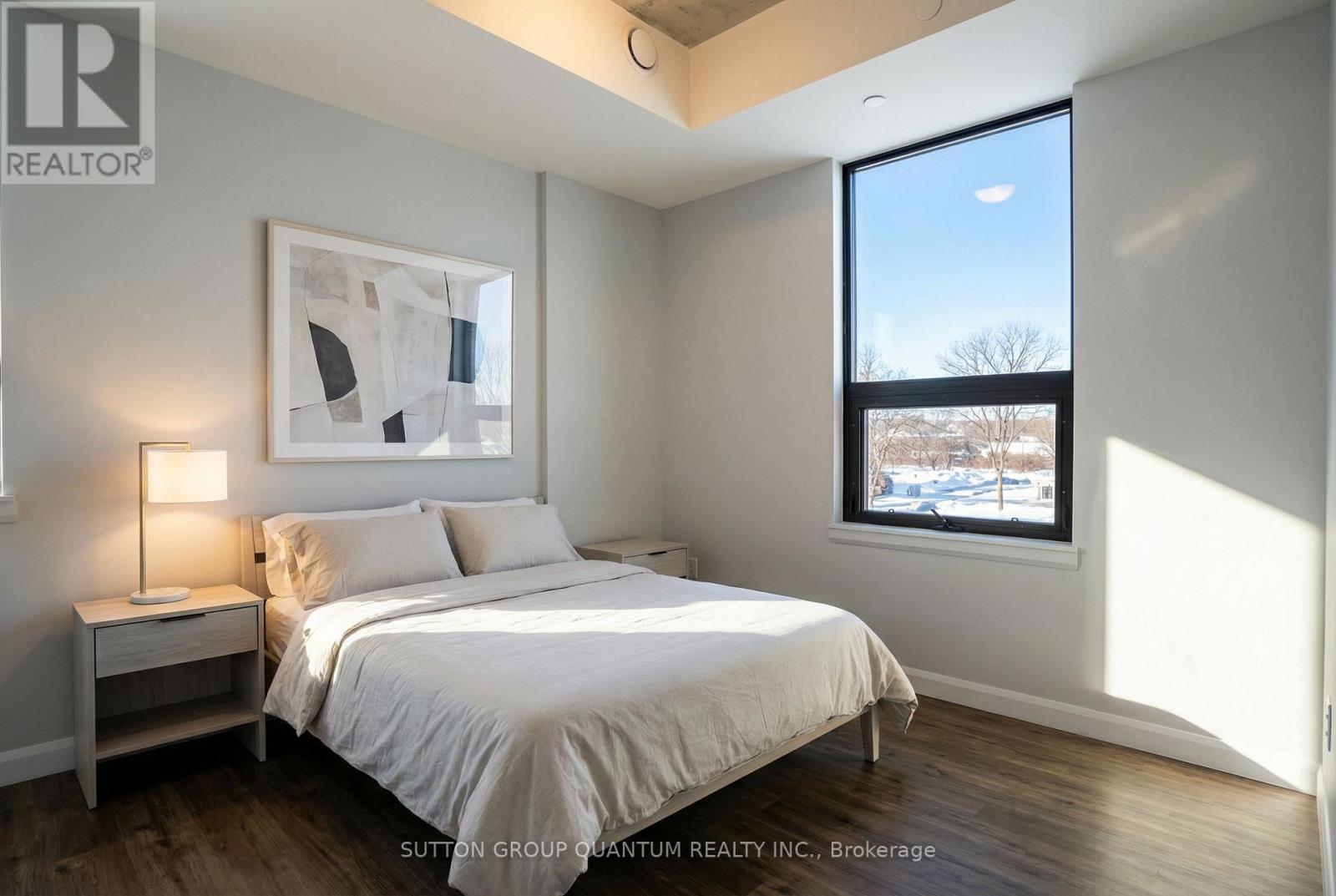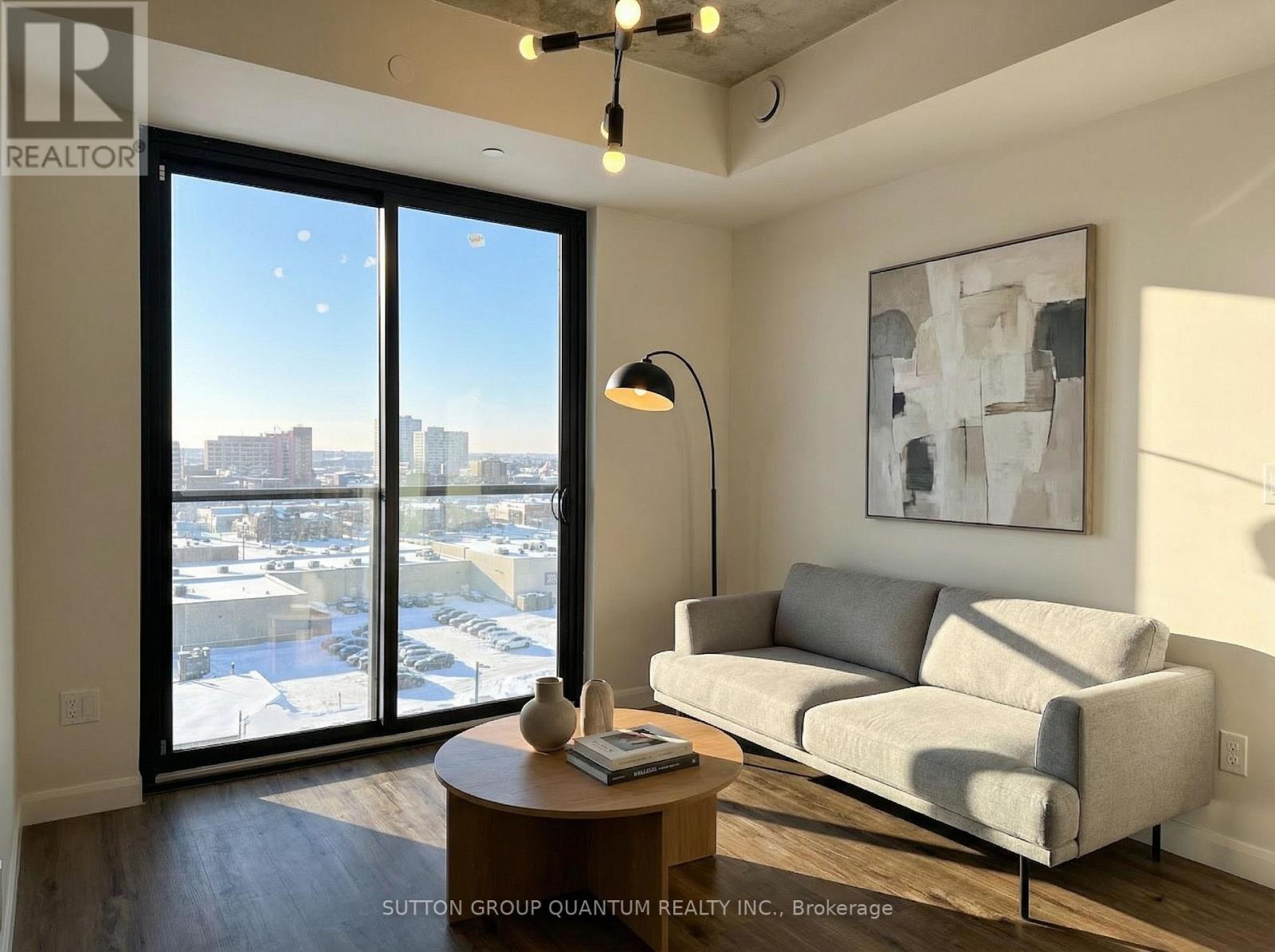Welcome to Grand Bell Condos at 7 Erie Avenue, one of Brantford's most desirable addresses. This bright and well-designed 1-bedroom plus den, 1-bathroom suite offers functional open-concept living with soaring 9-foot ceilings and large windows that fill the space with natural light and showcase open north views over downtown. The contemporary kitchen features quartz countertops, stainless steel appliances, a large island ideal for dining or entertaining, and ample storage. The spacious living area flows seamlessly, creating an airy and comfortable atmosphere. The living room includes Juliet balcony doors bringing in even more light, while the versatile den provides the perfect flex space for a home office, guest room, or second bedroom. This unit also includes in-suite laundry, one covered parking space, and an owned storage locker for added convenience. Grand Bell Condos is a boutique-style building located in Brantford's first master-planned community, offering residents premium amenities including a rooftop terrace with BBQ area, fully equipped fitness centre, stylish social lounge, co-working space, meeting room, and private party room. Steps to the Grand River and scenic trails, minutes to Laurier University, downtown Brantford, transit, shopping, and everyday conveniences including FreshCo, Tim Hortons, The Beer Store, and Boston Pizza. An excellent opportunity for professionals, students, or investors seeking modern living in a growing and well-connected community. Very attractive DISCOUNTED price. (42013036)