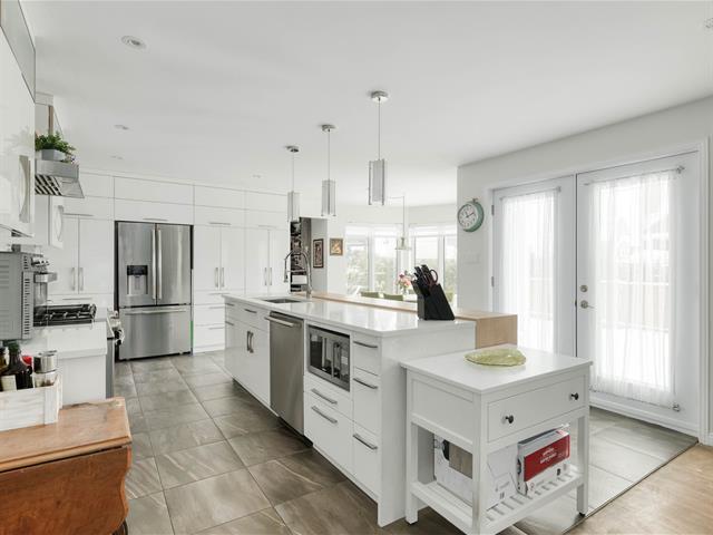 Superbe propriété sur coin de rue à Berthierville! 4 chambres avec possibilité d'une 5e, aire ouverte lumineuse avec foyer au bois au salon et au sous-sol, cuisine avec îlot et plancher chauffant. Chambre au RDC idéale pour bureau professionnel. À l'étage, suite principale digne d'un hôtel avec boudoir, 2e chambre avec salle de bain attenante et grand walk-in. Garage double chauffé, immense terrain intime de plus 16 600 pi² avec piscine chauffée. Impeccable! À voir absolument! (40988104)