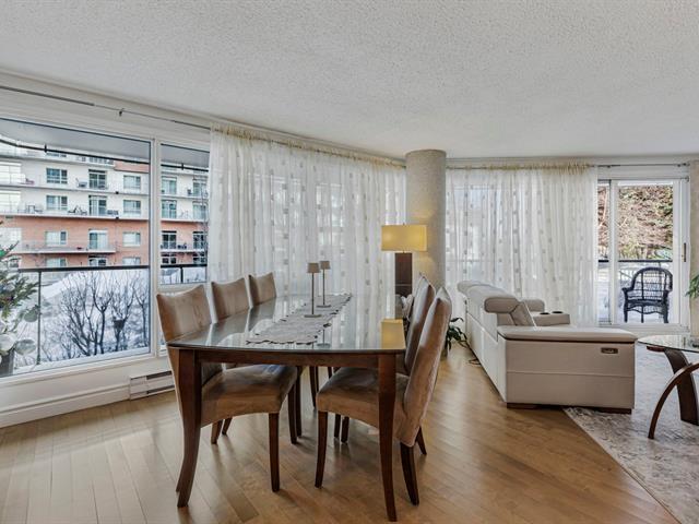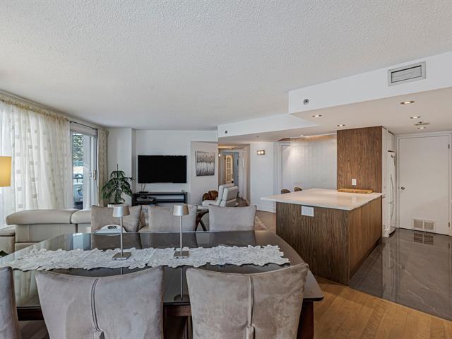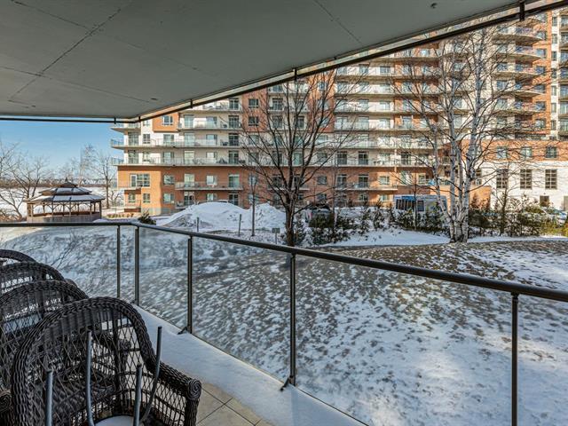 Beautifully renovated ground-floor condo at Le Classy, offering stunning views of the St. Laurent river from the balcony. Spacious rooms and direct access to exceptional amenities without leaving the building: heated pool, spa, sauna, gym, community room, and a landscaped waterfront courtyard along the river. A rare opportunity--book your visit today. (57372560)