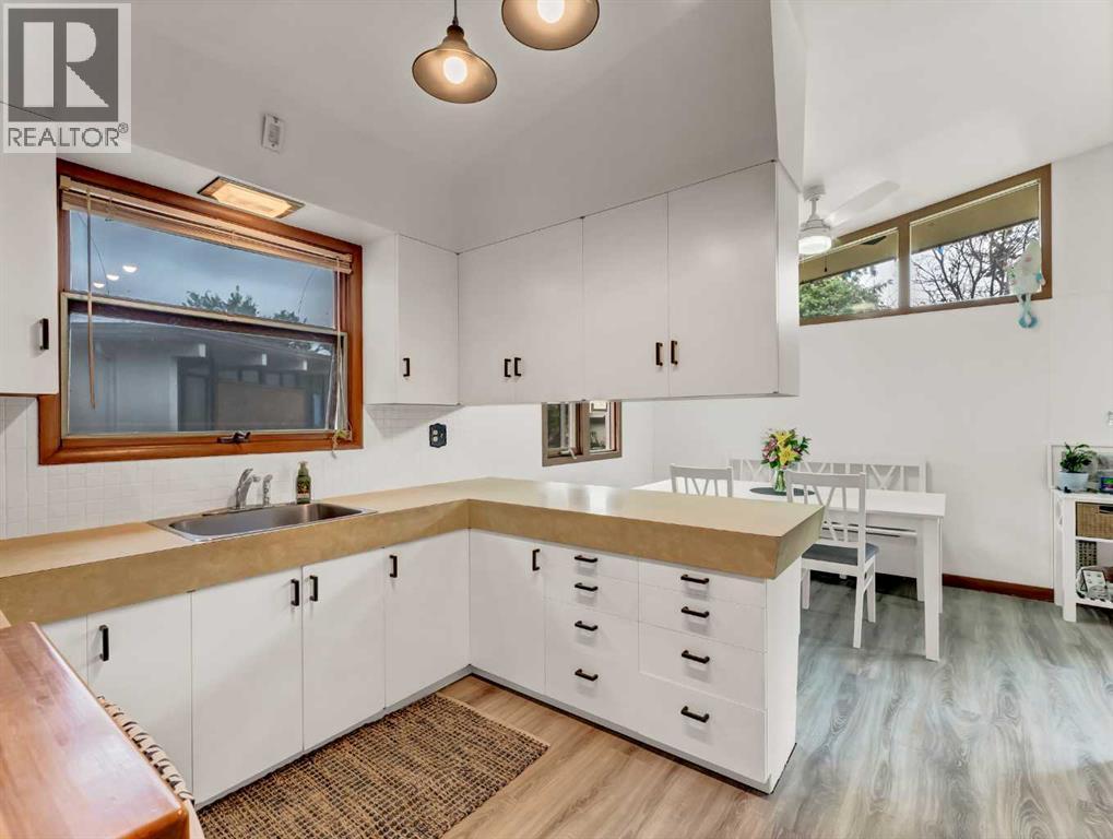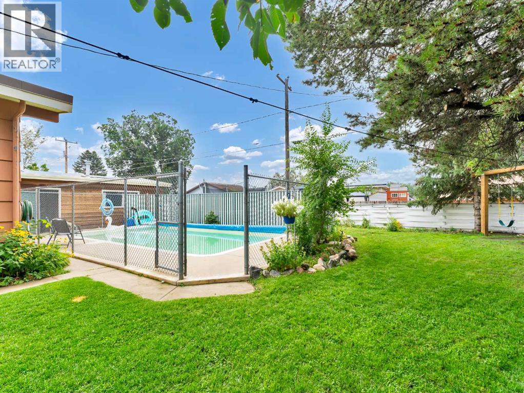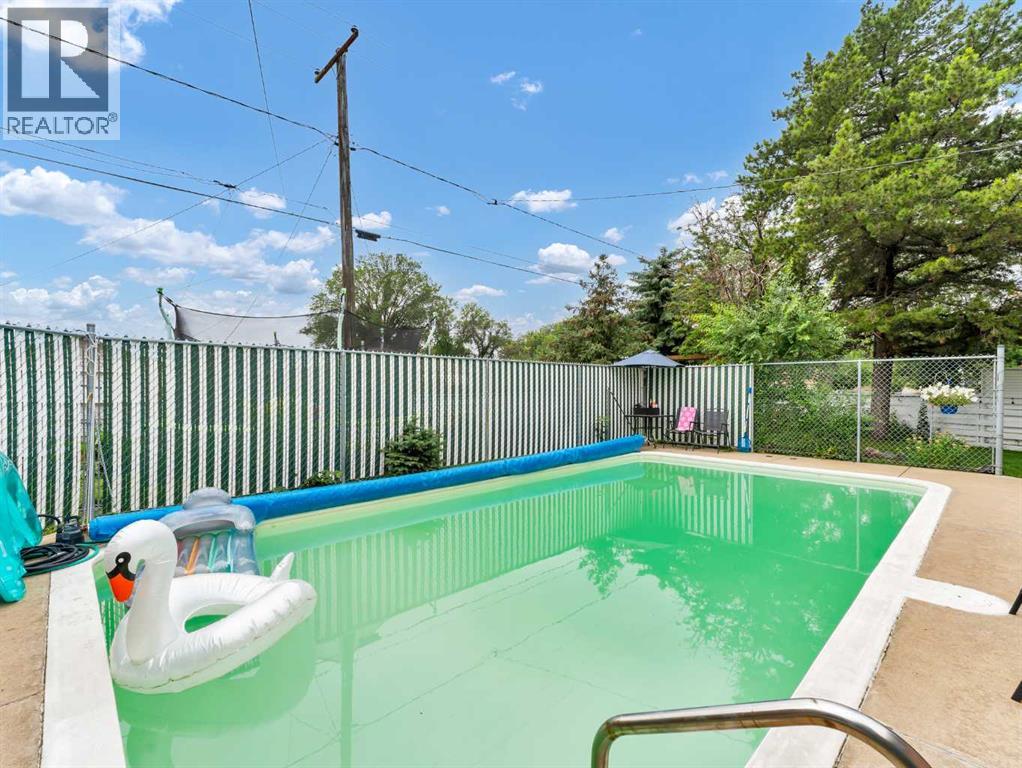 164 Muir Crescent NW – Mid-Century Modern Charm in a Prime Location! Tucked away on a quiet crescent directly across from a beautiful greenspace and park, this mid-century modern gem offers the perfect blend of character, comfort, and convenience. Located close to several schools and the Big Marble Go Centre, this home is ideal for families or anyone seeking a vibrant yet peaceful neighbourhood. Step inside to discover a spacious and inviting layout featuring 2 bedrooms up, 2 bedrooms down, and 2 full bathrooms. The main floor has been refreshed with stylish new vinyl plank flooring, while the beautifully updated bathroom boasts eye-catching black and white tile for a modern touch that still feels timeless. The large front living room is filled with natural light, and flows seamlessly into the dining area and charming kitchen—perfect for hosting or everyday living. The backyard is a true retreat. Enjoy sunny days by the inground pool, gather around the outdoor brick fireplace, or unwind in the private, fully fenced yard with plenty of space for relaxing or entertaining. There's also a double detached garage with alley access, adding great functionality to this already well-rounded home. Don’t miss your chance to own this unique and stylish property in one of the city’s most desirable locations! (31568042)