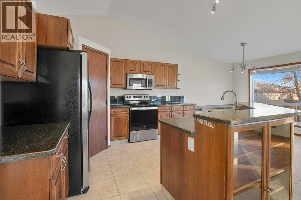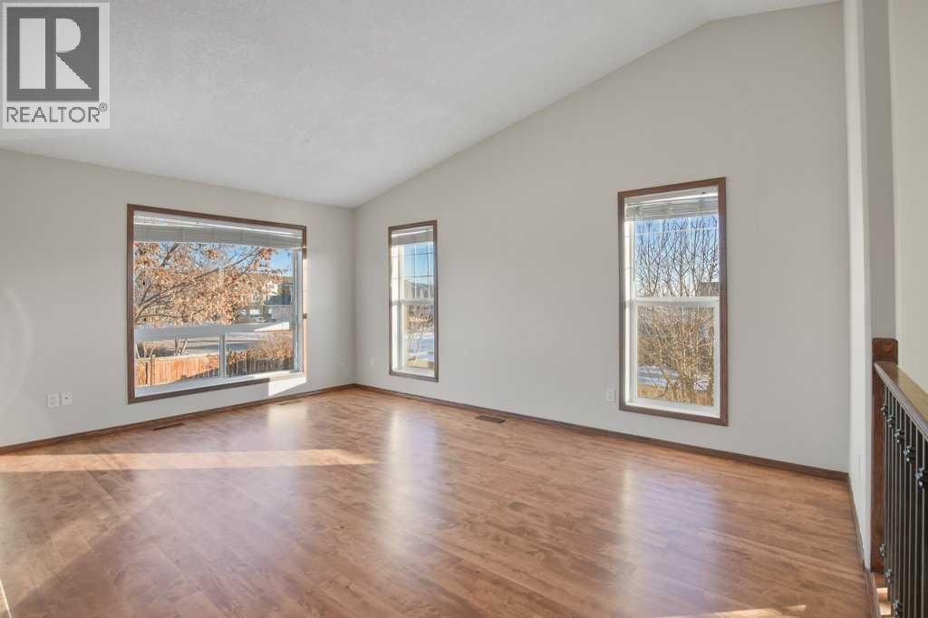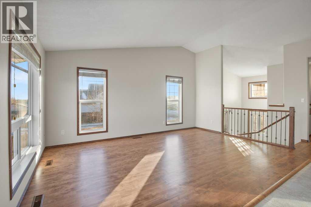 Perched on a corner lot, this BEAUTIFUL BI-LEVEL could be perfect for you! Natural tones compliment the curb appeal of this fantastic home. The double detached garage is insulated and drywalled to provide cozy indoor parking. Step inside and take in the vaulted ceilings and airy ambience. Greet your guests from the covered veranda into the large foyer, tiled and featuring a generous closet. Numerous windows allow natural light to pour throughout the floorplan. The hub of the home features newly finished hardwood floors! Rich dark cabinetry and stainless steel appliances compliment the kitchen. The island offers a sit-up bar and additional prep space. Two generous pantries provide loads of storage. The primary bedroom is spacious and boasts a 3-piece ensuite. The den could also be converted into a lovely nursery or bedroom with the easy addition of a wardrobe. A 2-piece powder room can also be found on this floor. Step thru the garden door to enjoy the deck and fully fenced backyard. Mature trees and landscaping boarder the property while offering additional privacy. Back inside, the lower level of the home hosts a fantastic family room. BRAND NEW PLUSH CARPET and a gas fireplace give the space a cozy feel. Two bedrooms and a 4-piece bathroom provide accommodations for company or older children. Laundry and storage can also be found on this lower floor. Let the sun shine through those large windows, CENTRAL AIR keeps this home comfortable during those warm Summer months. Recent Upgrades Include: New Shingles 2025, New Furnace 2023, New Carpet & Paint throughout 2026, and Refinished Hardwood Floors 2026. An incredible investment for any buyer. Time is ticking, schedule your showing today!! (31567278)
