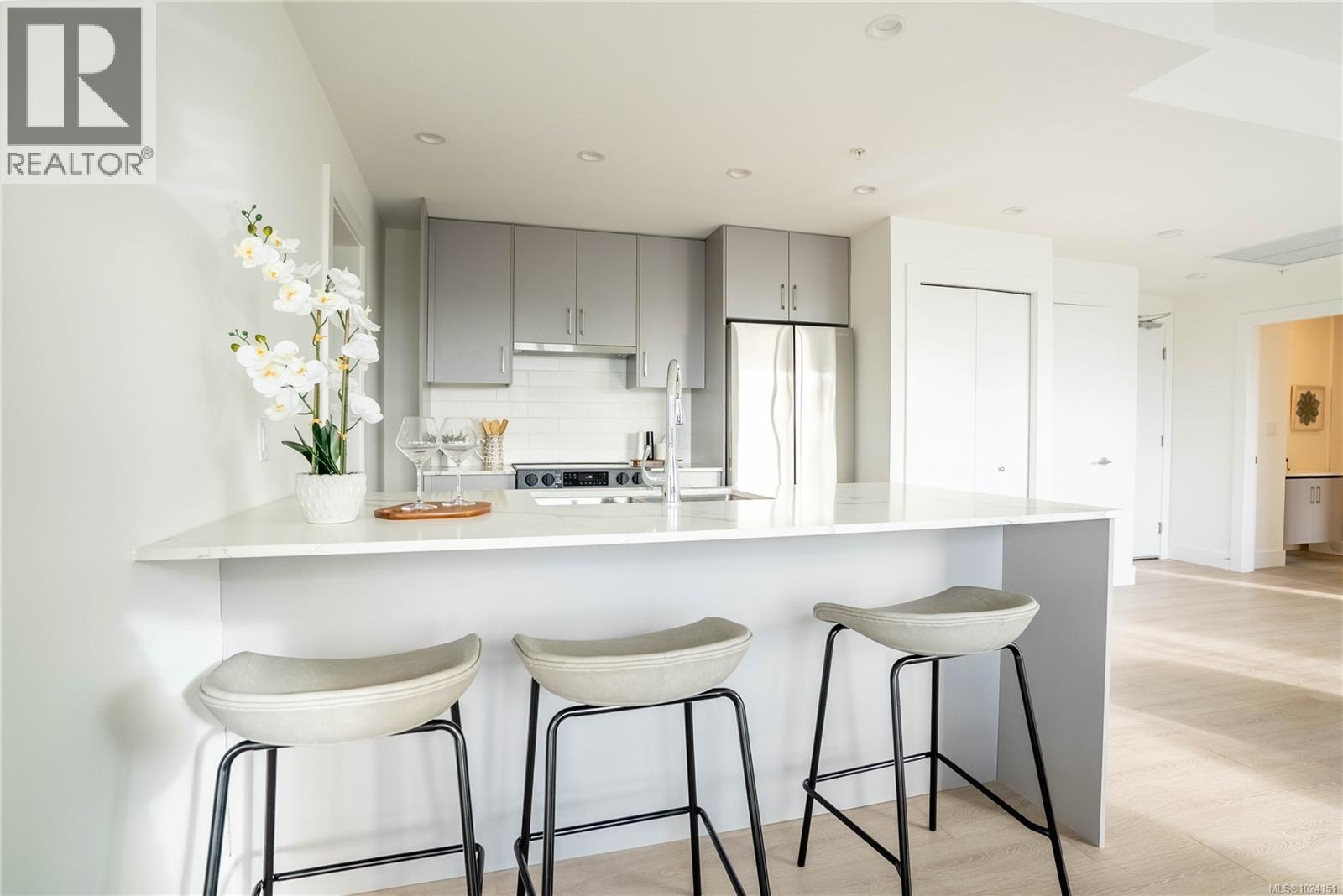 OPEN HOUSE Sat, Feb 7th 1-3PM. Welcome to The Royale. Starting at $474,900*,a collection of 55 elegant homes that are MOVE IN READY redefining modern living. Property Transfer Exempt and GST for some buyers. Nestled in a prime location, The Royale seamlessly blends contemporary design w/ timeless elegance. Beautiful one, two, and three bedroom homes that are thoughtfully designed w/high-end finishes, spacious layouts, high ceilings, & private patios. Premium details include stainless steel Samsung appliances, High end fixtures, and wide plank flooring. Secured underground parking, AC, Rooftop Patio, and much more. Situated in the vibrant community of View Royal and situated just minutes from parks, beaches, schools, shopping, Vic General Hospital, & the convenience of a boutique commercial space right on the ground floor. Experience the perfect balance of urban accessibility & the natural beauty of Vancouver Island. Strata fees covering both heat & air conditioning. *Price+GST. (30311007)