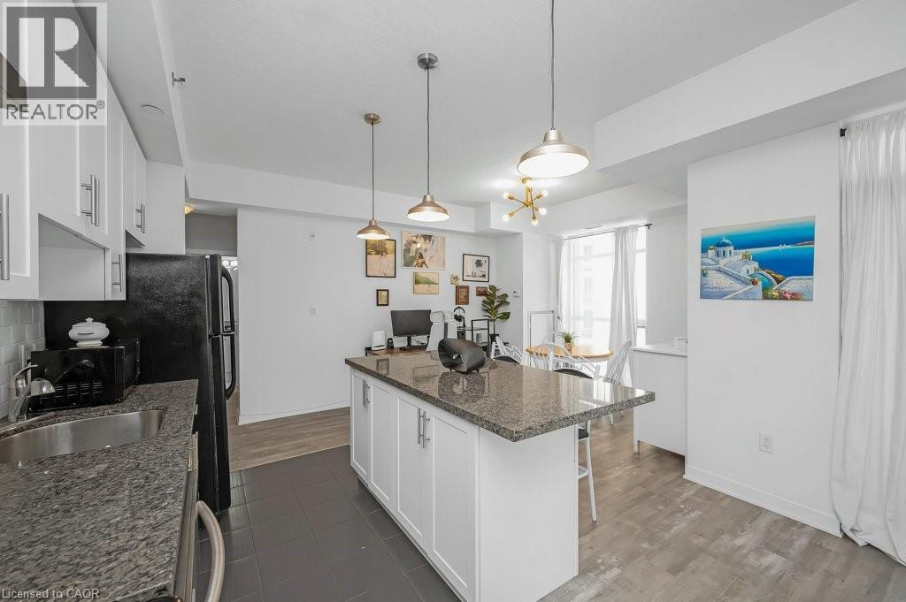 Welcome to City Square @ 90 Charlton Ave West, located in one of Hamilton’s most sought-after neighbourhoods! This bright and stylish 1-bedroom + den corner unit offers 777 sq ft of thoughtfully designed living space with soaring 9'3 ceilings and a functional open-concept layout. Spacious kitchen complete with granite countertops, tile backsplash and large island w/ pendant lighting, perfect for entertaining or relaxing at home. Upgraded laminate and ceramic flooring throughout adds modern flair, while the generously sized bedroom and versatile den offer flexibility for work-from-home or guest space. Step out onto your private 97 sq ft balcony for morning coffee or an evening unwind. Convenience is key with in-suite laundry, a dedicated parking space, storage locker, and access to fantastic building amenities including a party room, fitness centre, and bike storage. Enjoy efficient year-round comfort with eco-friendly geothermal heating and cooling. Just minutes to highway access, GO Station, St. Joseph’s Hospital, parks, schools, and all that downtown Hamilton has to offer. Ideal for first-time buyers, professionals, or downsizers. (70087617)