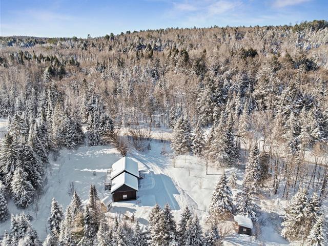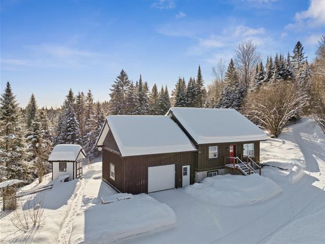 Nature lovers, this property is for you! Set on a beautiful, private one-acre lot just 40 minutes from Mont-Tremblant, this 2010-built home with a heated 24' x 24' garage offers a warm rustic-chic style. The open-concept layout and cathedral ceiling provide abundant natural light. With 1,680 sq. ft. of living space, it features 3 bedrooms, 2 bathrooms, and a walk-out basement with a family room and wood-burning stove. Easy year-round access on a quiet cul-de-sac. Close to the Maskinongé River, Lake Commandant, and aerobic trail networks. 1h15 from Gatineau/Ottawa and 1h45 from Montreal. (55077938)