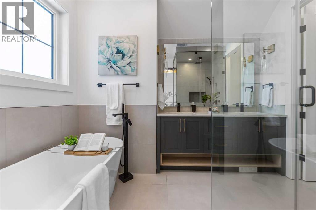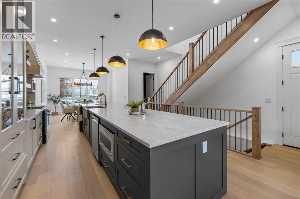 Welcome to 2323 53 Avenue SW — A brand new home with over 3000 sqft of developed space with south facing backyard that brings you luxury, everyday comfort, and convenience. You're welcomed by a bright dining area with a chandelier and a large window for natural light that connects to the main floor featuring a 10-foot ceiling, a well-equipped gourmet kitchen comes with a 15 foot island, quartz countertops, full height cabinetry , and a premium Kitchen Aid appliance package. The open concept connects the kitchen to the living area with a gas fireplace, custom built-ins, and large sliding patio doors that create a perfect space for entertaining. Going through the doors, you are greeted by a large full-size patio and backyard fully fenced and landscaped for your quality family time. Upstairs, the primary bedroom is a luxurious retreat with vaulted ceilings, a walk-in closet, and a luxurious ensuite featuring dual vanities, a freestanding tub, a walk-in shower with a rainfall showerhead, and in-floor heating. Upper floor features a 9-foot ceiling and 8 feet doors, a bonus room, two additional bedrooms, a full bathroom, and a dedicated laundry room with a sink. The fully developed basement includes a rec room with a wet bar, a gym, a full bathroom, and a fourth bedroom ideal for movie nights and hosting guests. Additional features include a speaker system, an AC rough-in, a security rough-in , and a double detached garage. Close to schools, Glenmore Athletic Park, and Tennis Dome. Don't miss this excellent opportunity to own this remarkable home. (31566694)