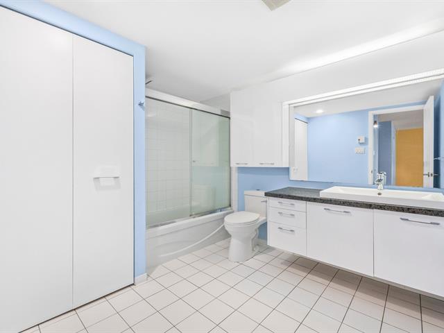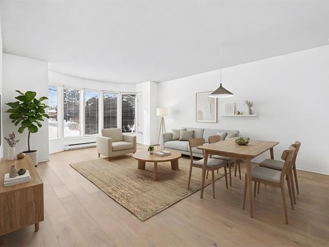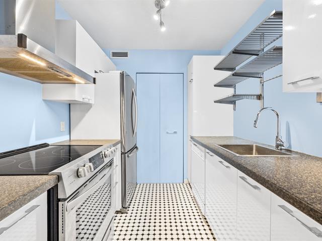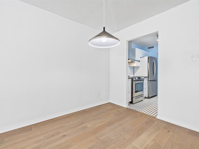 Discover this stunning condo in L'Esplanade de l'Île, on Île-des-Soeurs, Montreal. Bright and inviting, it features large windows, an open-concept layout, and a fully renovated kitchen. New oak hardwood flooring adds warmth and elegance throughout, creating a truly welcoming atmosphere. The spacious bathroom includes an integrated laundry area and the bedroom and entry hall offer full-height closets for optimal storage. (50963598)