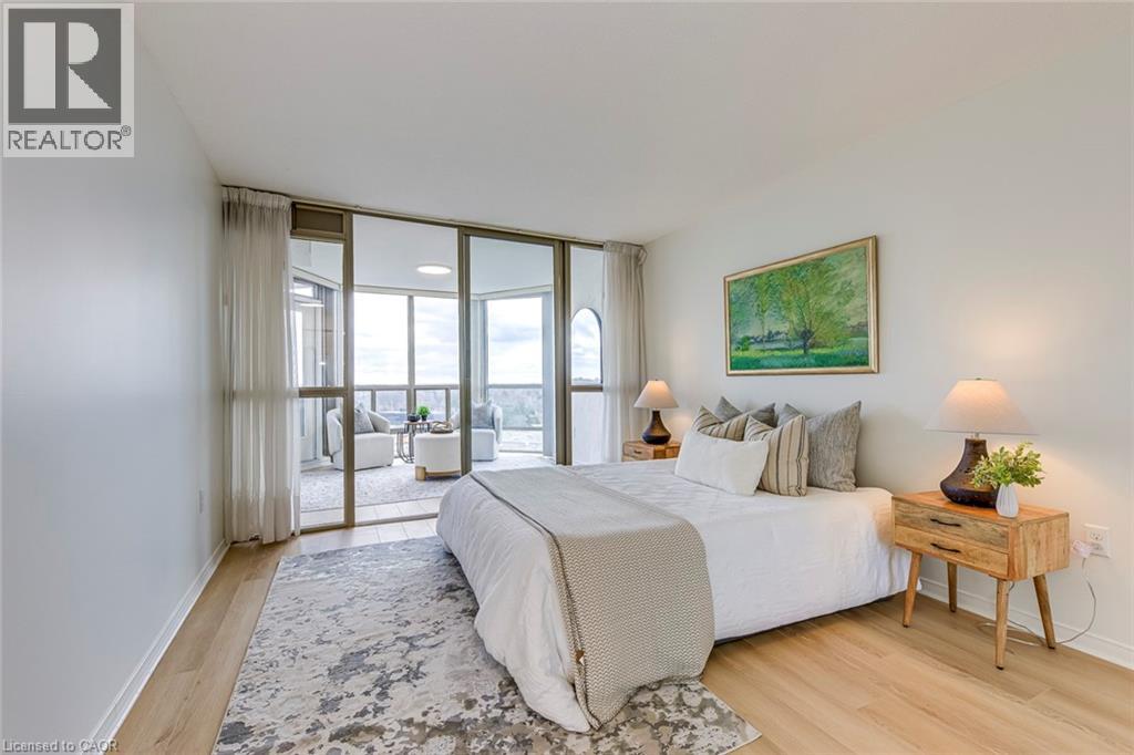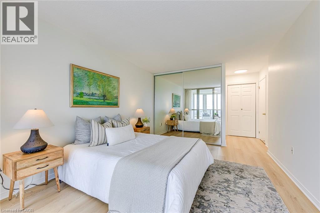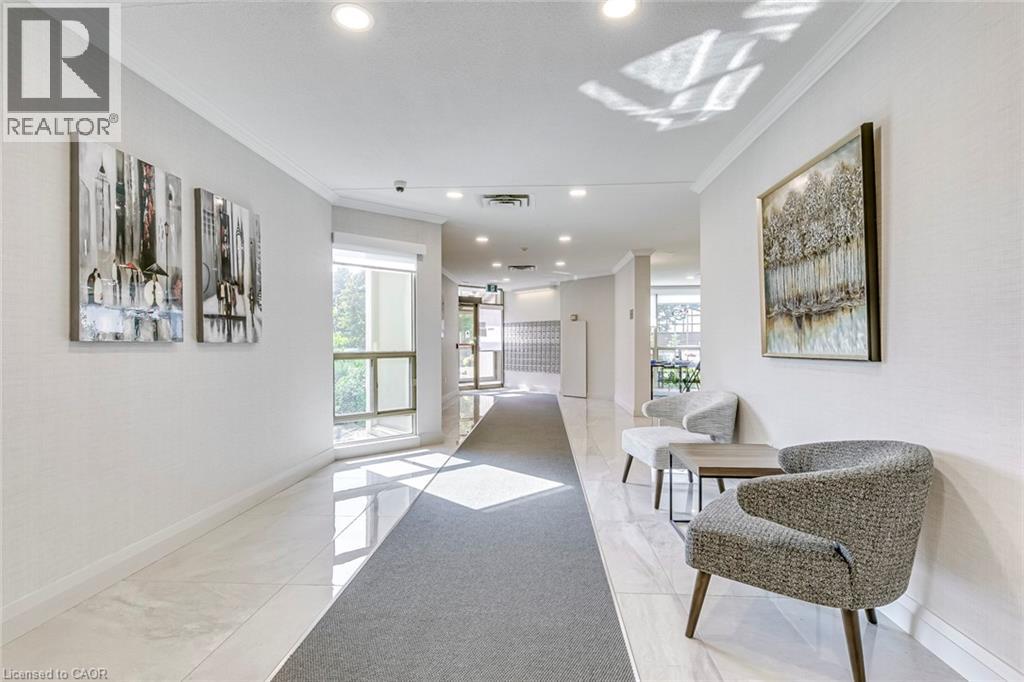 Welcome to one of Burlington's most sought-after condominium communities, offering exceptional comfort, security, and convenience in a prime location. This beautifully updated 2-bedroom, 2-bath suite features 1,222 sq. ft. of bright, open-concept living space with new flooring, freshpaint, crown moulding, and expansive windows that fill the home with natural light. The spacious living and dining areas access an enclosed balcony with sweeping east-facing views of Lake Ontario and the Burlington skyline, creating the perfect extension of your living space. The bright renovated kitchen offers stainless steel appliances, ample cabinetry, updated hardware, tile flooring, and a clean, functional layout ideal for everyday cooking or entertaining. The generous primary bedroom includes an oversized close, 4-piece ensuite bath, and access to a sunroom that makes an excellent reading nook or home office. A second large bedroom, full bath, in-suite laundry, and two underground parking spaces add comfort and practicality. Residents enjoy an impressive list of amenities including an indoor pool, sauna, exercise room, library, media room, party room, games room, car wash bay, outdoor BBQ area, visitor parking, and beautifully maintained grounds. Condo fees cover building insurance, cable TV and high-speed internet, water, landscaping, snow removal, parking, and all common area facilities. This unbeatable location-places you steps to Appleby GO Station, Fortinos, Longo's, major shopping plazas, restaurants, cafés, medical centres, Bateman CommunityCentre and Library and the waterfront's scenic parks and trails, with quick access to the QEW, 403, and 407. Families will appreciate proximity to top-rated schools including Frontenac PS, Pineland (French Immersion), Nelson HS, Ascension CES, and Assumption CSS. A perfect opportunity for downsizers, first-time buyers, or anyone seeking move-in-ready living in a quiet, well-managed community close to every convenience Burlington offers. (70088523)