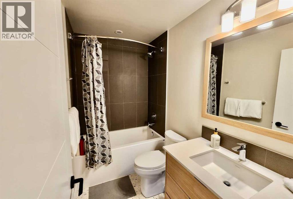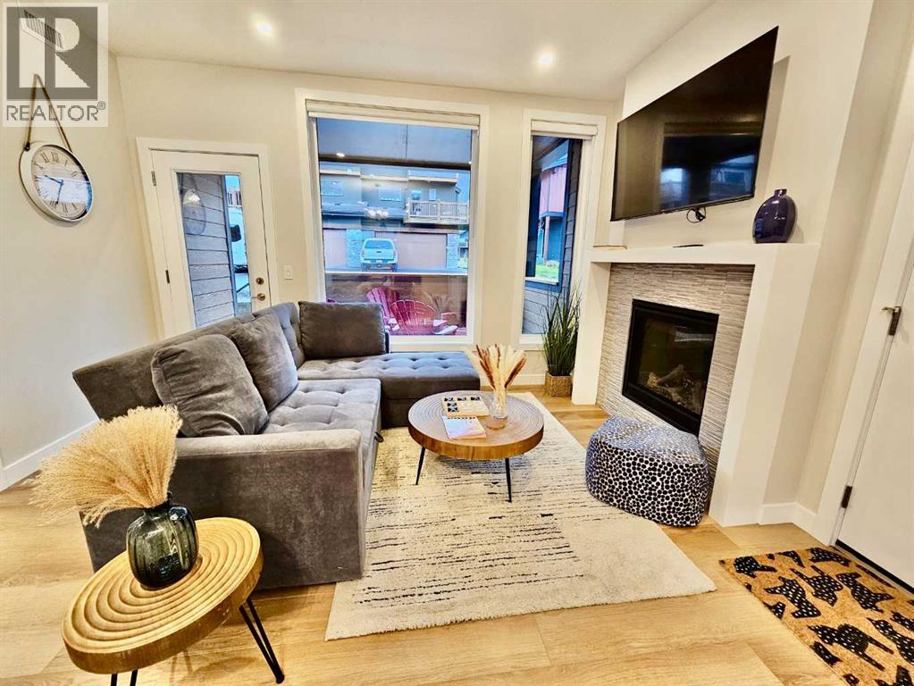 Fully Furnished, turnkey opportunity within Three Sisters Mountain Village, just under an hour from Calgary. This beautiful first-floor 2-bedroom, 2-bath unit features modern kitchens with stainless steel appliances and stone countertops, along with an oversized deck perfect for enjoying breathtaking panoramic mountain views. The primary bedroom includes a private 4-piece ensuite, while the second bedroom offers scenic views and a convenient office nook. Additional highlights include a "car-and-a-half" garage with ample storage and close proximity to the future Gateway Business District. Still covered under the Alberta New Home Warranty Program, this unit combines sustainable luxury with peace of mind. Whether for personal enjoyment or as an investment in Canmore’s thriving real estate market, this home is priced to sell fast—don’t miss your chance to embrace the mountain lifestyle today. **The unit comes with 55' TV, Sectional, Dining Table, 2 X Beds with side tables and all Kitchen appliances and small ware** (31569733)