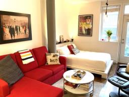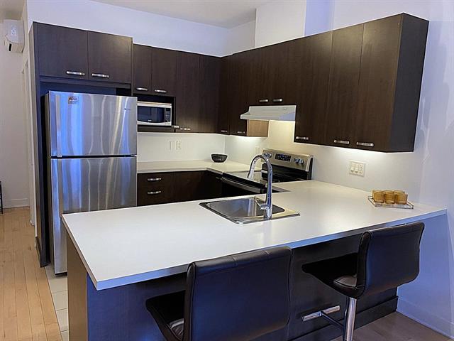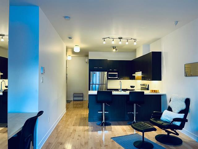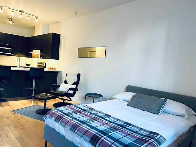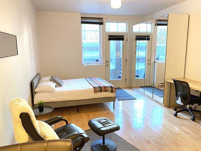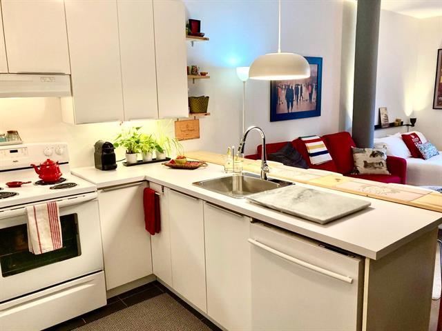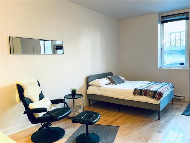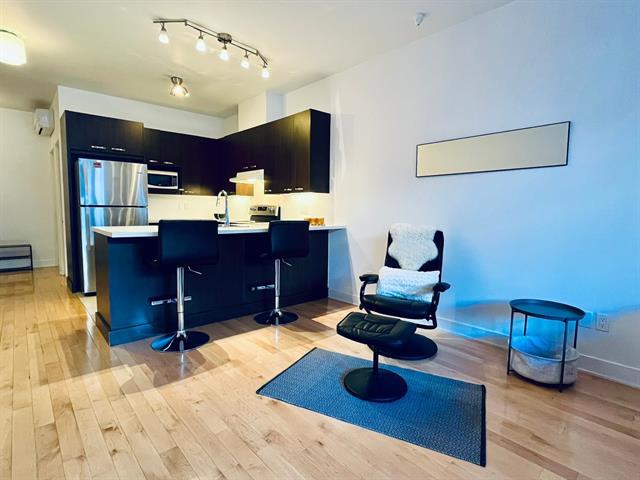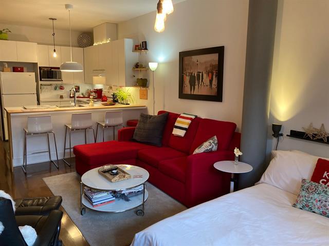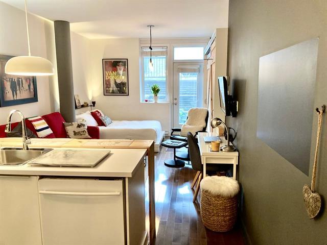Spacious studio with plenty of room for different design options. This gorgeous open concept apt can accommodate a full-sized sofa and bed, has a large kitchen & bathroom, an office nook, and a private garden terrasse as well. High quality finishings, 9 ft ceilings, A/C unit, private indoor locker, all make this an ideal cozy home. Located conveniently, it is a 2 minute walk to the 197 and 25 bus stop, 11 minute walk to Rosemont metro and 10 minutes drive to the highway. Park Père Marquette nearby offers playgrounds, skatepark, skating rink, baseball & soccer fields, and even dog runs. Presently rented. Parking not included in the sale. (38663825)