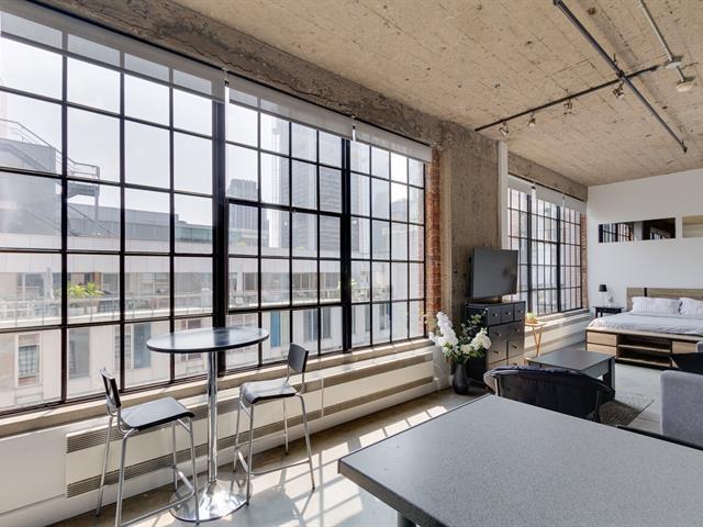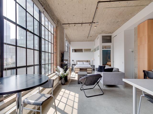 Immerse yourself in the epitome of New York loft living in the heart of Old Montreal, just steps away from Square Victoria metro station. It is located in a historic building on the 9th floor. This captivating loft boasts impressive 11-foot-high ceilings, offering a sense of expansive space and freedom that defines the urban style. With its industrial-inspired aesthetic, exposed beams, bricks, and concrete ceiling. This turnkey condo is rented with all furniture and utilities included, providing tenants with a hassle-free solution for those in search of a move-in-ready residence. (46273748)