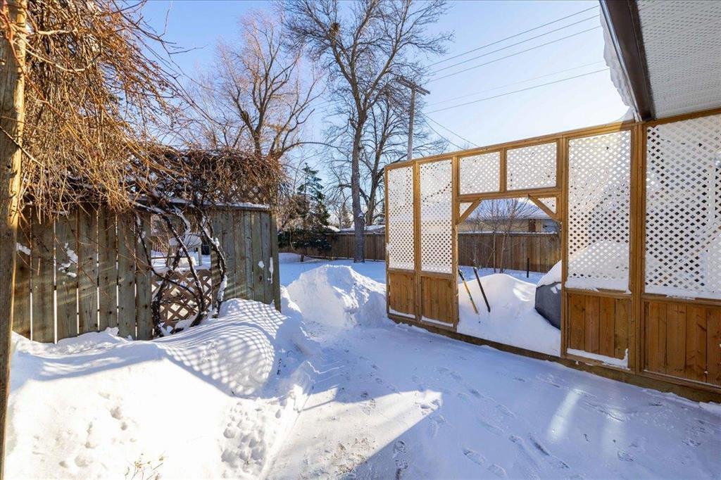 4G//Winnipeg/OTP Feb 2 - Check out the virtual tour! This is the one you ve been waiting for. Welcome to 4 Teakwood Avenue in Garden City, a move-in-ready, lovingly maintained bungalow set on a huge, fully fenced lot. Step inside and you re greeted by an abundance of natural light pouring through large living & dining room windows, highlighting the beautiful hardwood floors. The layout is bright, warm, & welcoming. The main floor offers three well-sized bedrooms & a beautifully renovated bathroom, featuring a ceramic tile shower w/ glass doors, a modern vanity, & updated tile flooring. The spacious eat-in kitchen overlooks the backyard and comes equipped with newer SS appliances, ample cabinet storage, & generous counter space. Downstairs, you ll find a fourth bedroom, a full bathroom w/ a newer shower, newer washer & dryer, and a large rec room anchored by a cozy corner gas fireplace. It s immediately clear how well this home has been cared for over the years, w/ key updates already done for you, including Roof (20), Main floor bathroom (23), Appliances (23), Rear deck stained and more. Homes like this don t last long in Garden City. This is your opportunity to step into a home that s ready for its next chapter. (231889947)