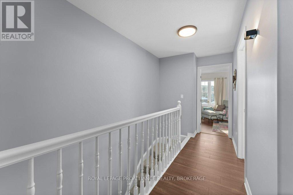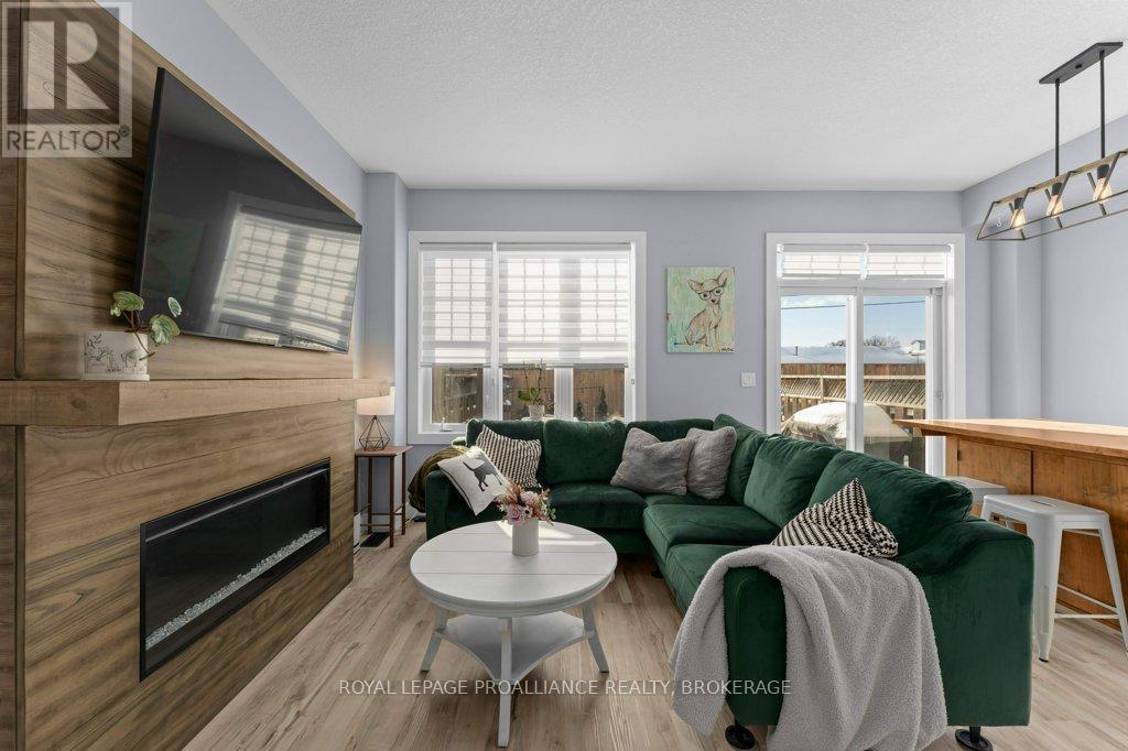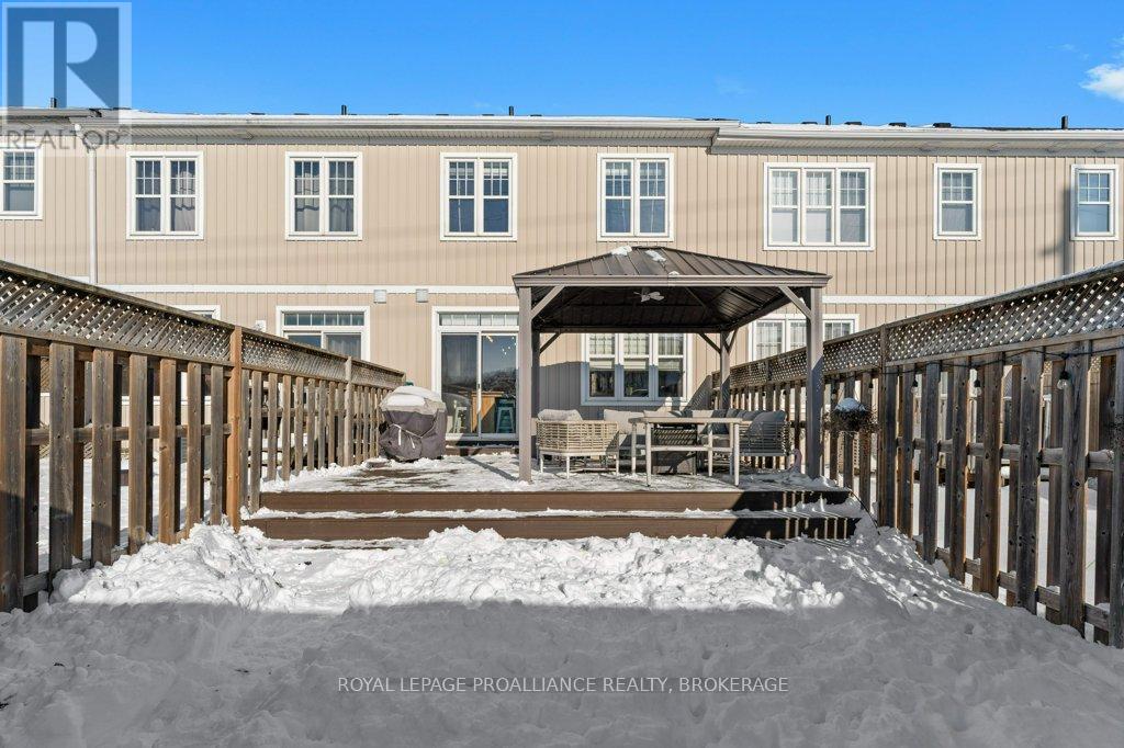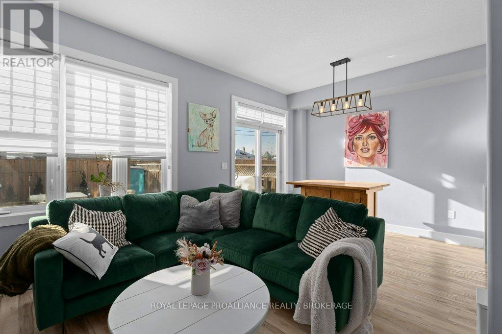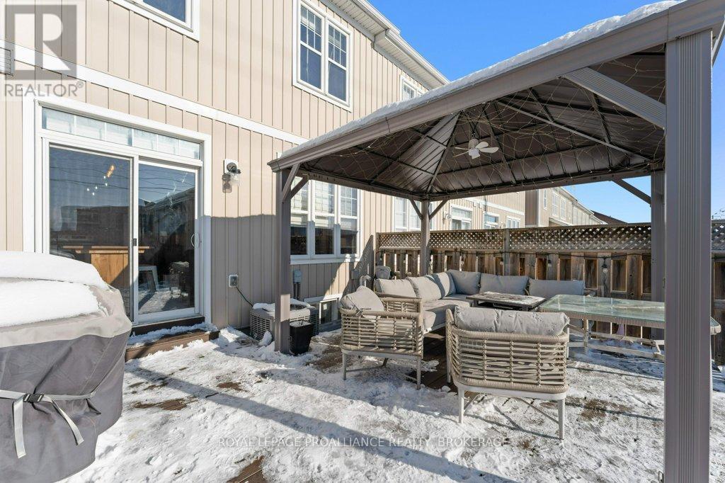 Welcome home to this beautifully maintained 3 bedroom, 2.5 bath town home that blends comfort, style, and smart living. From the moment you arrive, you'll appreciate the hardscaped front yard, offering great curb appeal with low maintenance. Inside, the main floor features an updated kitchen and powder room as well as ample space to gather for living and dining. Newer carpet on the stairs adds a fresh, cozy touch, while modern conveniences like an Ecobee thermostat, Nest camera, and doorbell bring peace of mind and efficiency. All appliances are under five years old, making this home truly move-in ready. Upstairs, the spacious primary bedroom is a true retreat, complete with a walk-in closet and cheater ensuite bath and enjoy views of the river and Waaban Crossing. Two additional bedrooms provide flexibility for family, guests, or a home office. The finished basement expands your living space with a comfortable rec room, a full bathroom, and valuable cold storage. Step outside to a fenced backyard designed for relaxation, featuring a composite deck, pergola, and four newly planted cedars. With an attached garage offering inside entry and thoughtful updates throughout, this town home checks all the boxes for easy, modern living with access to express transit to KGH and Queen's or easy access to CFB Kingston! (42017509)