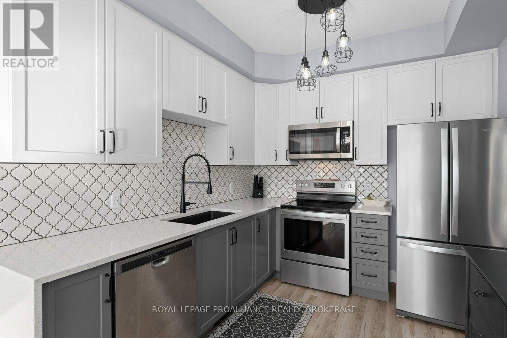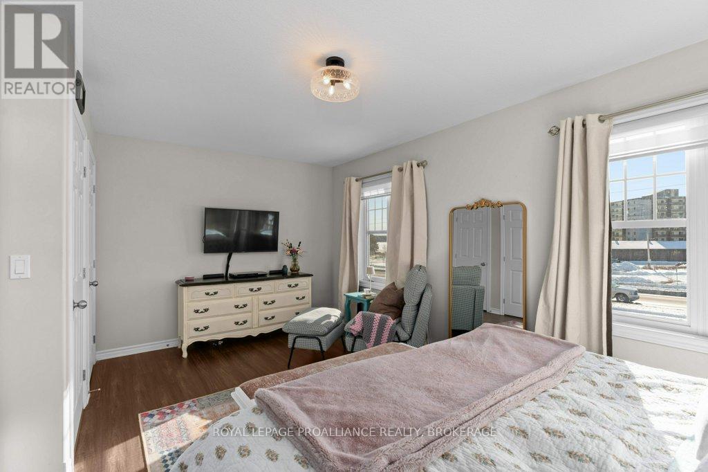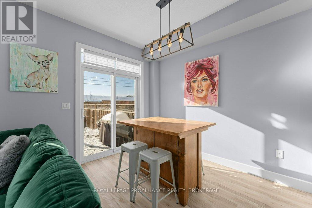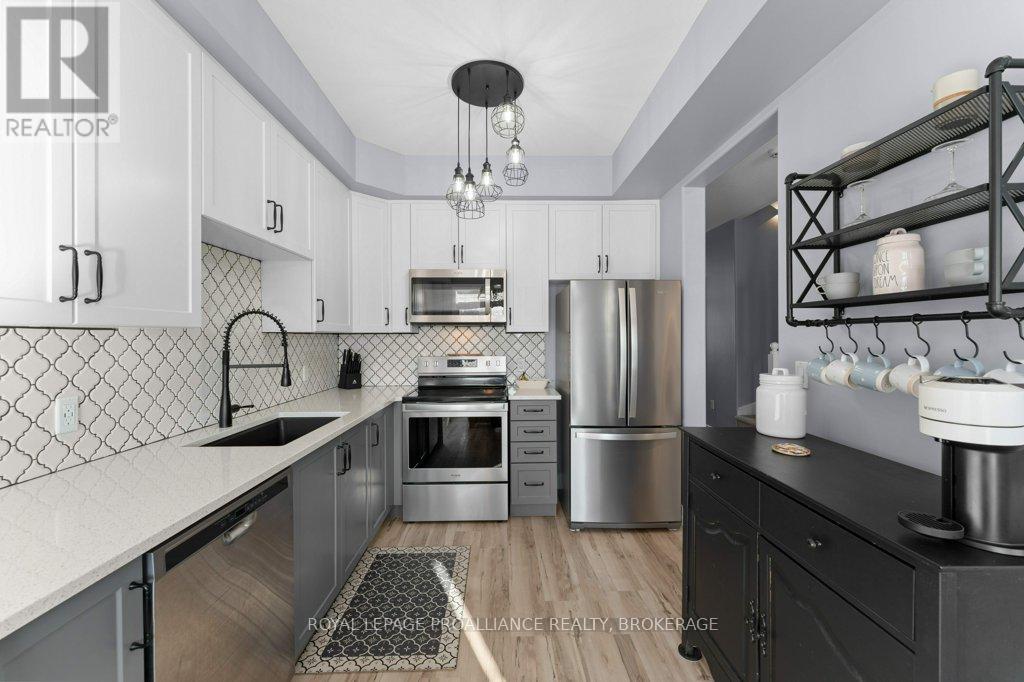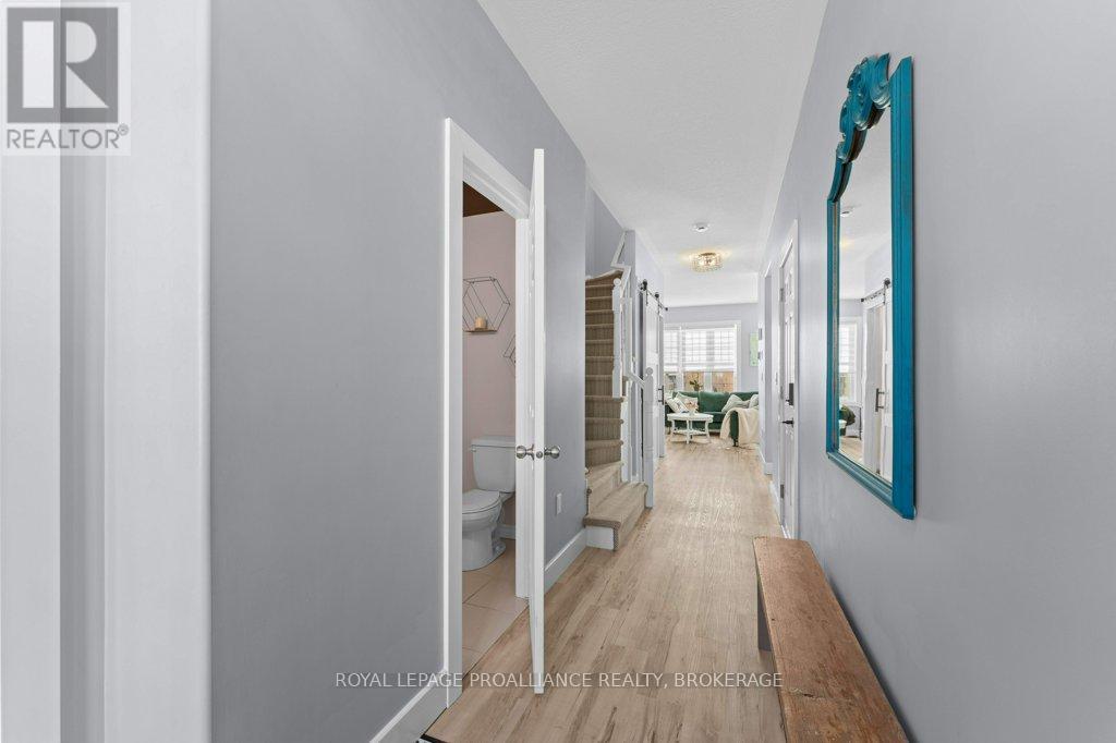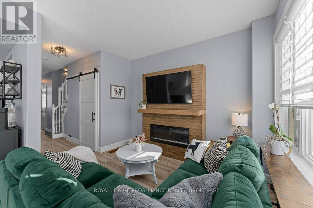 Welcome home to this beautifully maintained 3 bedroom, 2.5 bath town home that blends comfort, style, and smart living. From the moment you arrive, you'll appreciate the hardscaped front yard, offering great curb appeal with low maintenance. Inside, the main floor features an updated kitchen and powder room as well as ample space to gather for living and dining. Newer carpet on the stairs adds a fresh, cozy touch, while modern conveniences like an Ecobee thermostat, Nest camera, and doorbell bring peace of mind and efficiency. All appliances are under five years old, making this home truly move-in ready. Upstairs, the spacious primary bedroom is a true retreat, complete with a walk-in closet and cheater ensuite bath and enjoy views of the river and Waaban Crossing. Two additional bedrooms provide flexibility for family, guests, or a home office. The finished basement expands your living space with a comfortable rec room, a full bathroom, and valuable cold storage. Step outside to a fenced backyard designed for relaxation, featuring a composite deck, pergola, and four newly planted cedars. With an attached garage offering inside entry and thoughtful updates throughout, this town home checks all the boxes for easy, modern living with access to express transit to KGH and Queen's or easy access to CFB Kingston! (42017509)