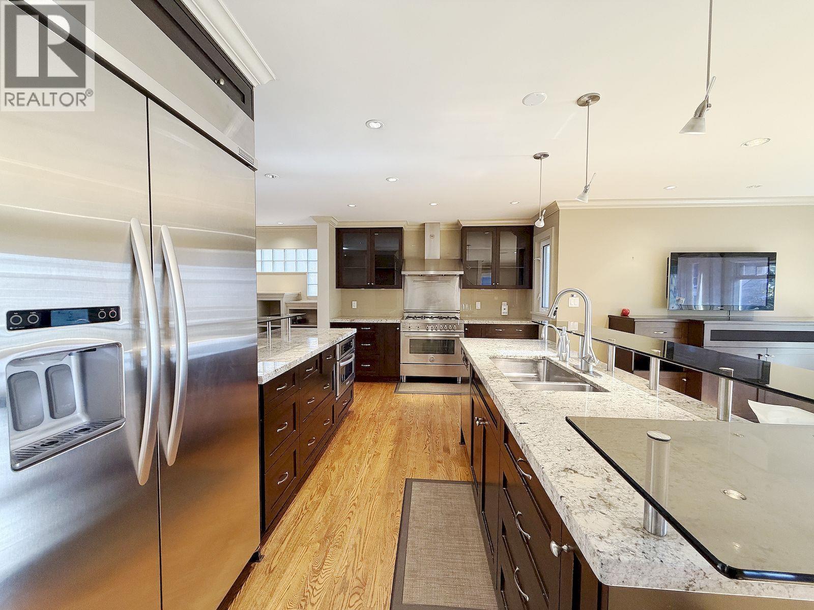 Beautiful custom built family home in prime Dunbar location. Open concept main lvl incl. lving rm w/oak HW flrs, gas FP &big windws overlkg frt grdn. Lrge updated kitch w/6 burner Bertazzoni gas stove, SS apps &granite countertops. Adjacent family rm w/TV surround sound, lots of built-ins & French drs to back deck and S facing lower patio. Low maintenance & prvte outdr space w/built in Weber BBQ, outdr FP, outdr lighting &irrigation system. Upstairs feats open office area w/3 spacious bdrms, incl. lrge mster w/his&hers closets, &5PC ensuite w/soaker tub. Lower flr w/sep entrance, media rm, 4PC bth, office/guest rm w/murphy bed, laundry. Pets friendly (32371983)