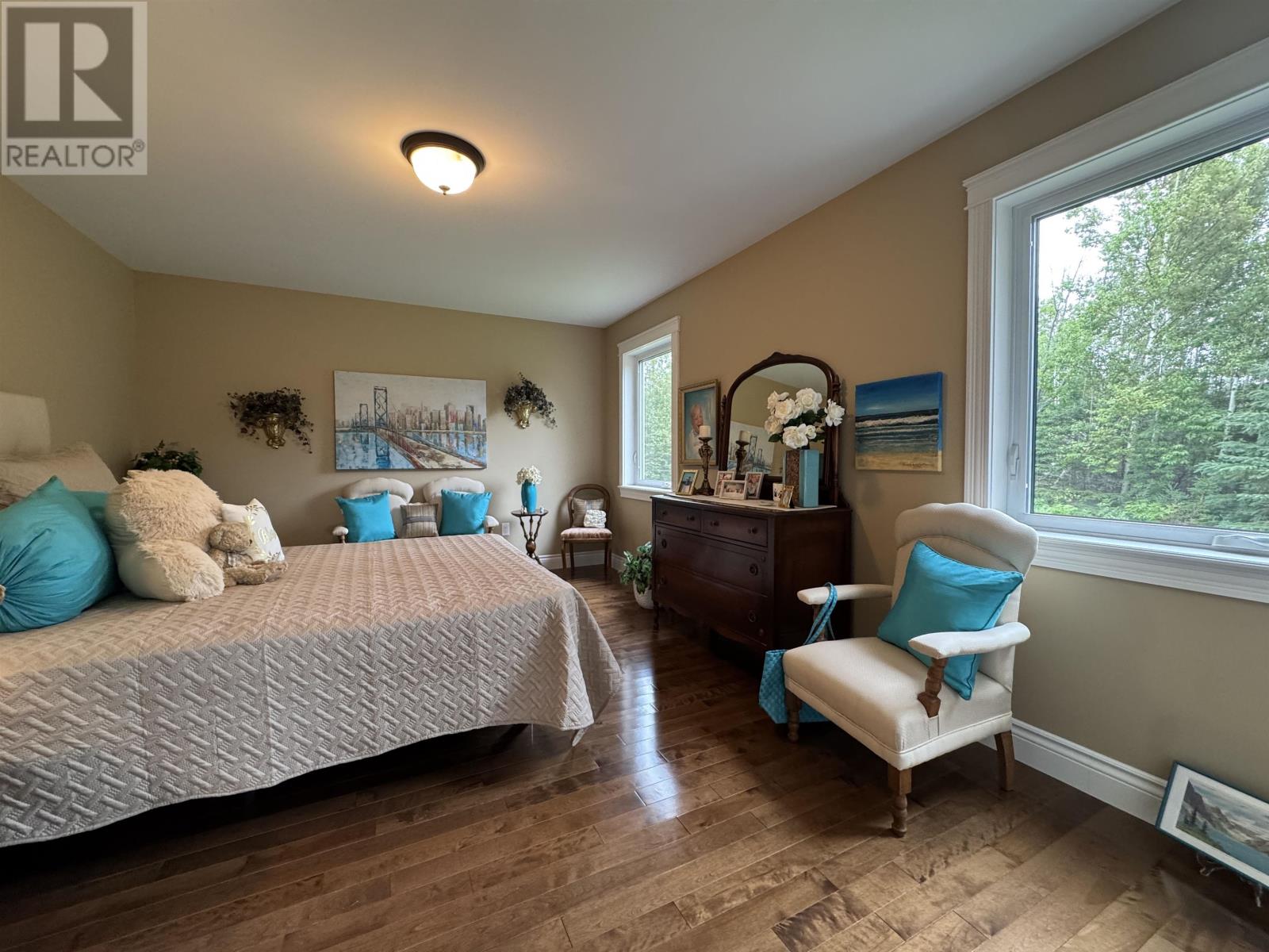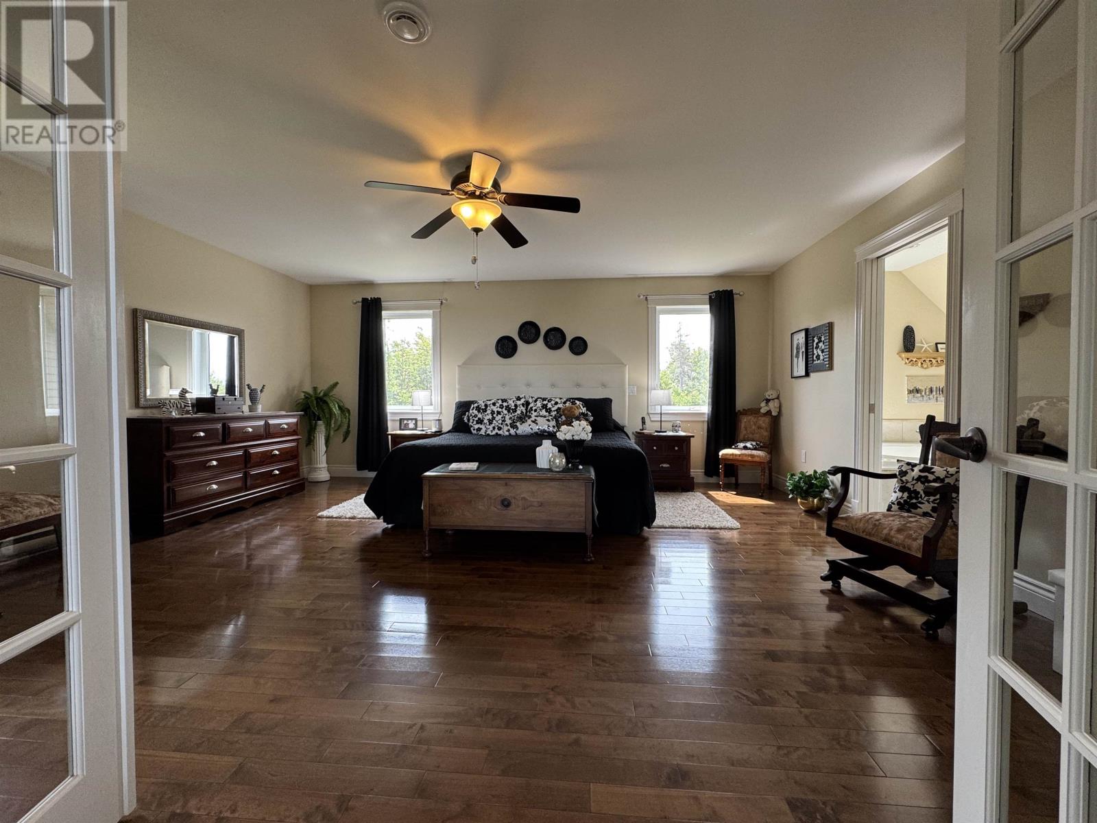 This is truly a beautiful, immaculate, quality-built custom home which boasts over 3500 sq ft of finished living space. Nestled on a water view, treed, mature 1.1 acre lot in a private sub-division. Minutes to the picturesque surroundings of PEI's National Park, miles of sandy beaches, golfing, deep sea fishing, restaurants, walking and ATV trails as well as local shopping and close proximity to Charlottetown. Here you have deeded access to the water where you can sit, water sport, dig clams or enjoy a beach fire while taking in the beautiful scenery & Sunsets. The main level of the home begins with a spacious open foyer that flows into the large combined great room and dining area featuring 24 ft cathedral ceiling, large window seats, floor-to-ceiling windows that maximize natural light as well as your water view of Rustico Bay, Robinson's Island and the Ocean! This area is enhanced by the extra ambiance created from the large exquisite custom built mantled fireplace. You will love the well appointed kitchen, large Island, lots of counter space, cabinets, walk in pantry, stainless steel appliances and complimenting backslash. This well designed area is ideal for entertaining. Also on the main level is a very bright large bedroom with a walk-in closet, a half bath and large back foyer giving access to the double attached garage. The eye catching grand stairway leads to the upper level featuring a lovely sitting area loft over looking the main area & views! French doors lead to a spacious peaceful retreat primary bedroom, 11' x 6' walk-in closet, large ensuite with jacuzzi tub and separate shower. The lower level with egress windows consists of bright rec room, propane stove, a 3rd bedroom with walk-in closet, large laundry/full bathroom, a finished large office/games room that can easily convert to a 4th bedroom, a multi-purpose room, a mechanical room & a cold storage room. The best of four season tranquil living, this fanta (231890577)