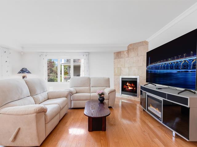 Bright and spacious corner-unit condo ideally located near Parc Michel-Chartrand and Hôpital Pierre-Boucher. Featuring two bedrooms, a full bathroom, a cozy living room with gas fireplace, and a sunny family room leading to the balcony. Enjoy the tranquility of the wooded area with a pedestrian path behind the property. Includes a private double garage. A rare opportunity in a sought-after Longueuil neighborhood. (41695337)