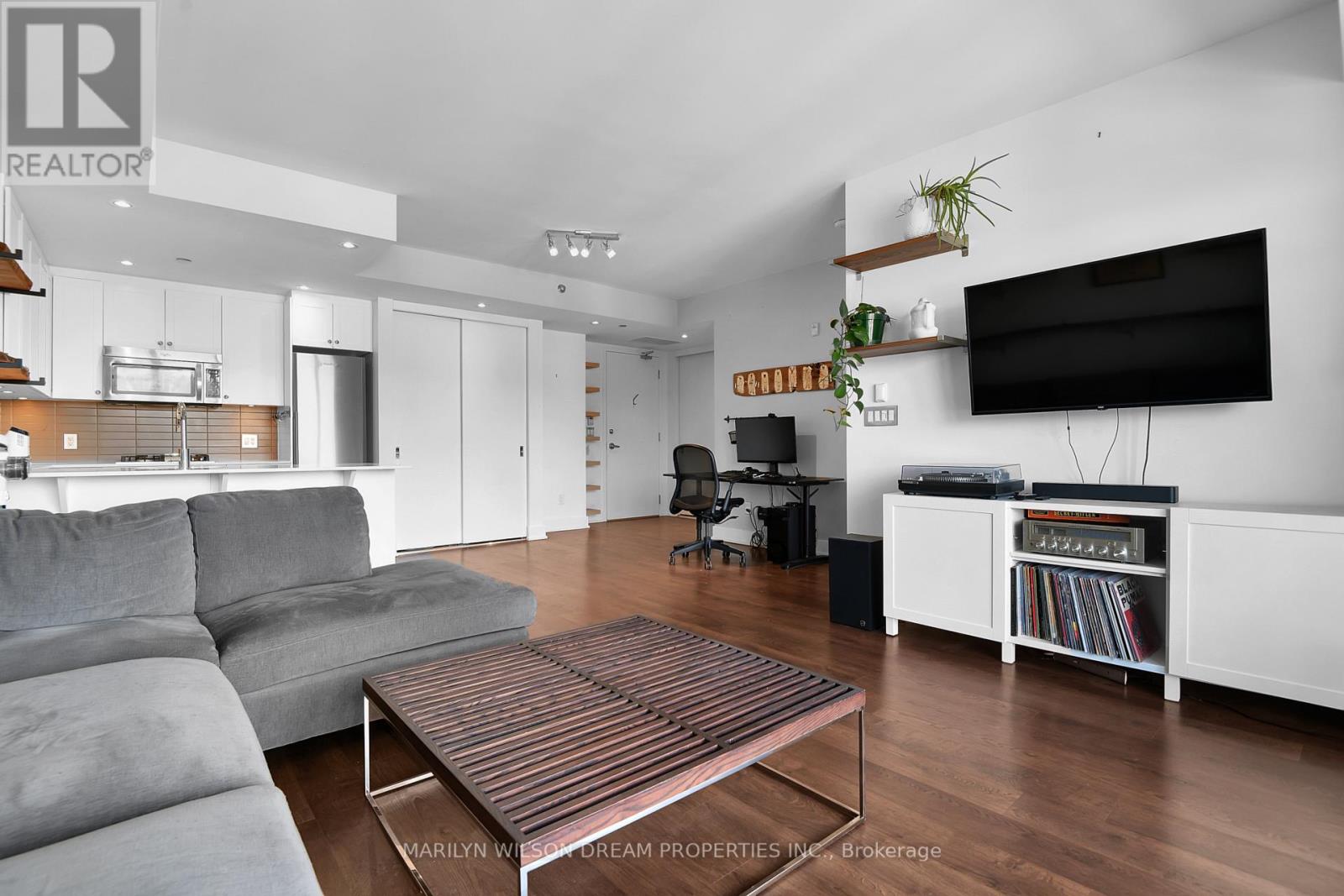 With 720 square feet (+/-), this 1-bedroom condo offers far more breathing room than most condos in this category, making everyday living feel comfortable rather than compact. One of the real highlights is the open, low-rise view to the north - no looming towers, just sky, light, and a sense of openness that's increasingly hard to come by. The private balcony is perfect offering a gas hookup which means real barbecuing, not just dreaming about it. The kitchen is both attractive and practical, with quartz counters, a gas cooktop, and plenty of storage so everything has its place. Whether you love cooking or just love a clean, well-designed space, this kitchen really works. The bedroom is spacious and the full bathroom is well laid out. There is lots of closet space! The Kavanaugh itself has a great vibe. It's a friendly, well-run building with thoughtful shared spaces, including a rooftop library room with great views (a hidden gem for working, reading, or just getting out of your unit), a conference room, and a gym. 1 parking and storage locker included. (42018337)