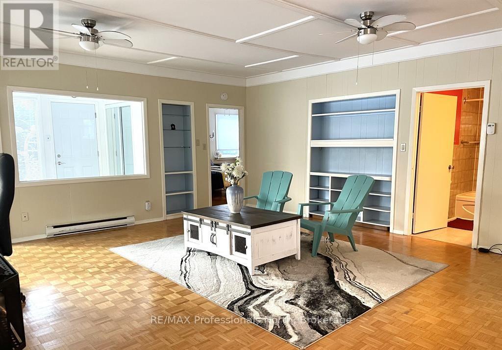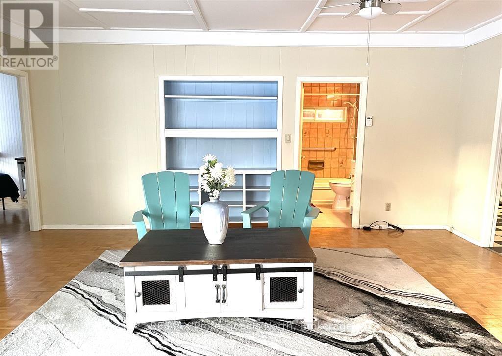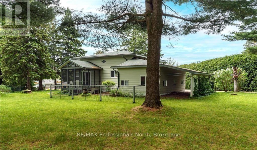 Charming & Unique Bungalow on Hunters Bay. Welcome to this well-located bungalow set on a large, level lot with mature trees and perennial gardens, just minutes from downtown Huntsville. This 3 bedroom, 2 bathroom home features an open-concept layout that's bright and inviting, offering a great opportunity to add your own style and personal touches. The home includes an attached garage with direct interior access, plus an additional carport-plenty of space for parking and storage. The unfinished basement provides extra storage or future potential. A gas fireplace adds warmth and comfort, and new laundry (washer & dryer) will be installed prior to occupancy. Some furniture may be available for purchase if desired. (42018545)