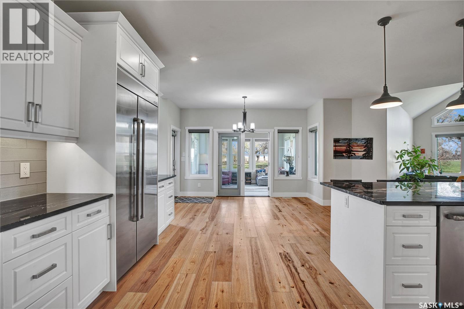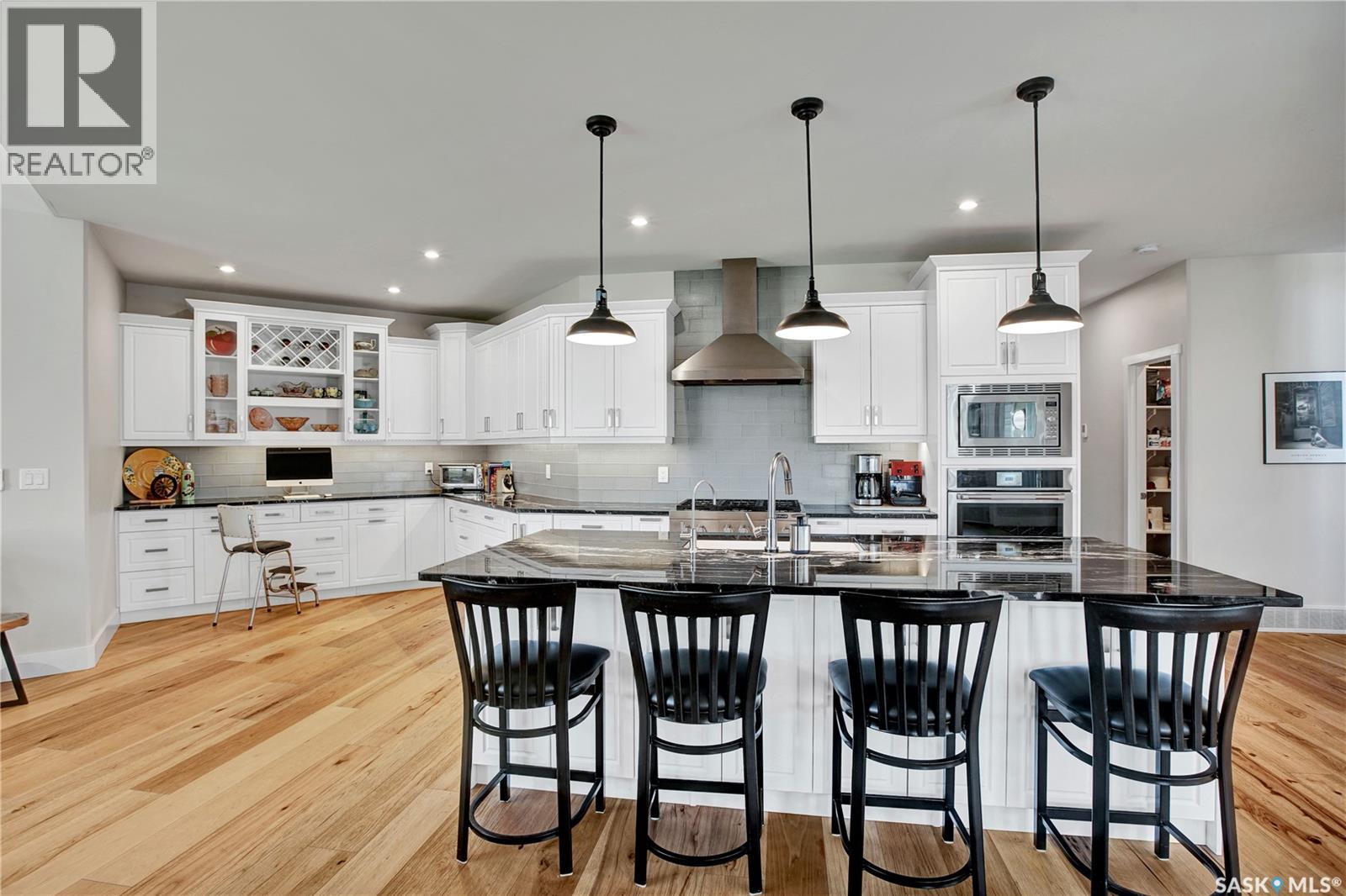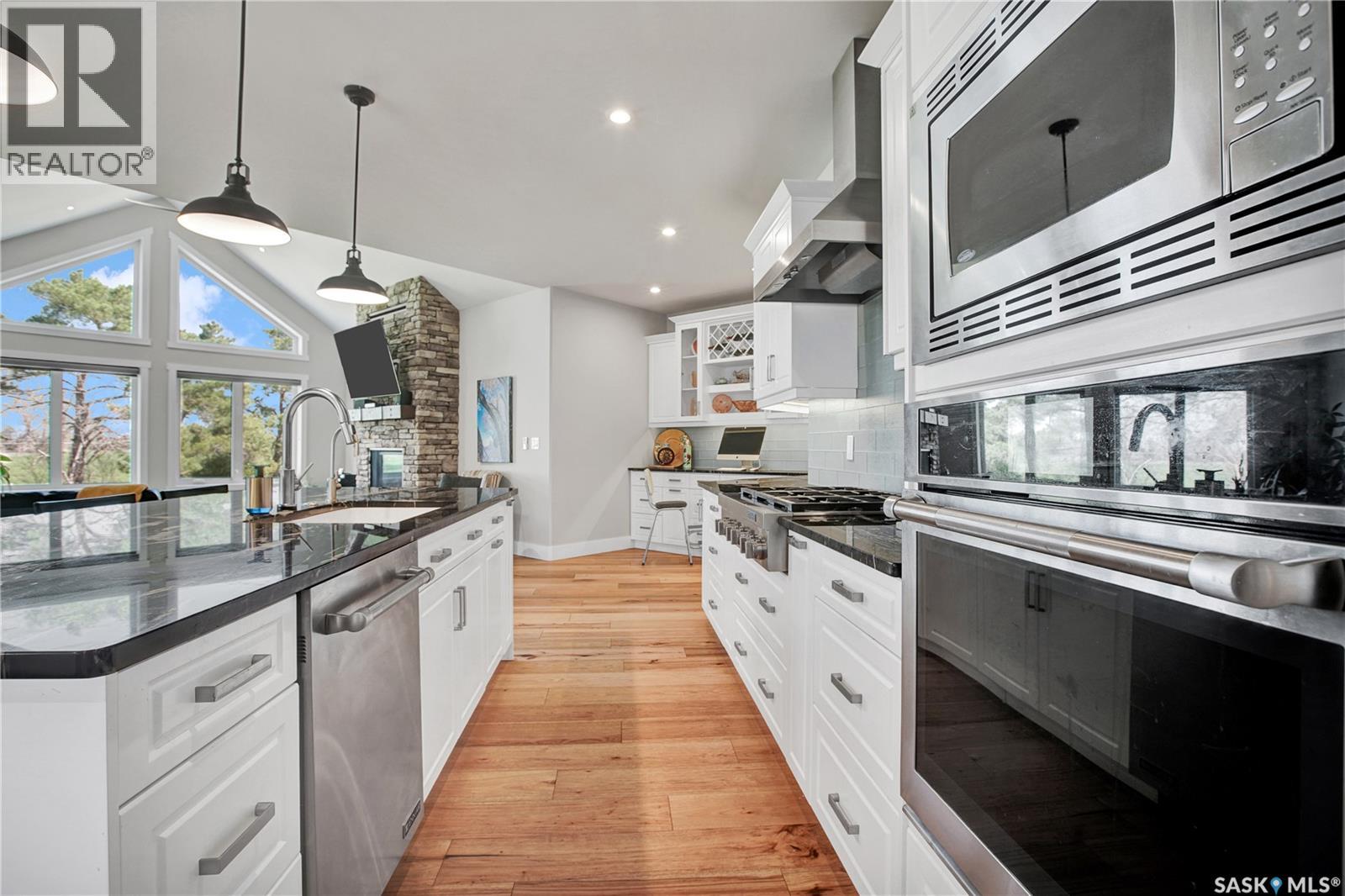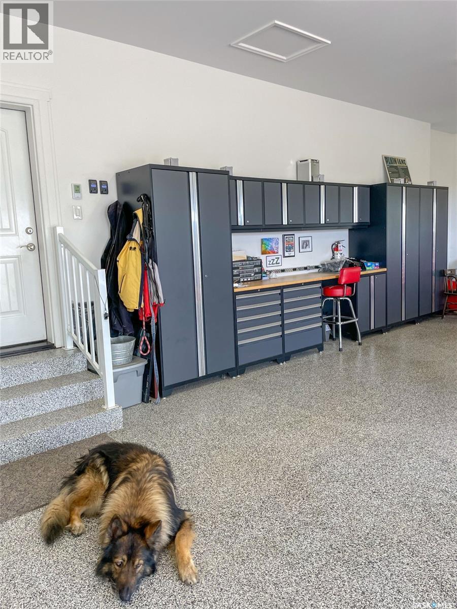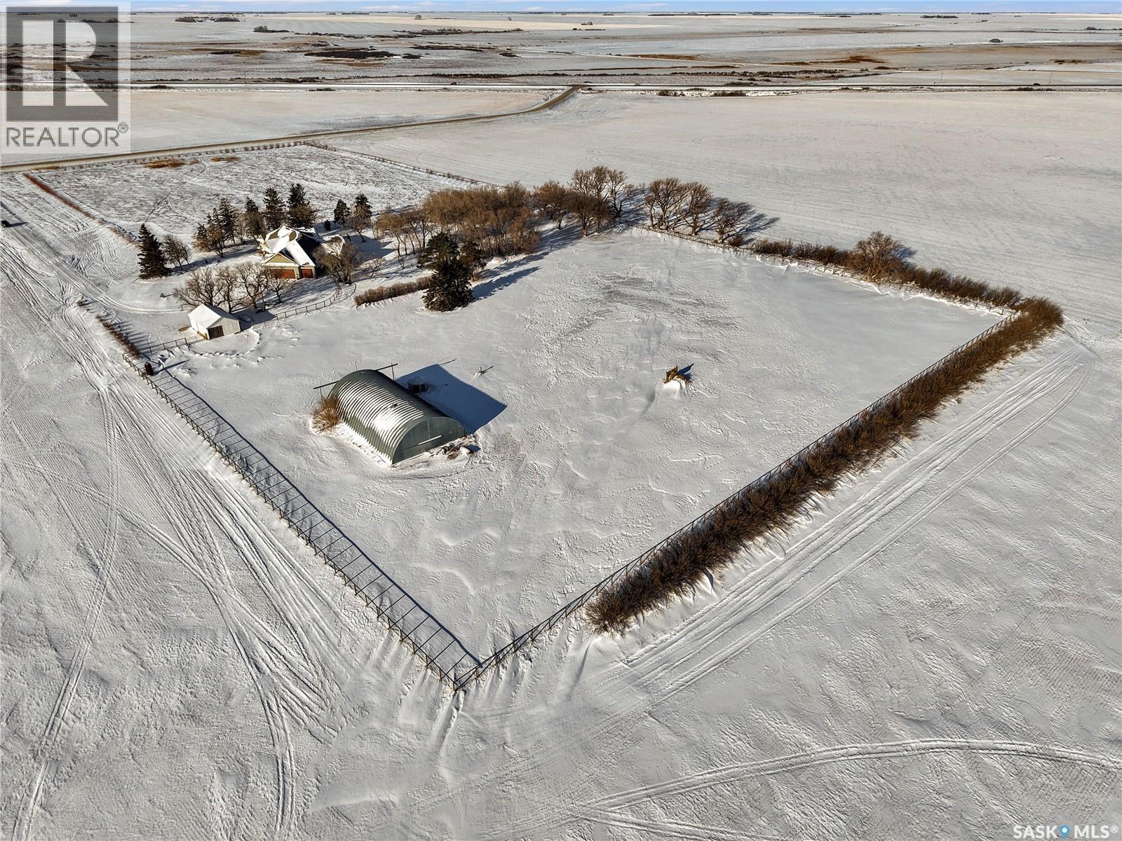 This beautiful, private acreage features 5 bedrooms, 4 bathrooms, a triple-car attached garage, and multiple outbuildings. Located just 22 minutes from Saskatoon, this acreage sits just outside the town of Delisle which features all amenities such as schools, grocery, gas, recreational activities and more. This 2020 built bungalow was customized with high building standards. The veranda at the front of the home provides entry into both the dining room and front hall. The spacious front entry gives access to the triple attached heated and insulated garage, half bathroom and main floor laundry room. The kitchen offers a large island, custom soft closet cabinets and drawers, glass tiled backsplash, quartzite countertops, large pantry and Jenn Air appliances. The kitchen is open to the family room with vaulted ceilings, a propane fireplace and large windows providing both a scenic view and an abundance of natural light. The sun room is fully insulated and can be used year round with a space heater or by leaving the doors open to the main living space. The great room boats 18ft ceilings and a second propane fireplace. Down the hall are three bedrooms including the master suite and the main bathroom. The master offers a walk in closet, five-piece ensuite with a water-air tub, separate stream shower, double sinks and access to the back deck. The outbuildings include the following: Quonset (42 X 70), Shop (20.5 X 33), Horse Stable, 24.5 X 14.5). The workshop is heated and insulated. The large Quonset is finished with a concrete floor and large double doors. The horse stable features two sliding doors and is perfect for horses. The home is finished with 50 year fiberglass shingles, commercial grade ROXUL insulation, triple pane windows, fiberglass doors, high efficient furnace and 100 gallon hot water tank with circulation system. There is a two stage system septic field with pump out and 1500 gallon – fiberglass tank. (29316923)
