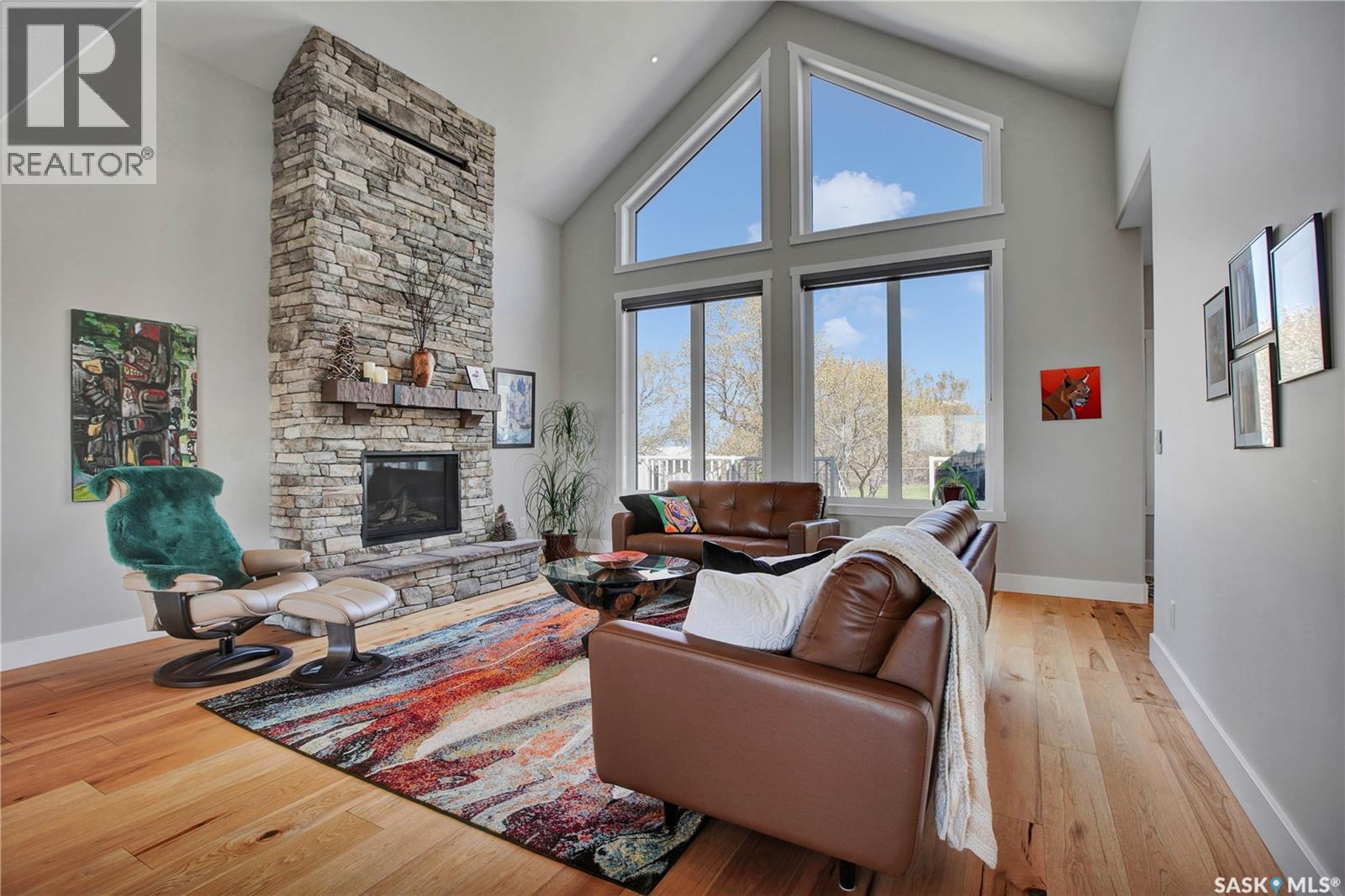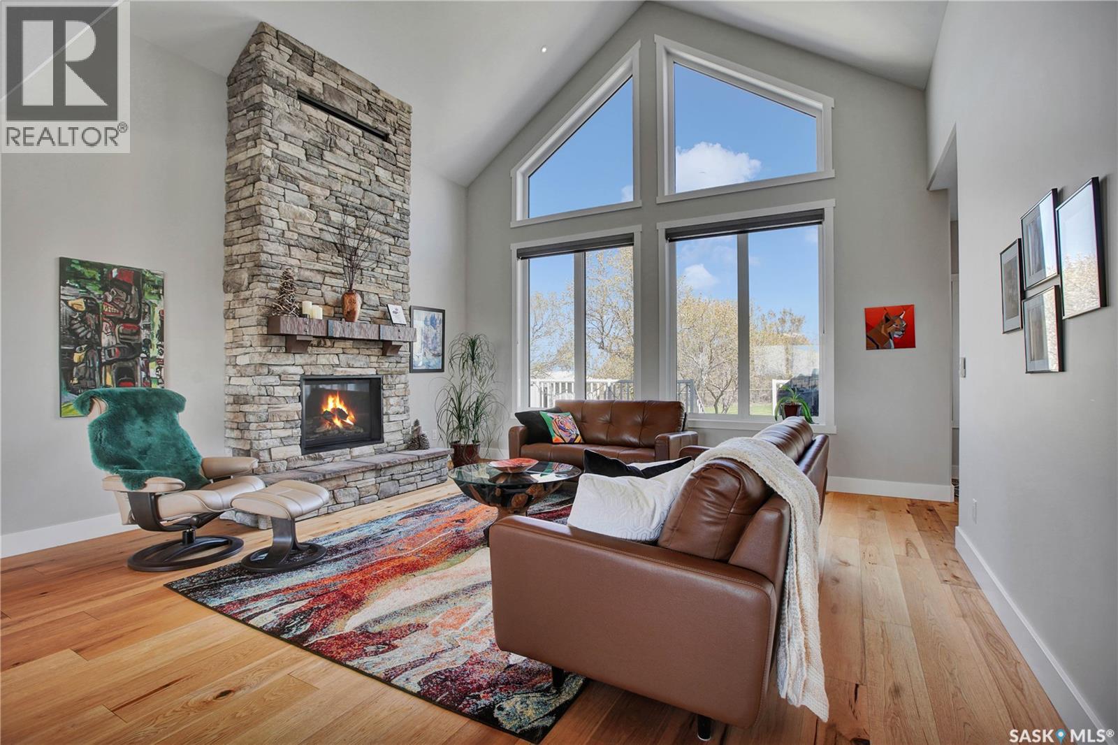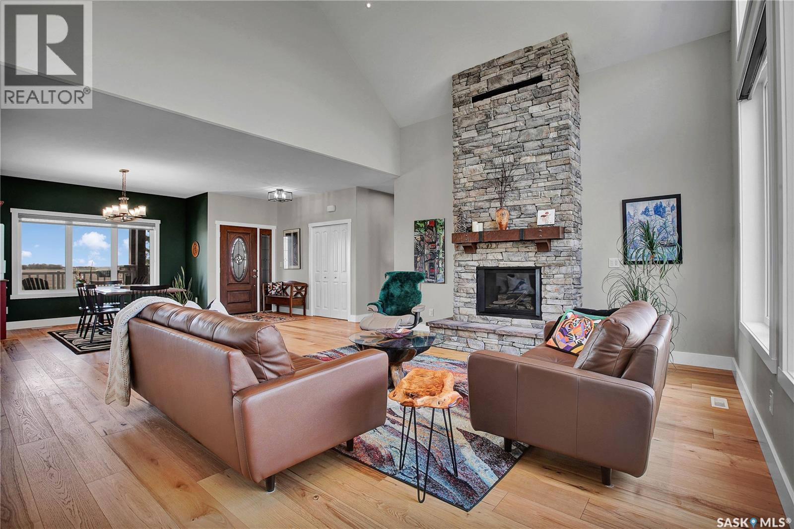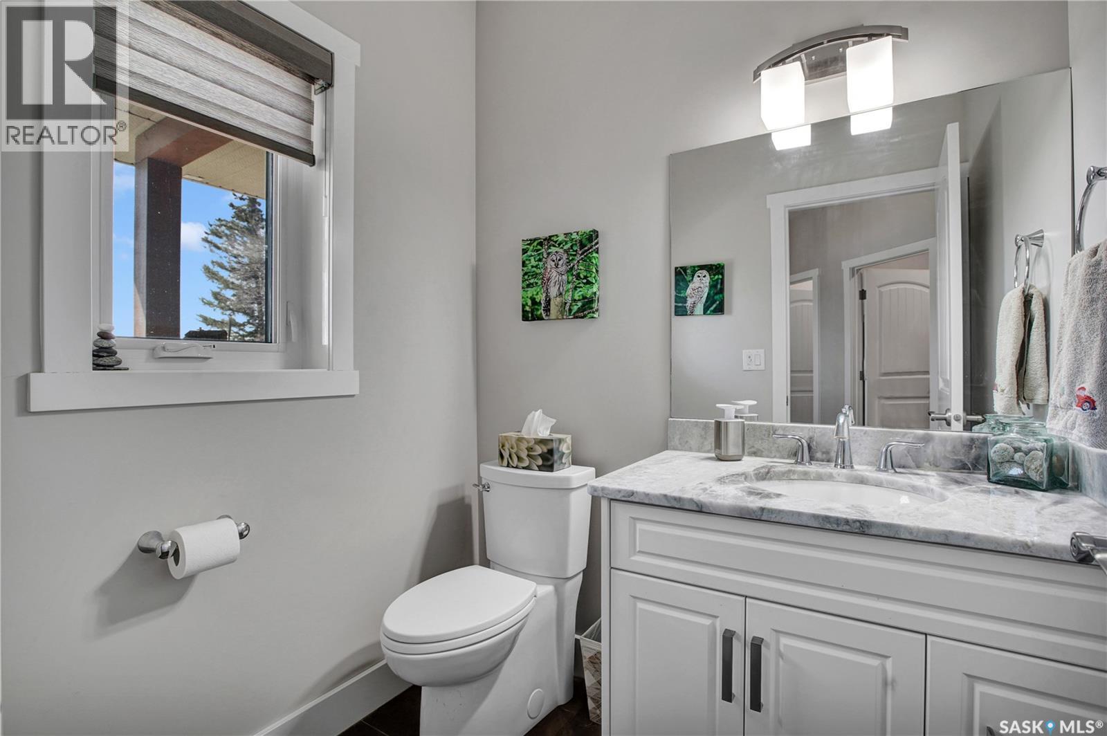 This beautiful, private acreage features 5 bedrooms, 4 bathrooms, a triple-car attached garage, and multiple outbuildings. Located just 22 minutes from Saskatoon, this acreage sits just outside the town of Delisle which features all amenities such as schools, grocery, gas, recreational activities and more. This 2020 built bungalow was customized with high building standards. The veranda at the front of the home provides entry into both the dining room and front hall. The spacious front entry gives access to the triple attached heated and insulated garage, half bathroom and main floor laundry room. The kitchen offers a large island, custom soft closet cabinets and drawers, glass tiled backsplash, quartzite countertops, large pantry and Jenn Air appliances. The kitchen is open to the family room with vaulted ceilings, a propane fireplace and large windows providing both a scenic view and an abundance of natural light. The sun room is fully insulated and can be used year round with a space heater or by leaving the doors open to the main living space. The great room boats 18ft ceilings and a second propane fireplace. Down the hall are three bedrooms including the master suite and the main bathroom. The master offers a walk in closet, five-piece ensuite with a water-air tub, separate stream shower, double sinks and access to the back deck. The outbuildings include the following: Quonset (42 X 70), Shop (20.5 X 33), Horse Stable, 24.5 X 14.5). The workshop is heated and insulated. The large Quonset is finished with a concrete floor and large double doors. The horse stable features two sliding doors and is perfect for horses. The home is finished with 50 year fiberglass shingles, commercial grade ROXUL insulation, triple pane windows, fiberglass doors, high efficient furnace and 100 gallon hot water tank with circulation system. There is a two stage system septic field with pump out and 1500 gallon – fiberglass tank. (29316923)