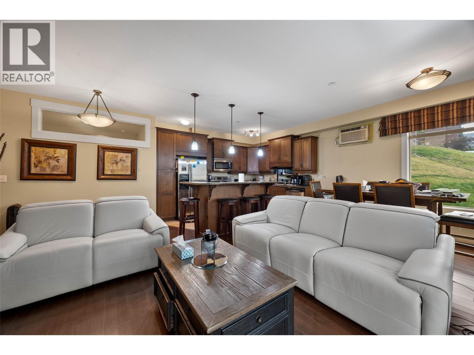 Located across from Thompson Rivers University, grocery stores, and one block away from the Tournament Capital Centre where you can enjoy a walk on the indoor or outdoor track, or a swim or hot tub after you come down from strolling along the nature trails of Kenna Cartwright Park only 1km away! If you value lifestyle and a beautiful corner unit condo, don't wait! Welcome to Landmark One, an upscale condominium with underground parking and the best location in Kamloops! This well-appointed unit offers a bright, contemporary layout with 9-foot ceilings that enhance the open feel of the space. The kitchen features granite countertops, modern cabinetry, and a full six-appliance package, seamlessly flowing into the living area highlighted by an electric fireplace—perfect for both everyday comfort and entertaining. Enjoy year-round comfort with air conditioning, along with the added convenience of window blinds throughout. This well-managed building offers secure underground parking, with one designated parking stall and a storage locker included. Whether you’re a first-time buyer, investor, or looking to be close to the university and urban conveniences, this location and lifestyle are hard to beat. (39651793)