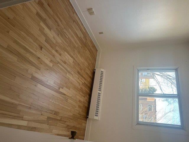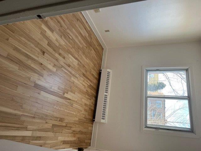 Sunny,clean well maintained spacious,2nd floor duplex offering 3 good sized bedrooms+office.1 full bath with Large eat-in kitchen with patio doors leading to balcony Beautiful hardwood flooring throughout (sanded& varnished). 2 appliances included. 1 private exterior parking space inlcued. Utilities not included.Close to train,schools,park and all other services. No pets, non smokers please (41228486)