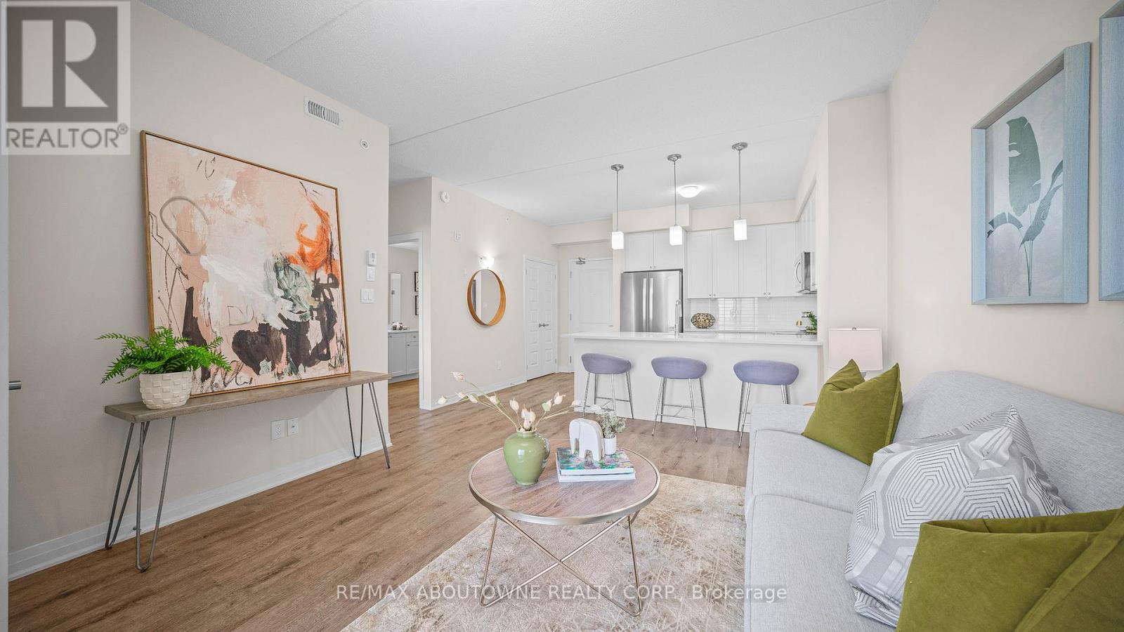 Renters look no further! This stylish and refined 1-bedroom, 1-bath suite in Milton's brand-new boutique condominium by 6 Ten features an open concept layout enhanced by 9 ft ceilings and LVP flooring throughout. The modern eat-in kitchen is appointed with quartz countertops, stainless steel appliances, and a convenient breakfast bar. The unit offers generous living space with excellent closet storage, in-suite laundry, an open balcony, parking, and a locker. Building amenities include a fitness centre, party/media room, and a fenced dog park. Ideally situated in the heart of Milton, you're just moments from shopping, major highways, golf courses, and scenic parks. (42019993)