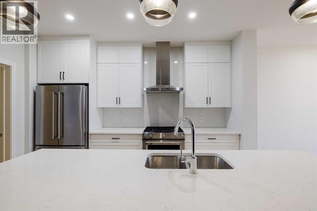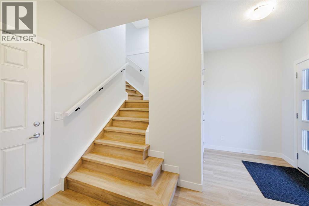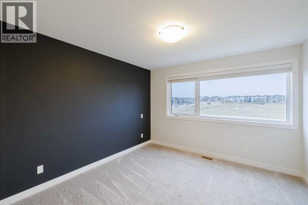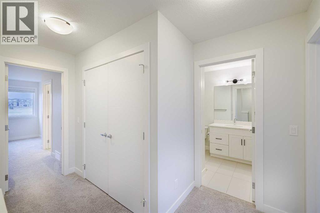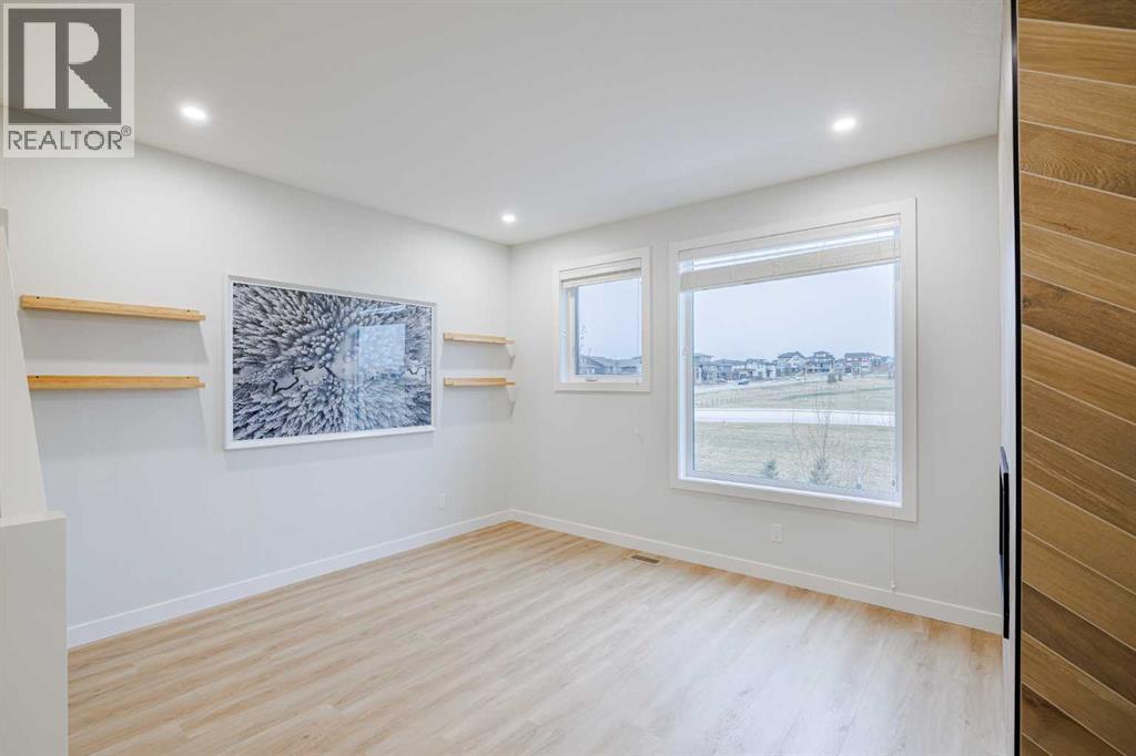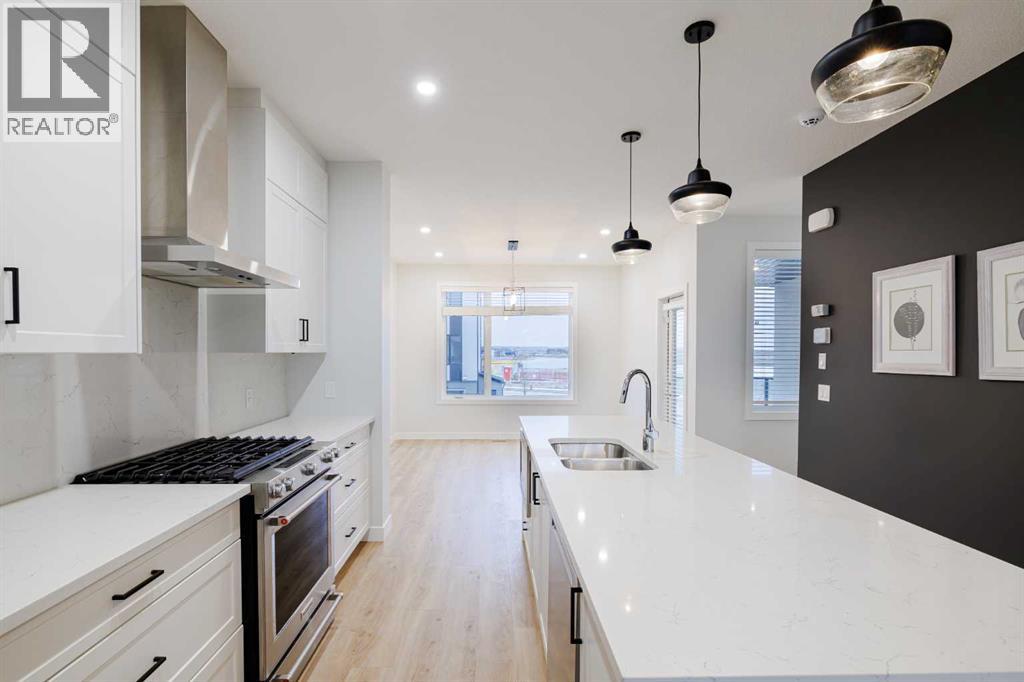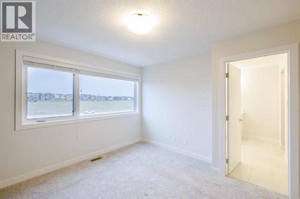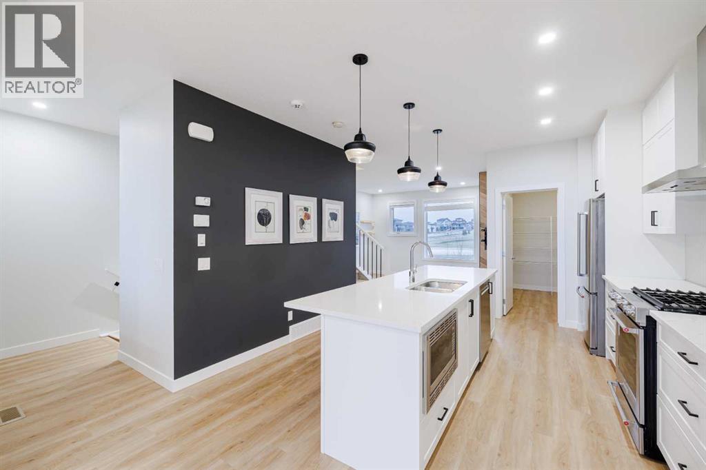 Welcome to this exquisite townhome that epitomizes the perfect blend of luxury, functionality, and natural beauty. Nestled in Harmony—an award-winning community that has proudly earned “Community of the Year – Calgary Region” eight times—this residence stands out with a plethora of upgrades, meticulous maintenance, and thoughtful design. Harmony offers an unmatched lifestyle, combining lake and golf living, walkable amenities, and stunning mountain views. As a resident, you’ll enjoy social membership at the renowned Mickelson National Golf Club, giving you access to world-class golfing right in your backyard. Families will appreciate the proximity to sought-after schools including Springbank Middle School, Springbank Community High School, and the prestigious Edge School for athletes and academics. As you step inside, you are greeted by a spacious den off the front entrance, just steps from the oversized double-car garage featuring a forward-thinking 40-amp EV connection, a true testament to modern living. Ascending to the main level, the kitchen immediately captivates with its elegant finishes—quartz countertops, a large island with breakfast bar seating, ceiling-height white cabinetry, and upgraded stainless steel appliances including a gas range for the culinary enthusiast. A massive pantry with extensive shelving ensures optimal organization. Adjacent to the kitchen is a charming eating nook with access to the front deck, where you can enjoy peaceful lake views. The sunlit living room offers a bright and inviting atmosphere, with panoramic mountain vistas framed by large windows, and a stylish fireplace with custom tile surround adding warmth and sophistication. The upper level showcases the primary suite, complete with a custom California Closet system and a spa-like ensuite featuring in-floor heating, a private water closet, standalone shower, and dual vanity. An upgraded laundry area with quartz countertop, additional shelving, and a large linen closet adds c onvenience. Two additional generously sized bedrooms and a 4-piece bathroom complete this floor. Outside of the home, Harmony’s amenities enrich everyday living—a 5-minute drive to Calaway Park, and the upcoming Bingham Crossing development with a future Costco and numerous shops and services. Residents also enjoy walking access to the community lake, miles of pathways, and future commercial amenities including the Nordic Spa.This townhome goes beyond ordinary, delivering a lock-and-leave lifestyle with maintenance-free living—no snow shoveling or yard work required—and four parking spots between the garage and driveway. With air conditioning, thoughtful upgrades, breathtaking surroundings, and pride of ownership throughout, this home offers not just a residence, but a lifestyle of elegance and harmony. (31571909)