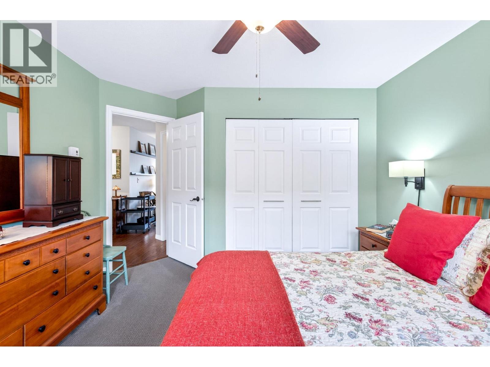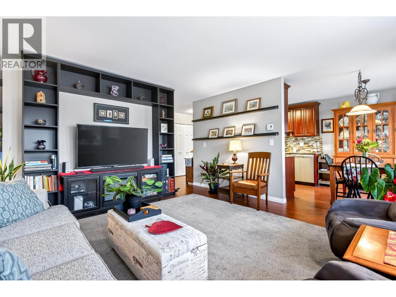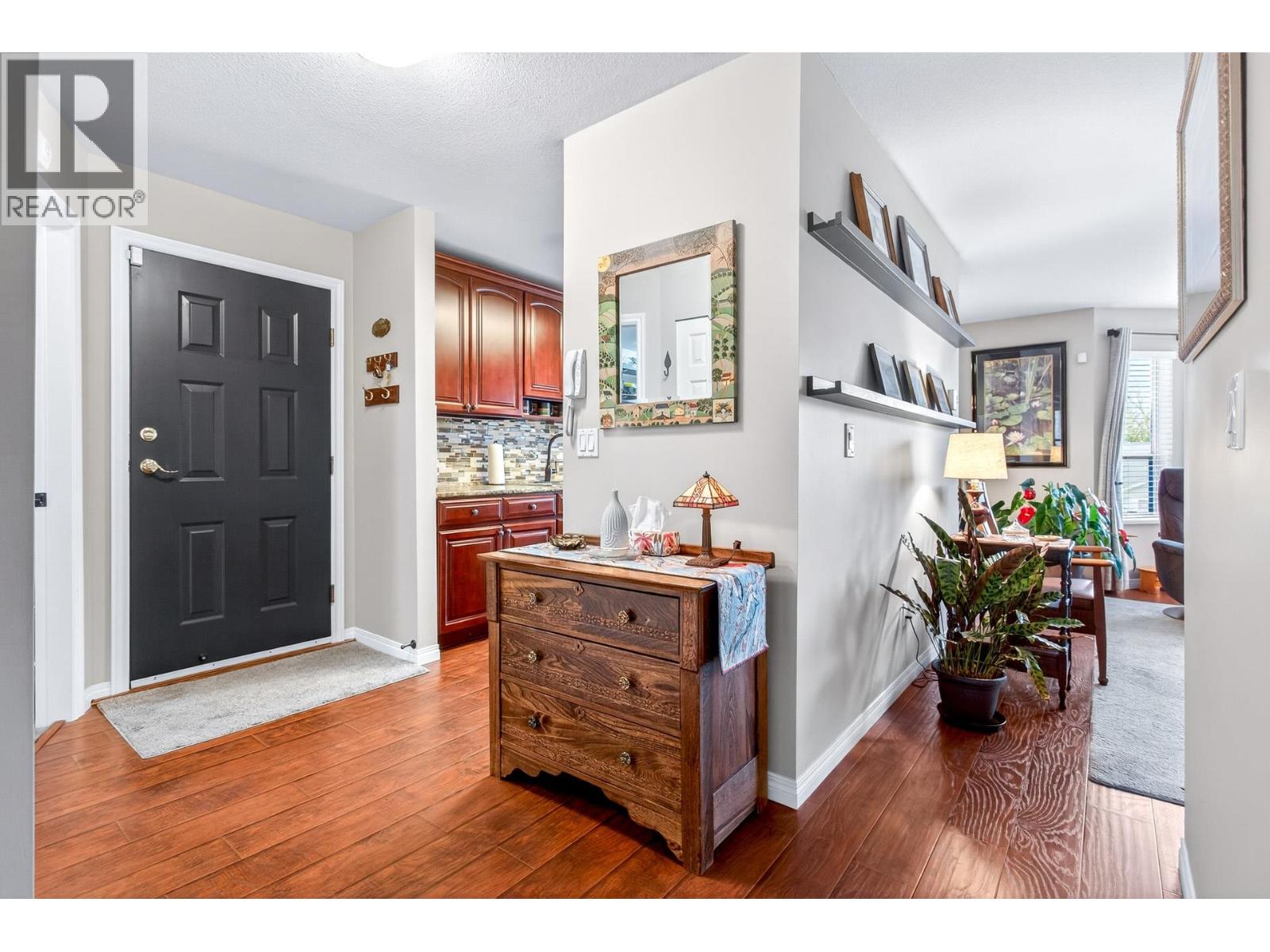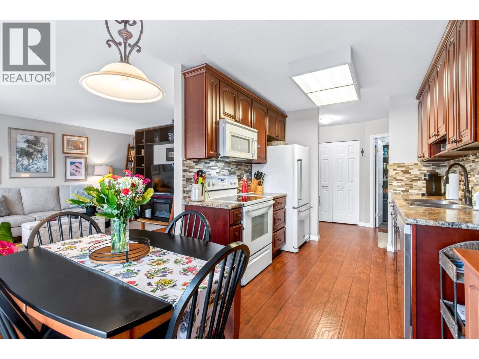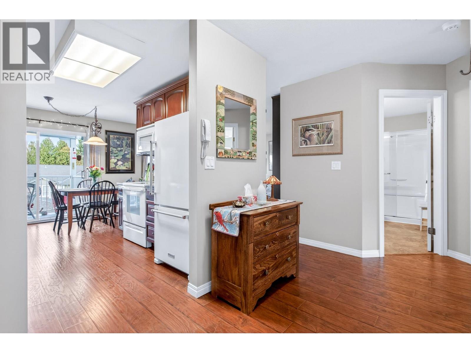 Charming north-facing two-bedroom upper unit with stunning mountain views. This well-maintained home features a fully updated bathroom with a spacious walk-in shower, along with updated flooring and appliances throughout the years. The functional layout offers excellent separation between bedrooms and living space, ideal for privacy and comfort. Includes a generous sized primary bedroom and second bedroom with its own private south-facing balcony. A well-appointed galley kitchen with adjoining eating area opens to a fully covered patio. YES, 2 covered balconies-one for the views and one for the sun! Includes a massive storage room/pantry, new hot water tank, 1 parking stall, RV parking options, and a well-managed strata with a 12-year-old roof and healthy CRF! A pleasure to View! (32371542)