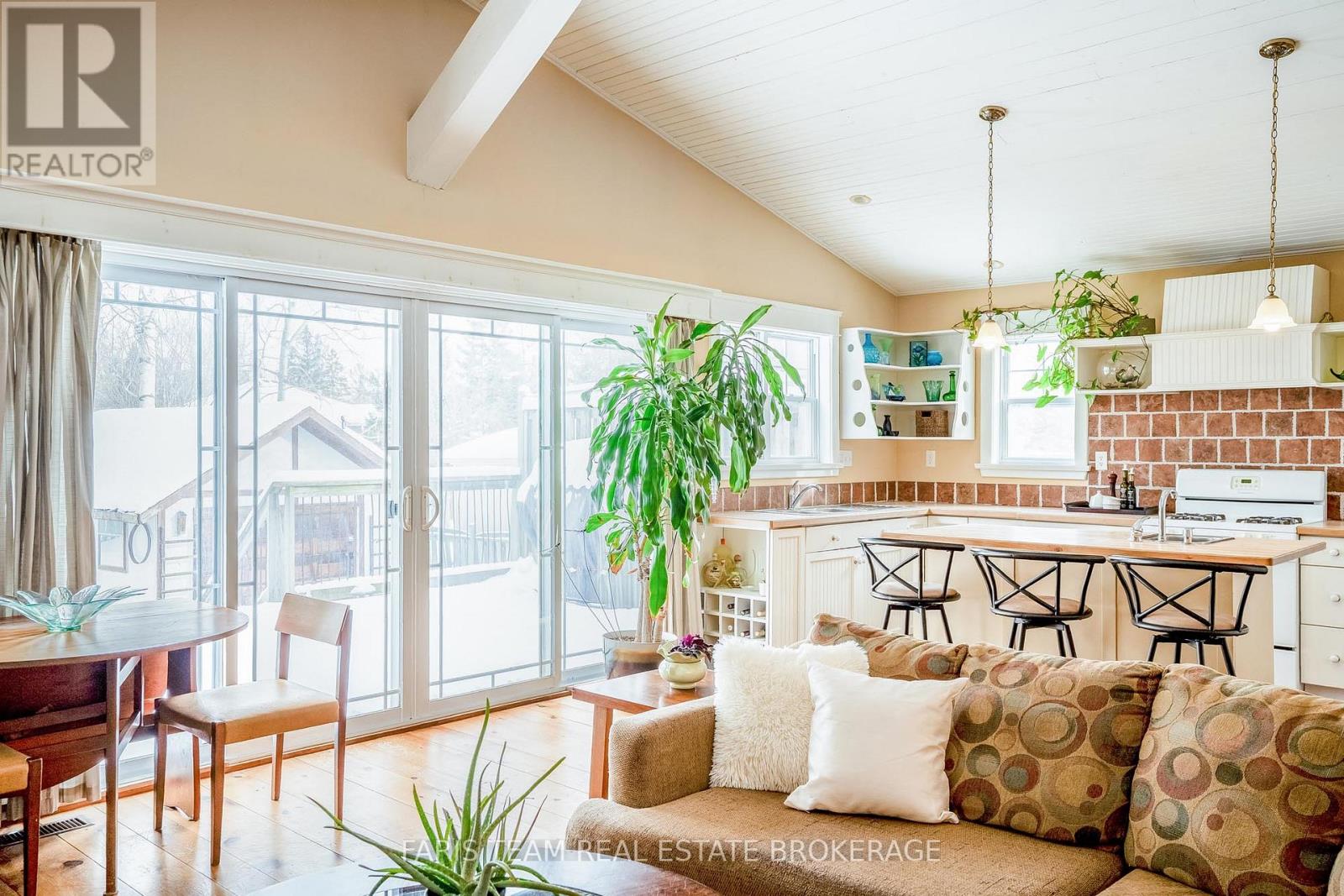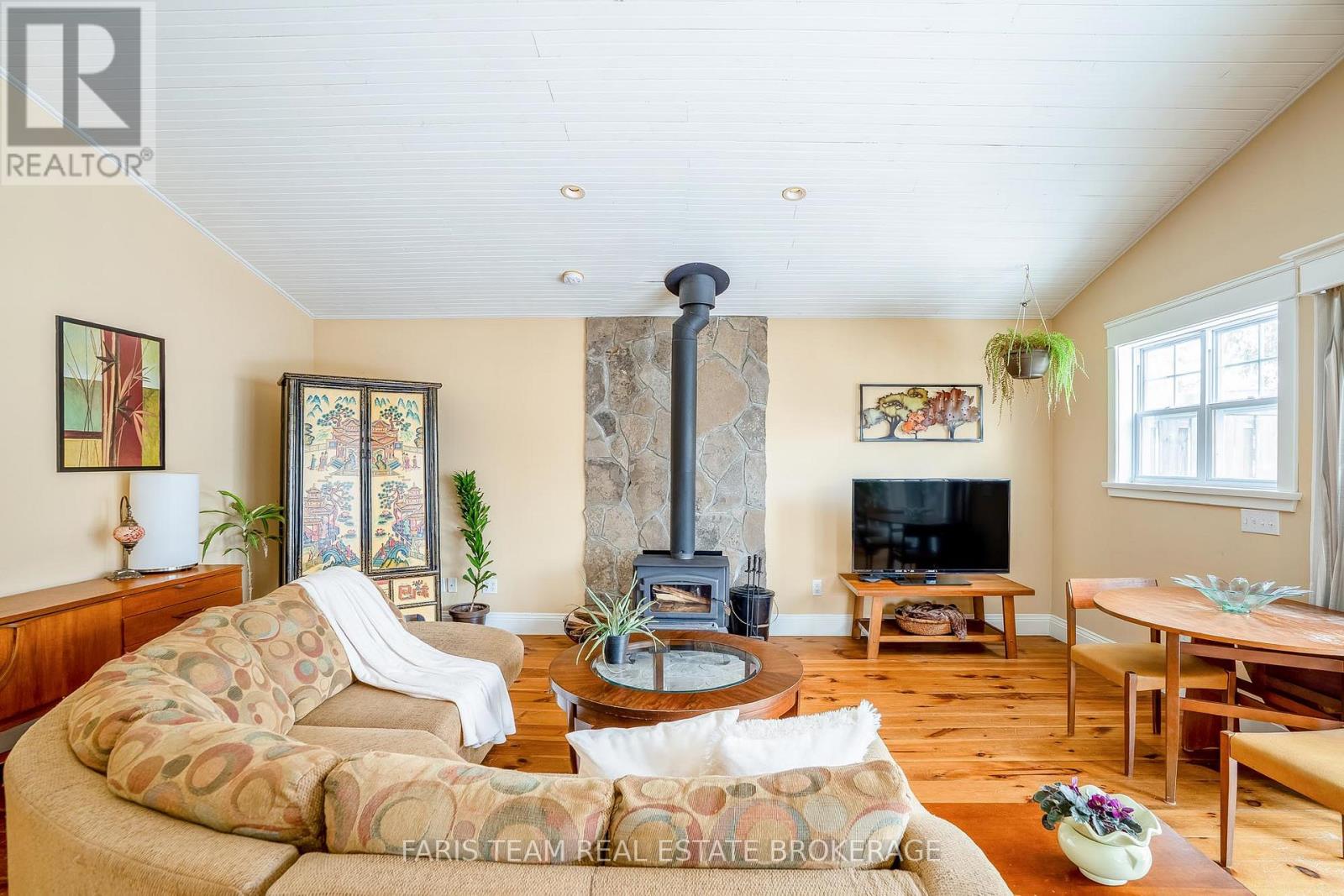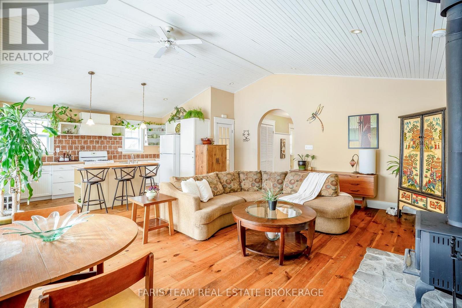 Top 5 Reasons You Will Love This Home: 1) Take in the charm of this inviting raised bungalow, nestled on a private lot in the heart of Wasaga Beach, just a short stroll from the sandy shores of Georgian Bay 2) Radiant finishes, including beautiful wide-plank hardwood flooring throughout the main level, a fully equipped in-law suite on the lower level, a durable metal roof, a large detached shop, and spacious front and back porches, perfect for morning coffee or evening relaxation 3) The main living area boasts vaulted ceilings, a cozy wood-burning fireplace, and an open-concept kitchen complete with an island and breakfast bar 4) Large sliding glass-doors allow natural light to pour in and provide access to the impressive 164' deep backyard, where mature trees offer exceptional privacy 5) Enjoy peaceful living in a quiet neighbourhood, just a short drive to golfing, beaches, skiing, shopping, and entertainment in Wasaga Beach and Collingwood. 1,142 above grade sq.ft. plus a finished basement. (42020179)