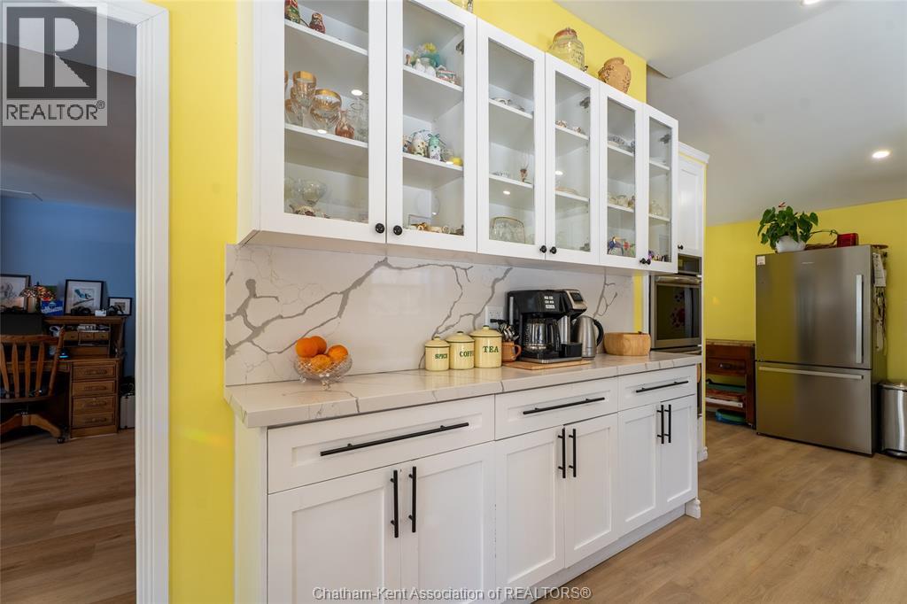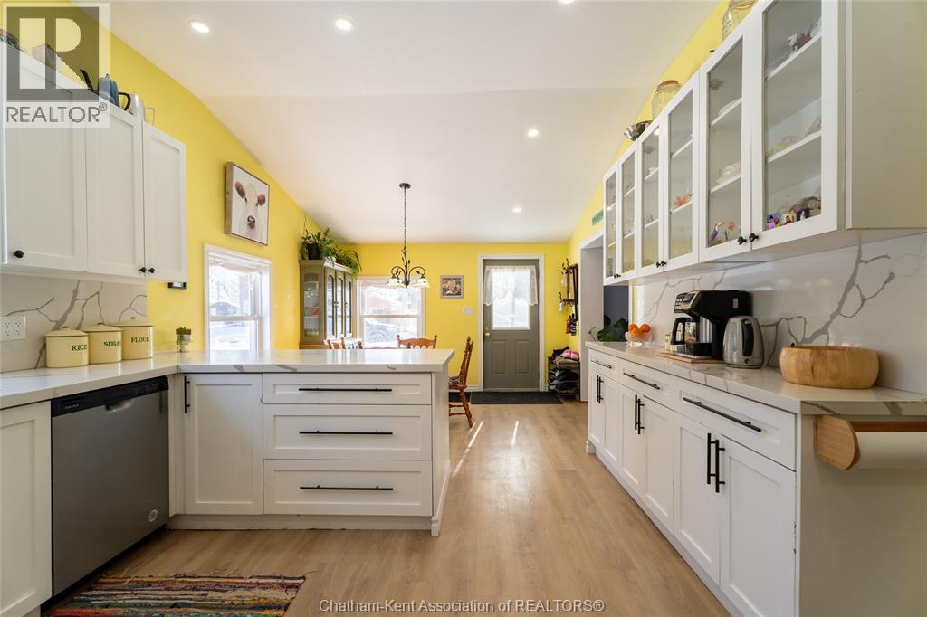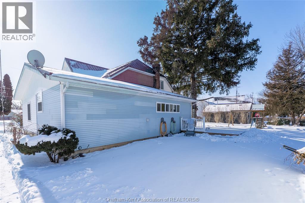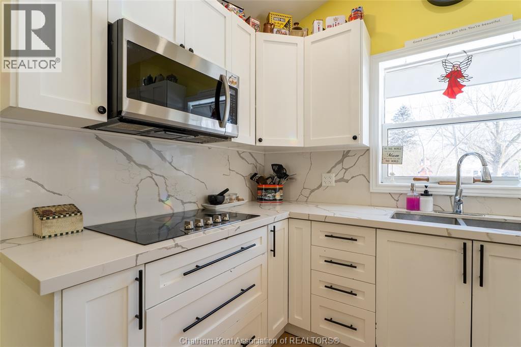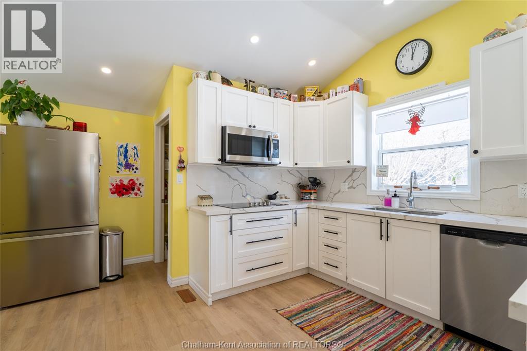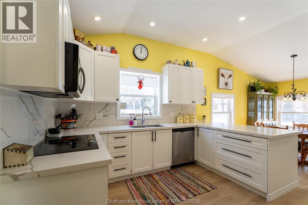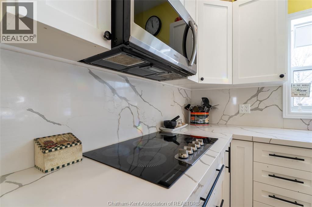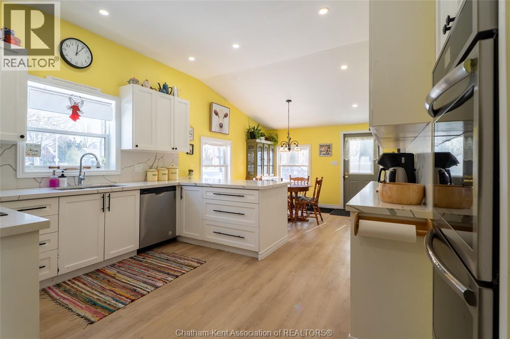 Nestled in the heart of Thamesville, this beautifully renovated two-storey home offers a rare opportunity to own a property that perfectly blends historic charm with extensive modern updates. Perfect for families of all sizes, this home has been thoughtfully updated throughout and features a stunning kitchen designed for those who love to cook and entertain. Set on an impressive double corner lot with a peaceful ravine backdrop, the property offers exceptional privacy, with a backyard that transforms into a private summer oasis filled with mature fruit trees and vibrant perennials. Step inside and be immediately impressed by the fully renovated kitchen completed in 2024. This chef-inspired space is equipped with dual full-size built-in ovens, a sleek electric cooktop, an oversized walk-in pantry complete with a wine fridge, expansive quartz countertops, and stylish newly installed cabinetry, ideal for hosting and everyday living alike. Beyond the kitchen, the main level offers two inviting living areas, providing flexibility for growing families or entertaining guests. Additional main-floor features include a bedroom with a convenient 3-piece ensuite, a second updated 4-piece bathroom, a laundry closet, and an office area ideal for working from home. The second floor is home to three generously sized bedrooms, each offering comfortable living space. The partial basement provides abundant storage along with the utility room. Other updates include upgraded electrical to a 200-amp service, plumbing and a durable steel roof on the home. Completing the property is a detached 1½-car garage, offering parking as well as extra space for storage, tools, or lawn equipment. All appliances included. Hot water tank is owned. Located in a quiet, established neighbourhood, this exceptional home combines space, functionality, and timeless character, an opportunity not to be missed. (55292375)