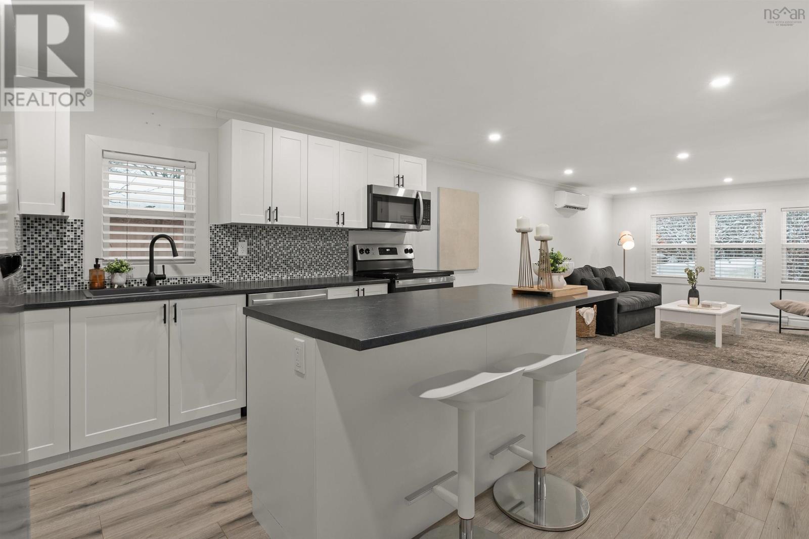 Welcome to 18 Commodore Avenue, a beautifully renovated 2-bedroom, 1-bath home that has been transformed from top to bottom. Featuring recently updated drywall, plywood walls, insulation, all-new windows, siding, and skirting, recessed lighting, newly constructed decks, a new back patio area, and ductless heat pump, this property is designed for comfortable and efficient living. The plumbing has been updated, and the electrical system has been completely upgraded with new wiring throughout. To top it all off, the home has just been professionally painted throughout, giving it a clean and refreshed finish. The kitchen boasts updated white cabinets, sleek countertops, and a sizeable island, complemented by stainless steel appliances, including a fridge, stove, dishwasher, and microwave range. The stunning bathroom features a soaker tub with a tiled back wall, a quartz countertop vanity, and a stackable washer/dryer. Enjoy your morning coffee or evening sunsets on the spacious deck, complete with your brand-new gazebo. A recently wired shed adds extra functionality to this exceptional home. With parking for two in front, great neighbours, and a quiet, picturesque, well-managed park surrounding you, this location has it all. Only 20 minutes to Dartmouth, 28 minutes to Halifax, and a mere 5 minutes to all major amenitieswhat more reason would you need to call 18 Commodore Avenue your next home? See link for virtual tour! (231891998)