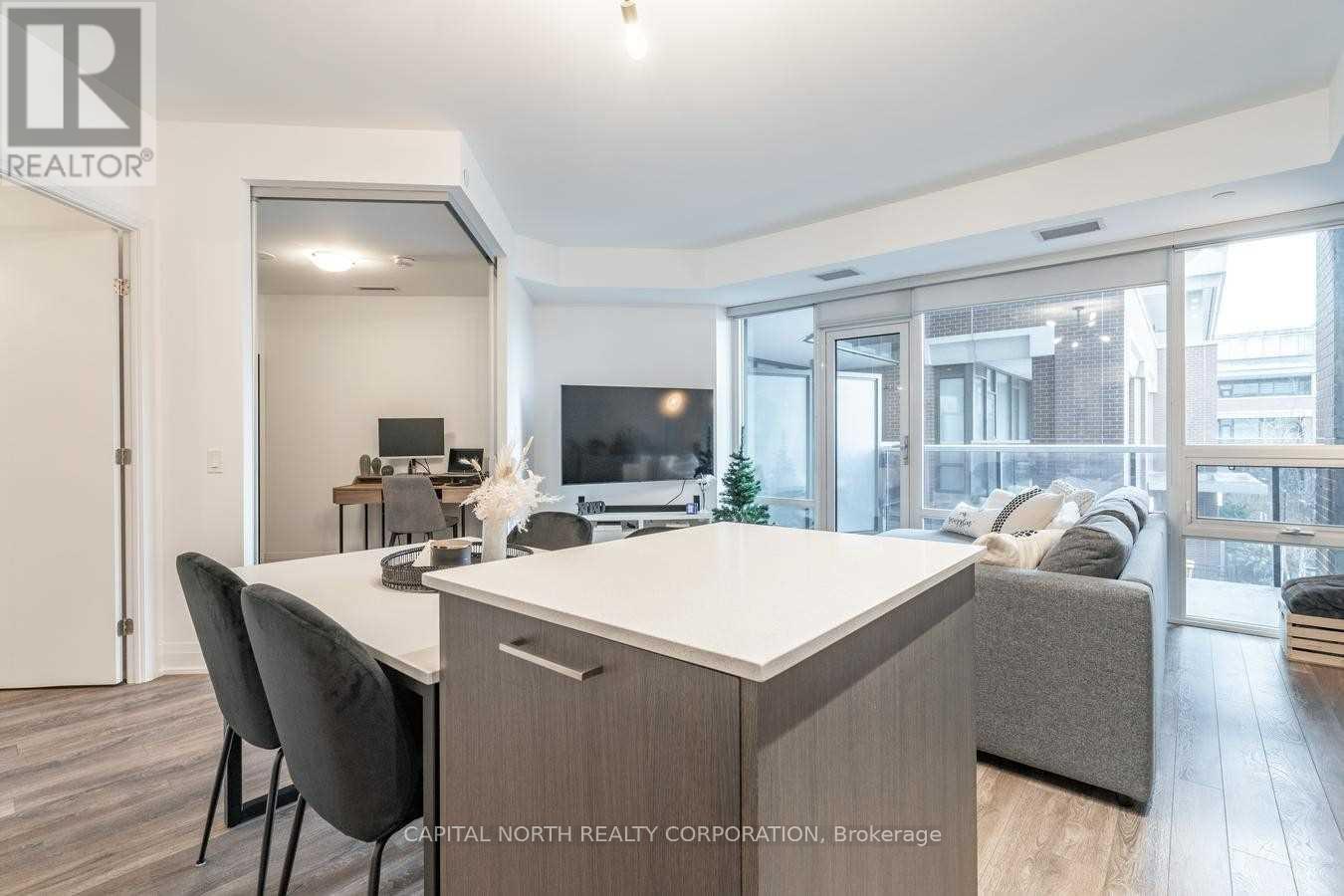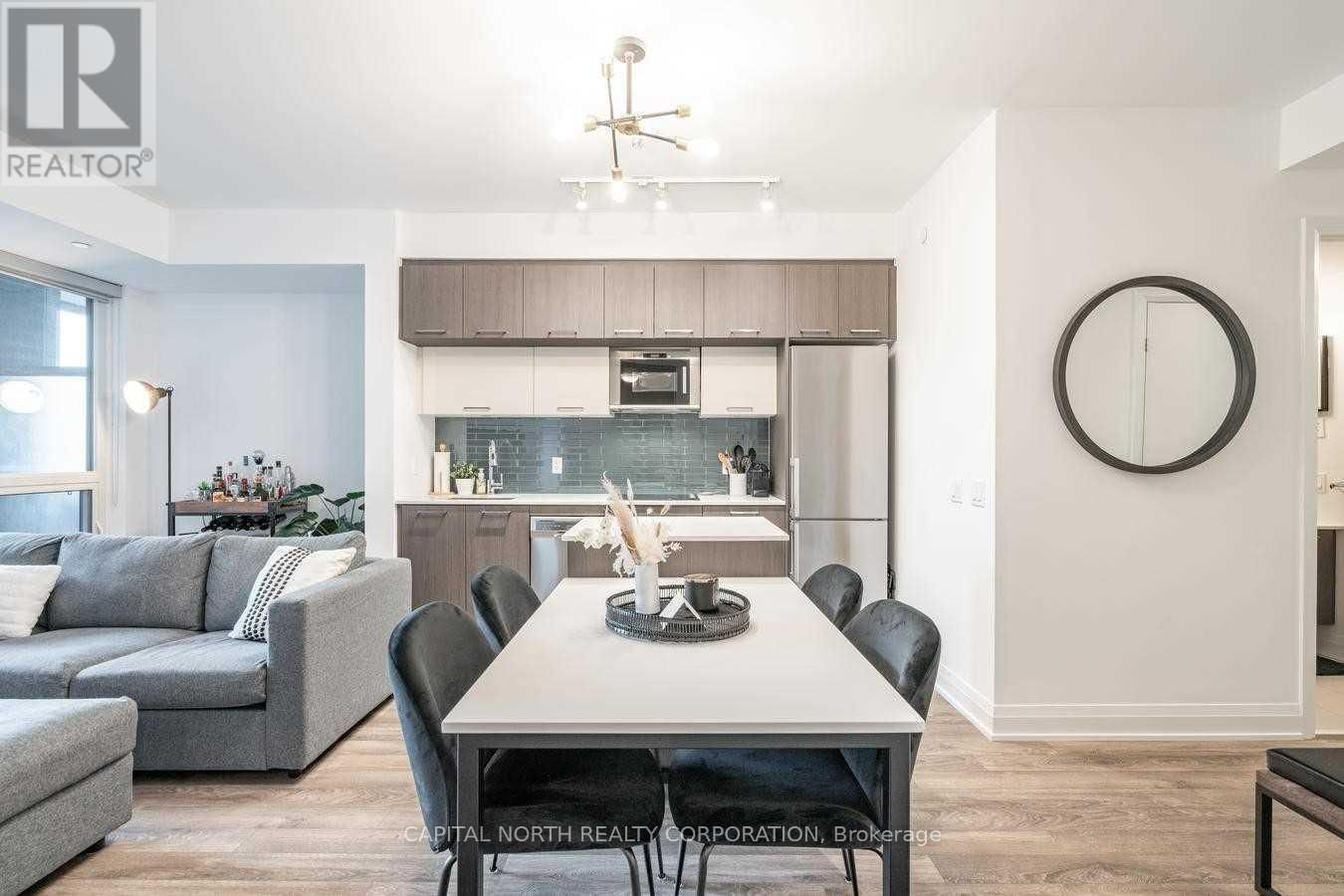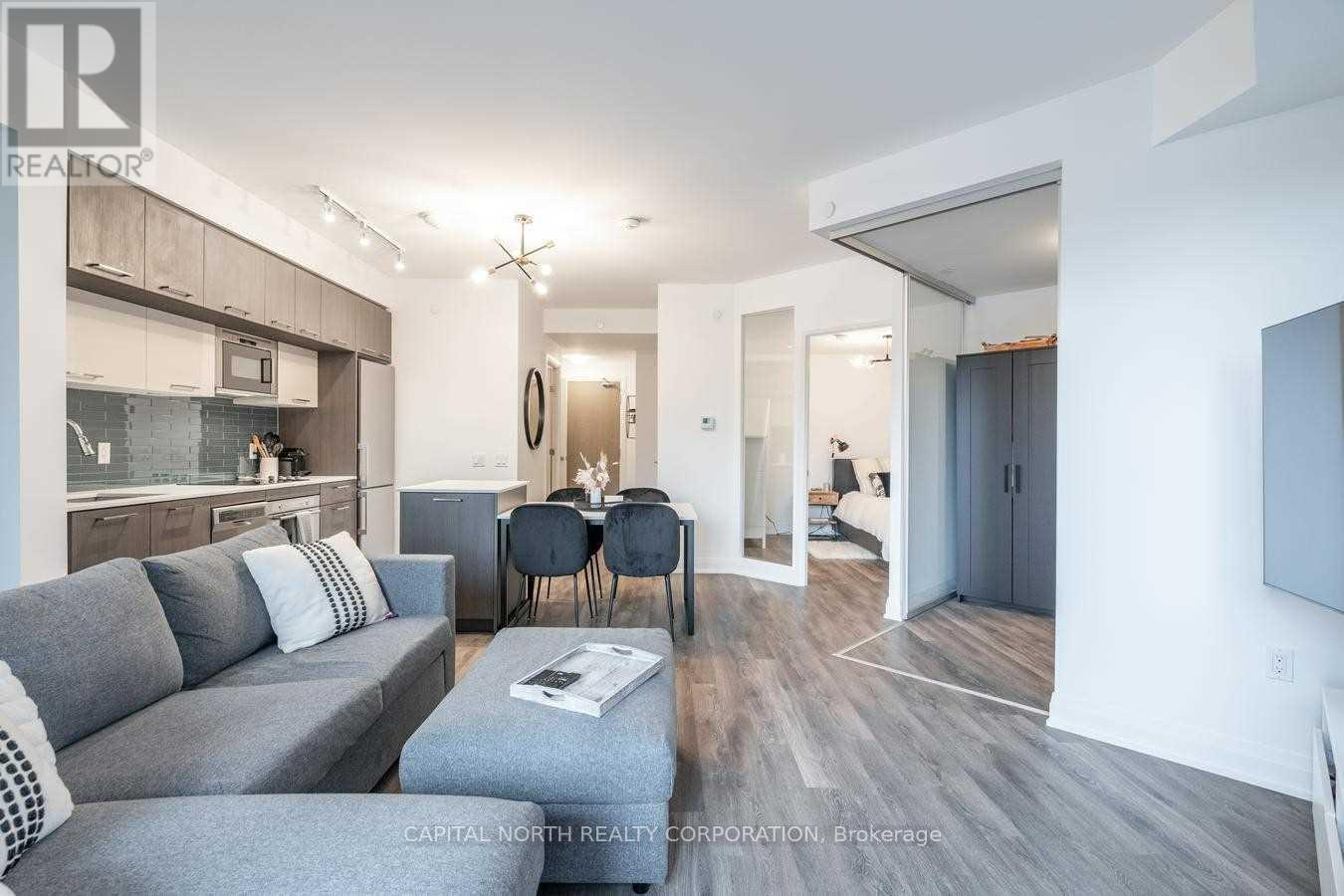 Welcome To Avenue On 7! This Stunning 1 Bedroom + Den With A Large Balcony Features A Very Functional Open Concept Living & Dining Area With Large Kitchen WITH Center Island & Stainless Steel Appliances! Large Den That Can Be Used For Home Office Or Nursery. 9Ft Ceilings & Great Finishes. Parking & Locker Included. Amenities Include: Outdoor Pool, Concierge, Gym, Party Room. Prime Location! Close To 407/400/427, Transit, Vmc, Hospital, Shopping. Stainless Steel (Fridge, Stove, Dishwasher), Centre Island W/Microwave, Washer/Dryer, All Elf's, Window Coverings, Parking & Locker! (42020829)