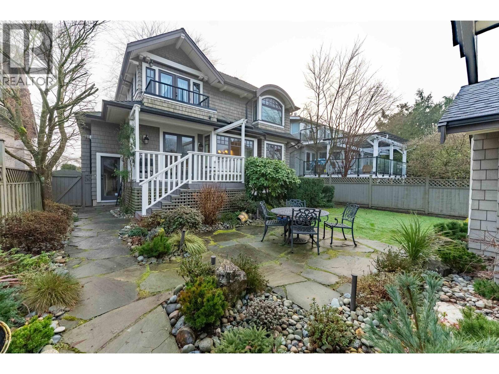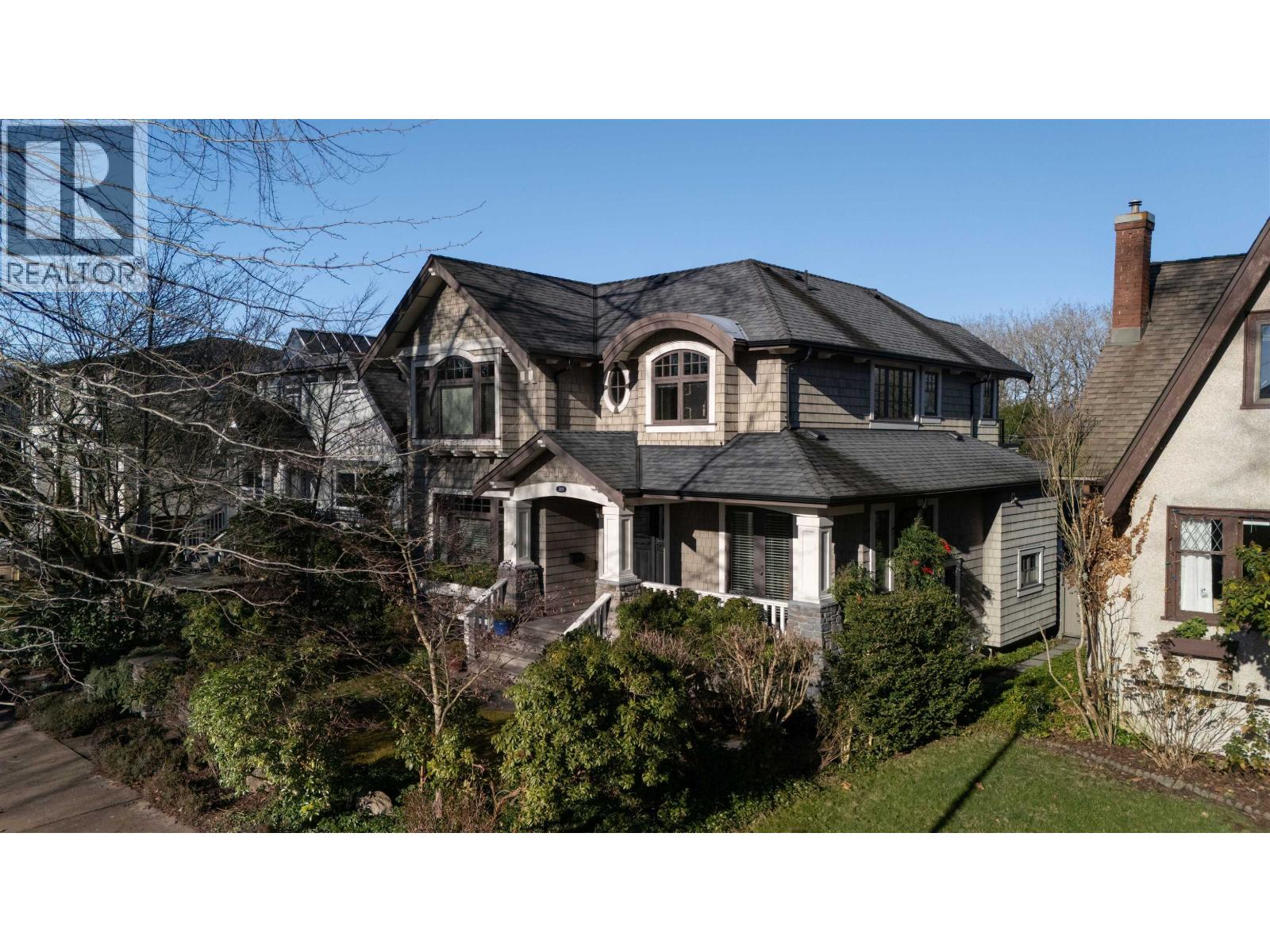Beautiful Custom Craftsman design family home in prestigious Point Grey location. This one-owner home exudes quality with coffered ceilings, oak wood floors, 3 Fireplaces, spacious open plan with chef's kitchen and generous family room. 5 Bedrooms, 3 1/2 bathrooms plus a legal 1 bedroom suite. 3 car garage with infill potential. Beautifully landscaped Japanese-style gardens on a 47' x 122' lot. Very quiet location across from Jules Quesnel summer playing field and steps to Lord Byng swimming pool, Secondary School and Community Centre. Minutes from UBC, and Point Grey, Dunbar and UBC shopping. Easy to show by appointment. (32374509)