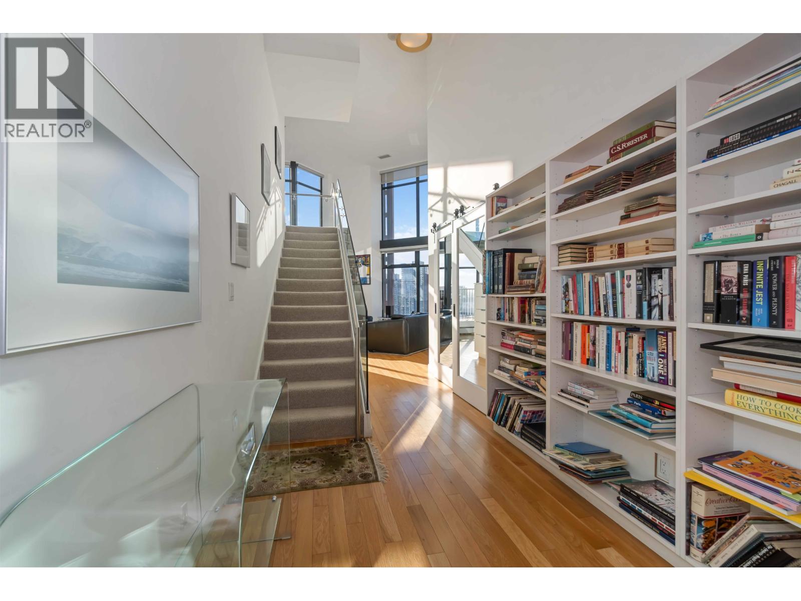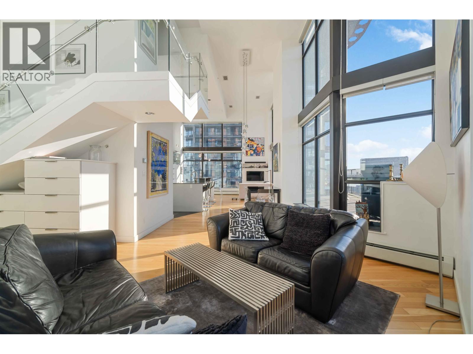 One of only five exclusive SKY SUITES in the iconic Woodward´s Building, this exceptional two-level corner sub-penthouse offers sweeping ocean, mountain, and False Creek views from a premier downtown location just steps from Chinatown, Gastown, acclaimed restaurants, Rogers Arena (home of the Canucks), and Skytrain. The residence showcases a private 252sqft south-facing patio, dramatic double-height ceilings with oversized windows and over 20-foot vaulted ceilings on the main level, and a striking staircase leading to two bedrooms and two bathrooms above. Complete with air conditioning, 24-hour concierge/security, and exclusive access to Club W-a rooftop clubhouse featuring a hot tub, gym, lounge, and media room-this AirBnB-friendly home defines elevated urban luxury living. (32374792)