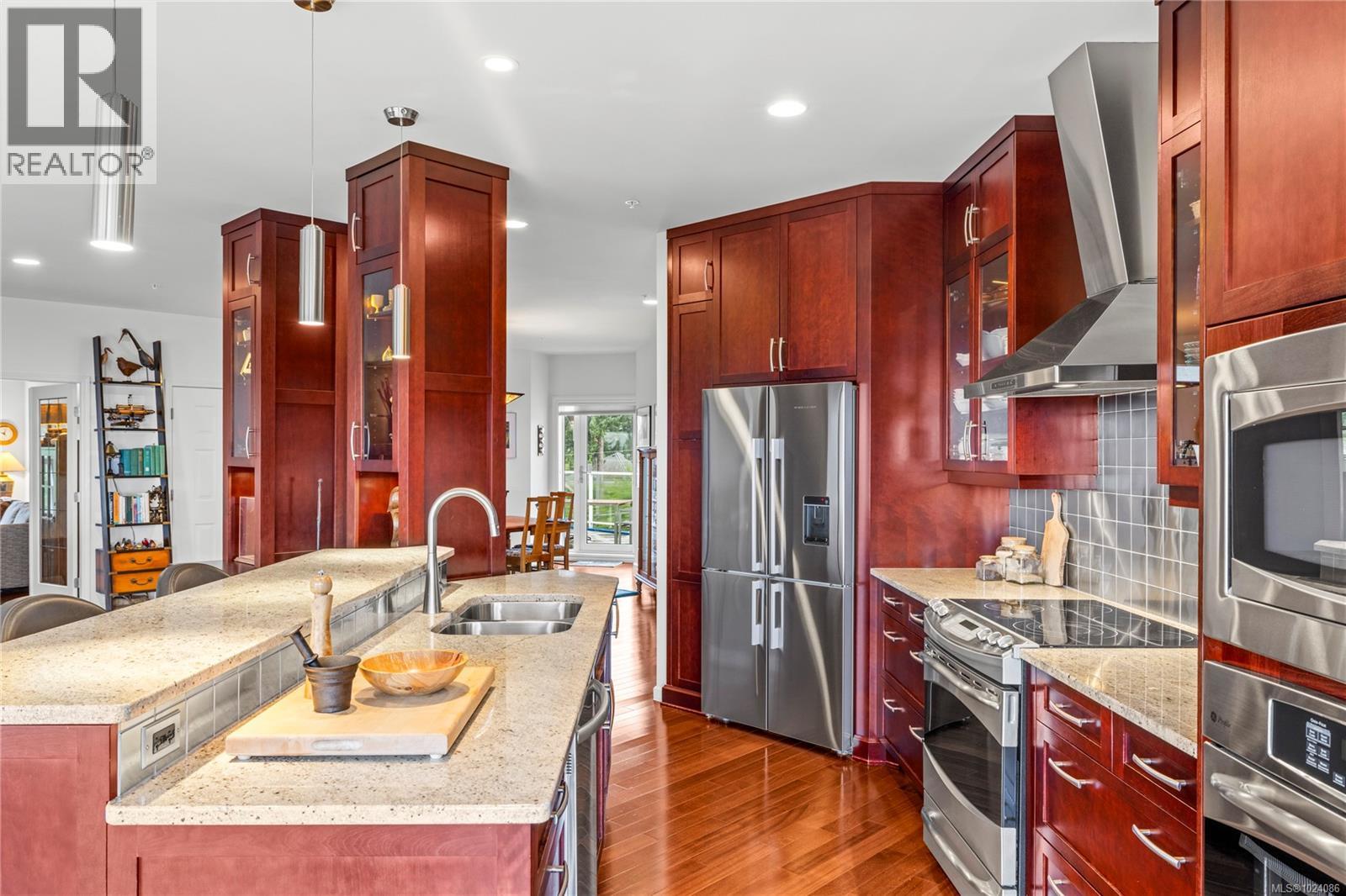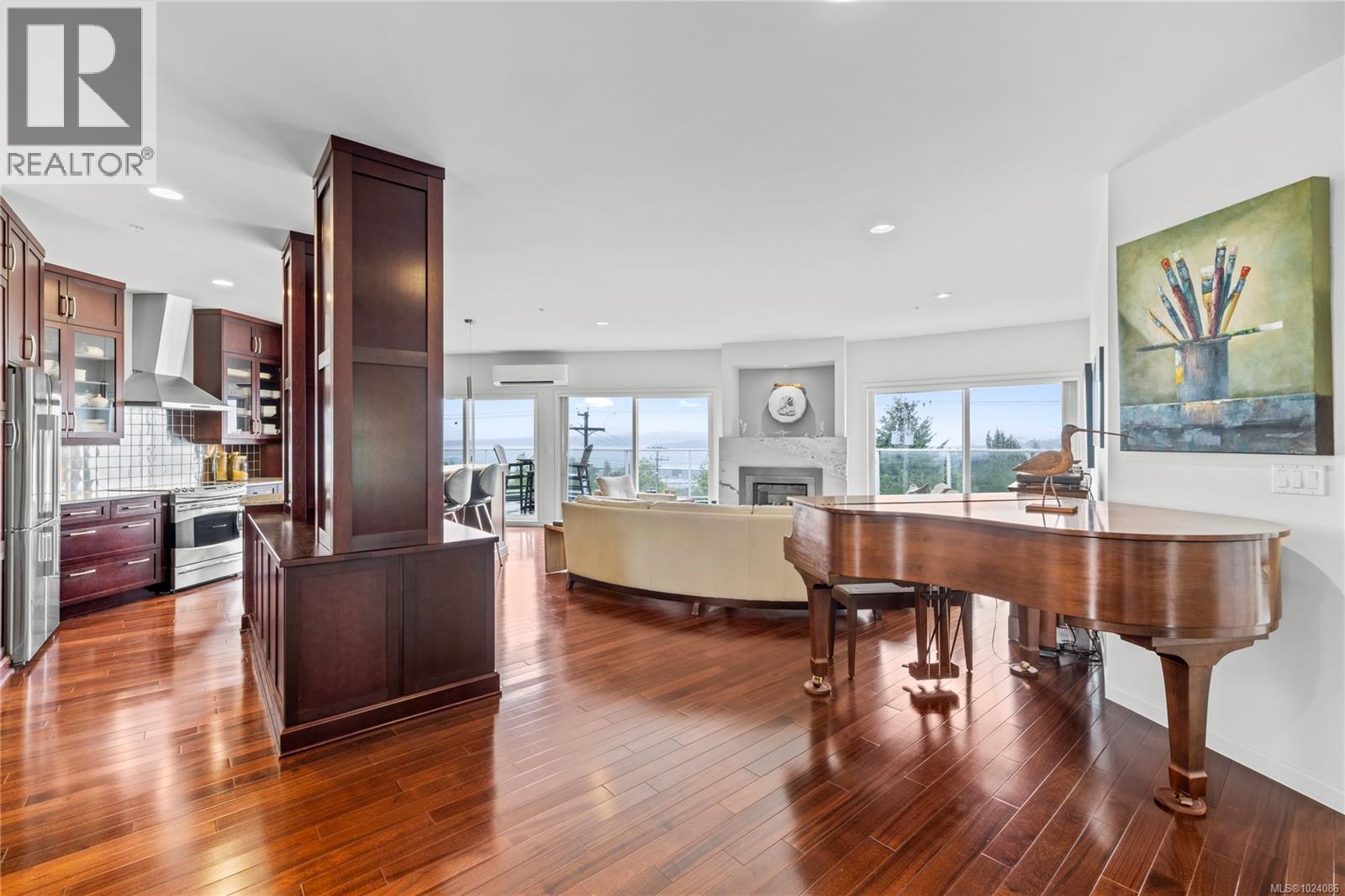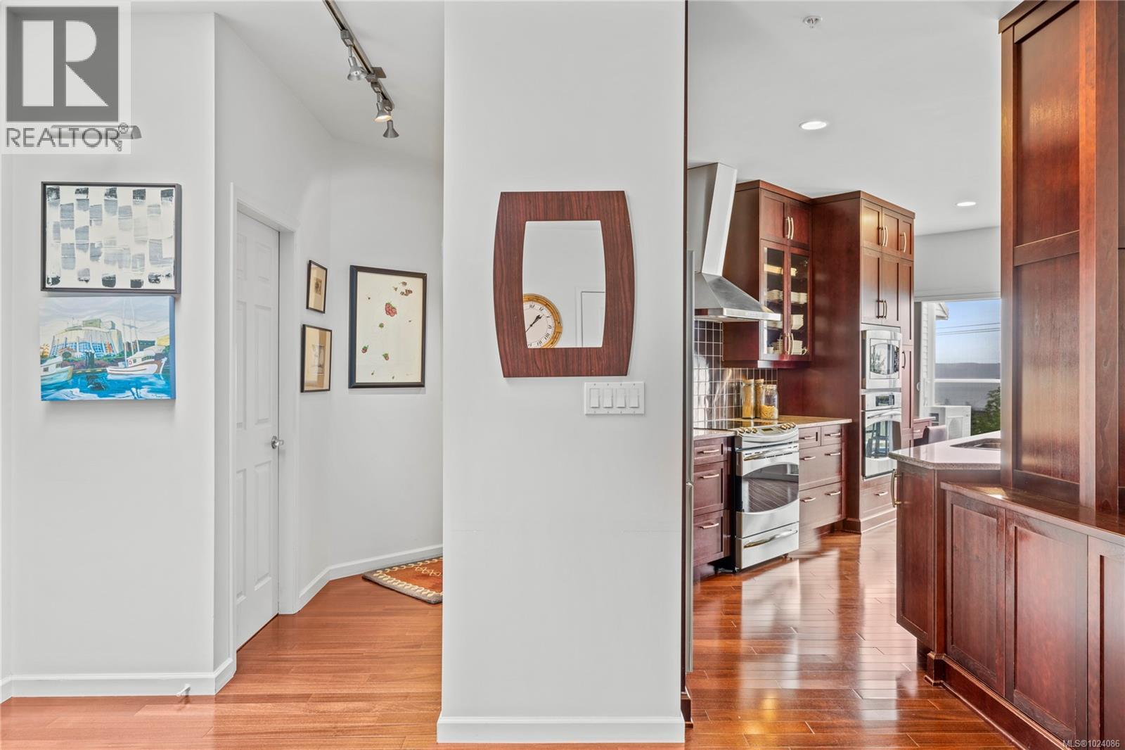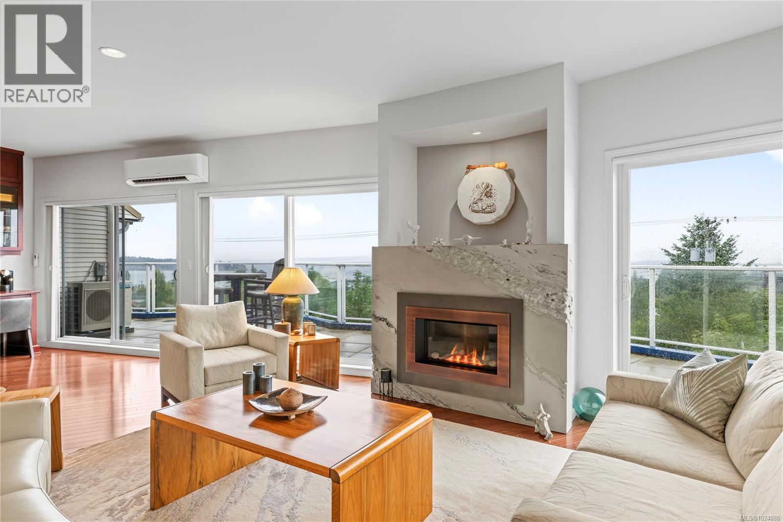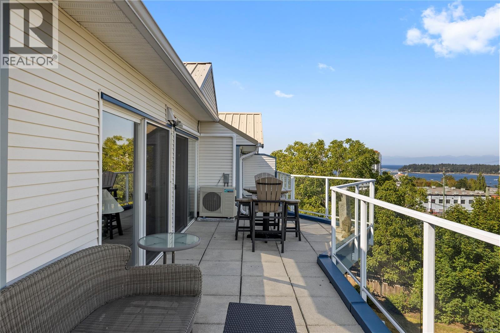 Wake up to sweeping ocean, harbour, & city views while being just minutes from downtown Nanaimo. This penthouse unit places ferries, float planes, dining, cafés, & the waterfront w/in easy reach. Offering 1,808 sq ft of renovated living space designed to capture views from nearly every room. The open-concept kitchen, dining, & living areas flow beautifully, while 2 spacious decks invite sunrise coffees & sunset evenings. The kitchen features high-end appliances, generous counter space & abundant cabinetry. The den can be a 3rd bedroom offering comfort & flexibility. The spacious primary suite includes a well-appointed ensuite, while the 2nd bedroom features custom cabinetry & a Murphy bed. Additional features include European-style exterior doors, hot water tank upgrade (2019), ductless heat pump, and a private garage w/workshop space. A strata-approved garden shed on the deck provides the designated storage unit for this home. Data & meas. approx. verify if import. (30315653)