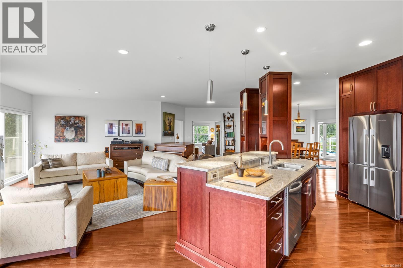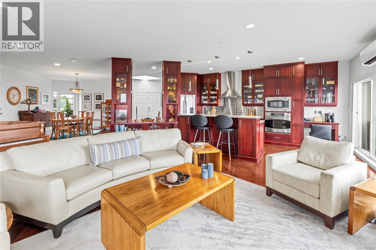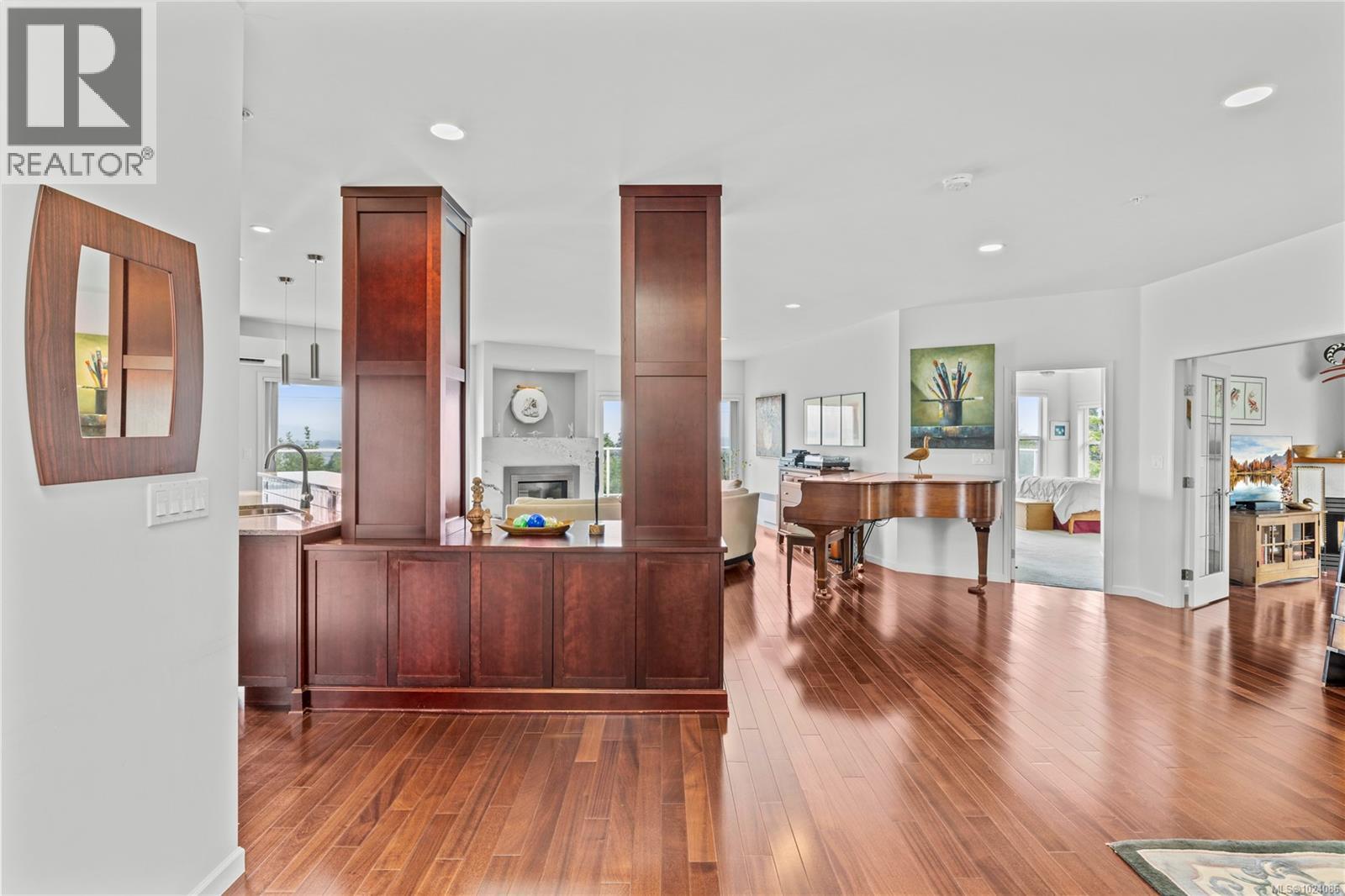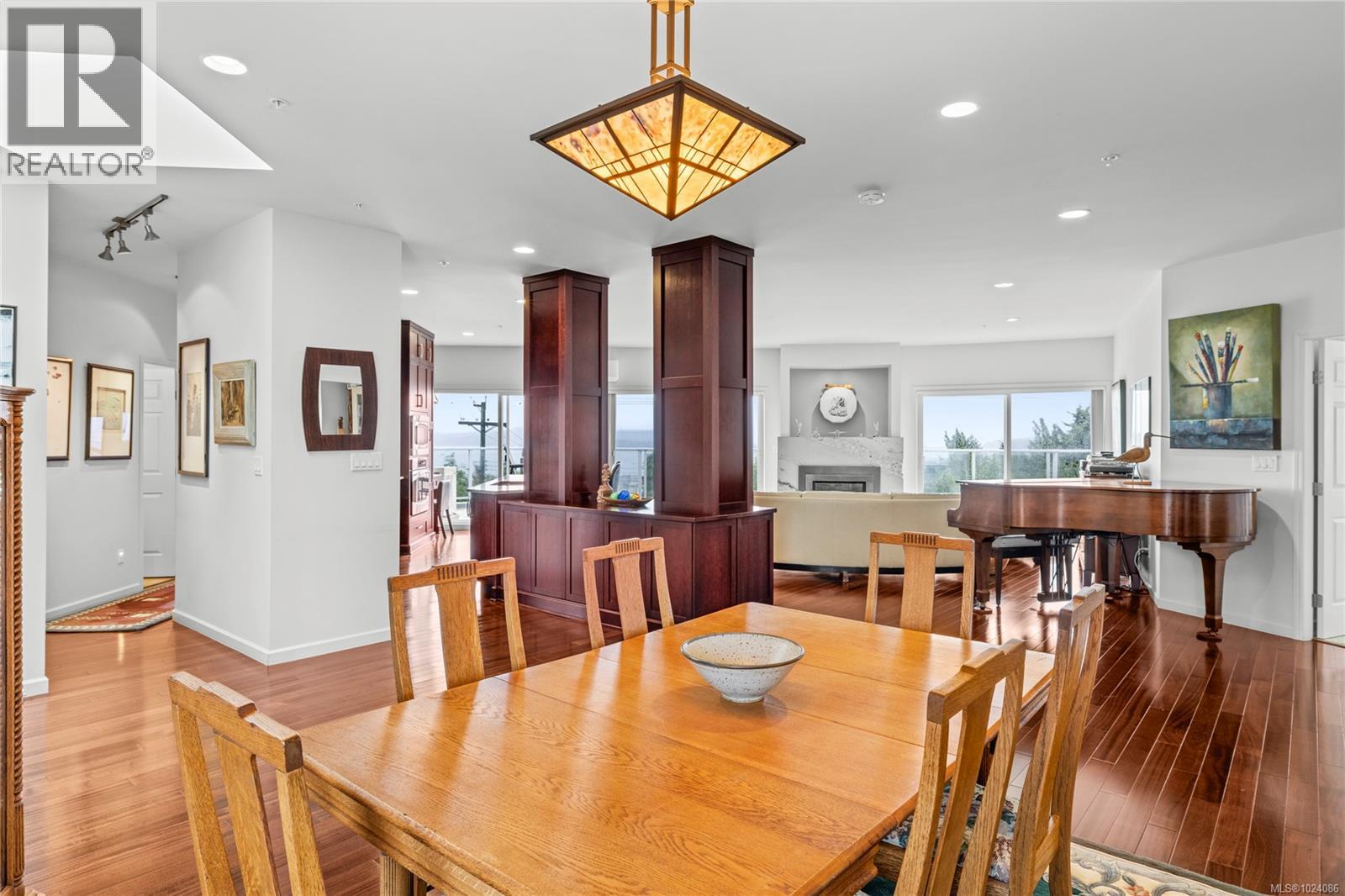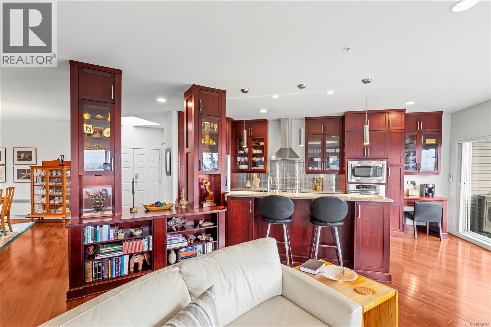 Wake up to sweeping ocean, harbour, & city views while being just minutes from downtown Nanaimo. This penthouse unit places ferries, float planes, dining, cafés, & the waterfront w/in easy reach. Offering 1,808 sq ft of renovated living space designed to capture views from nearly every room. The open-concept kitchen, dining, & living areas flow beautifully, while 2 spacious decks invite sunrise coffees & sunset evenings. The kitchen features high-end appliances, generous counter space & abundant cabinetry. The den can be a 3rd bedroom offering comfort & flexibility. The spacious primary suite includes a well-appointed ensuite, while the 2nd bedroom features custom cabinetry & a Murphy bed. Additional features include European-style exterior doors, hot water tank upgrade (2019), ductless heat pump, and a private garage w/workshop space. A strata-approved garden shed on the deck provides the designated storage unit for this home. Data & meas. approx. verify if import. (30315653)