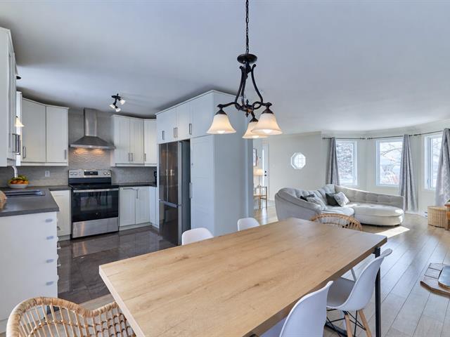 Open house : Sunday, February 8, from 10:00 a.m. to 12:00 p.m.! Turnkey tastefully updated! This spacious property offers three generously sized bedrooms on the upper level, a functional kitchen with abundant storage, and a bright open-concept living area highlighted by a pellet stove. The finished basement includes a large family room with the potential to create a fourth bedroom. Charming, landscaped backyard featuring two terraces. Ideally located in the sought-after Domaine-Richer area of Bellefeuille, close to schools, parks, green spaces, and services, with quick and easy access to major roadways. An opportunity not to be missed! (56579544)