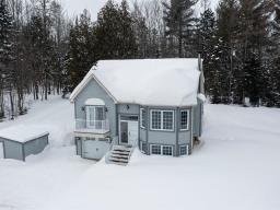 Bord de lac navigable, cette propriété se situe dans un magnifique environnement privé. Elle propose un superbe terrain plat, orienté plein soleil, ainsi qu'un joli boisé offrant une belle intimité, agrémenté d'un petit atelier entièrement en bois, à l'abri des regards. Le terrain privé en bordure du Lac Barron possède une superficie de 14 497 pieds carrés. À celui-ci s'ajoute le lot principal de la propriété, totalisant 64 560 pieds carrés, offrant un vaste espace et un cadre naturel remarquable. Grâce à son orientation plein sud et à sa généreuse fenestration, la propriété est baignée de lumière naturelle. (57878028)